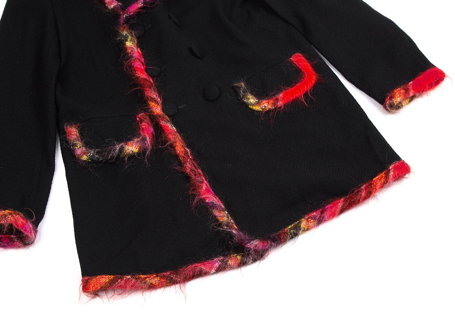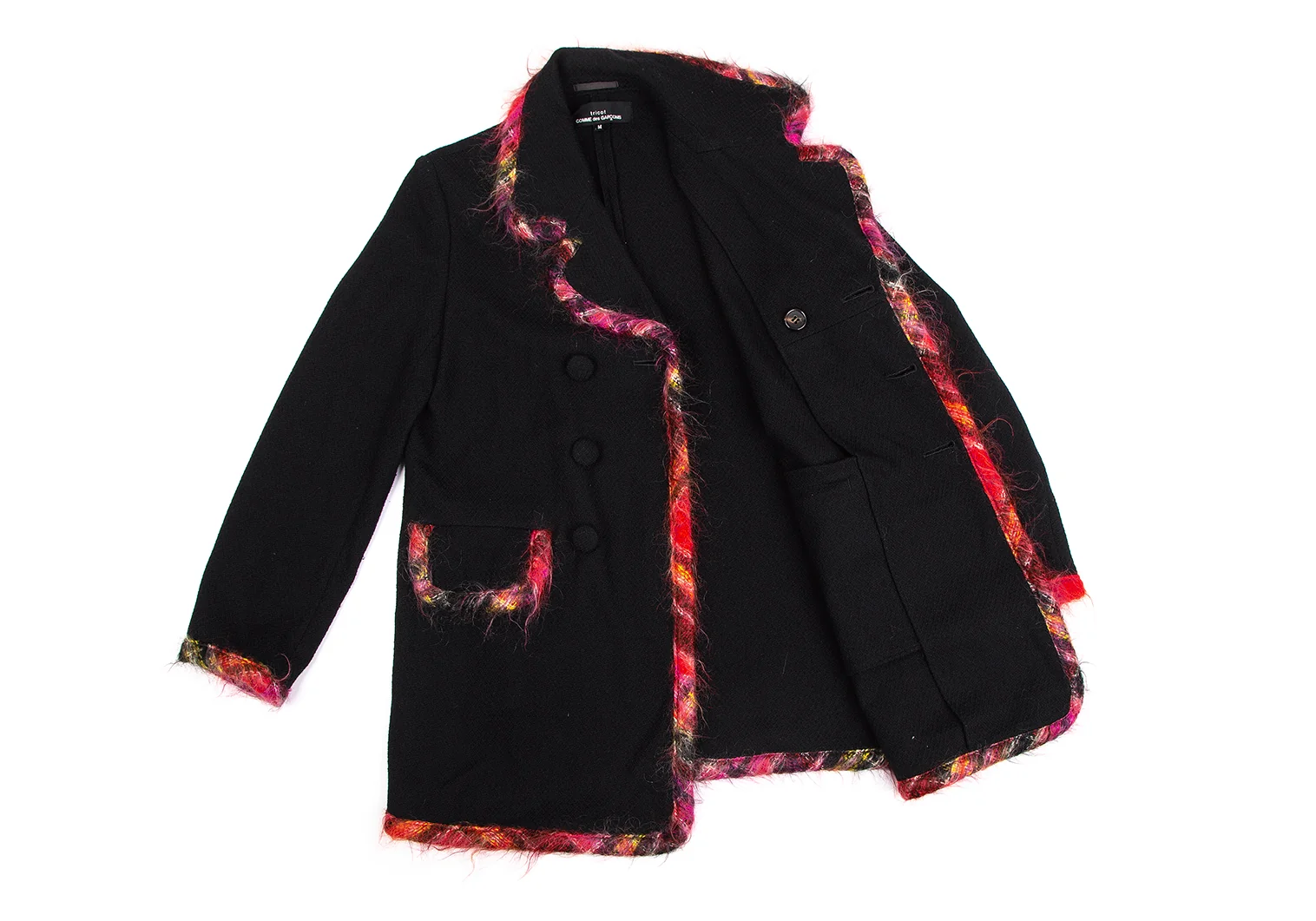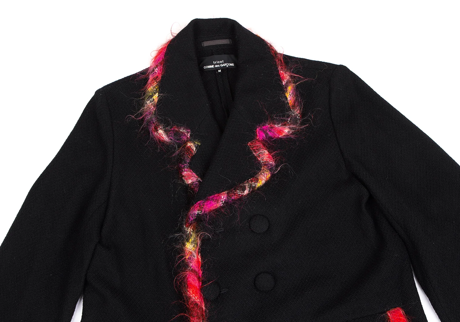 トリココムデギャルソンtricot COMME des GARCONSカラフルニットパイピングウールダブルジャケット 黒M