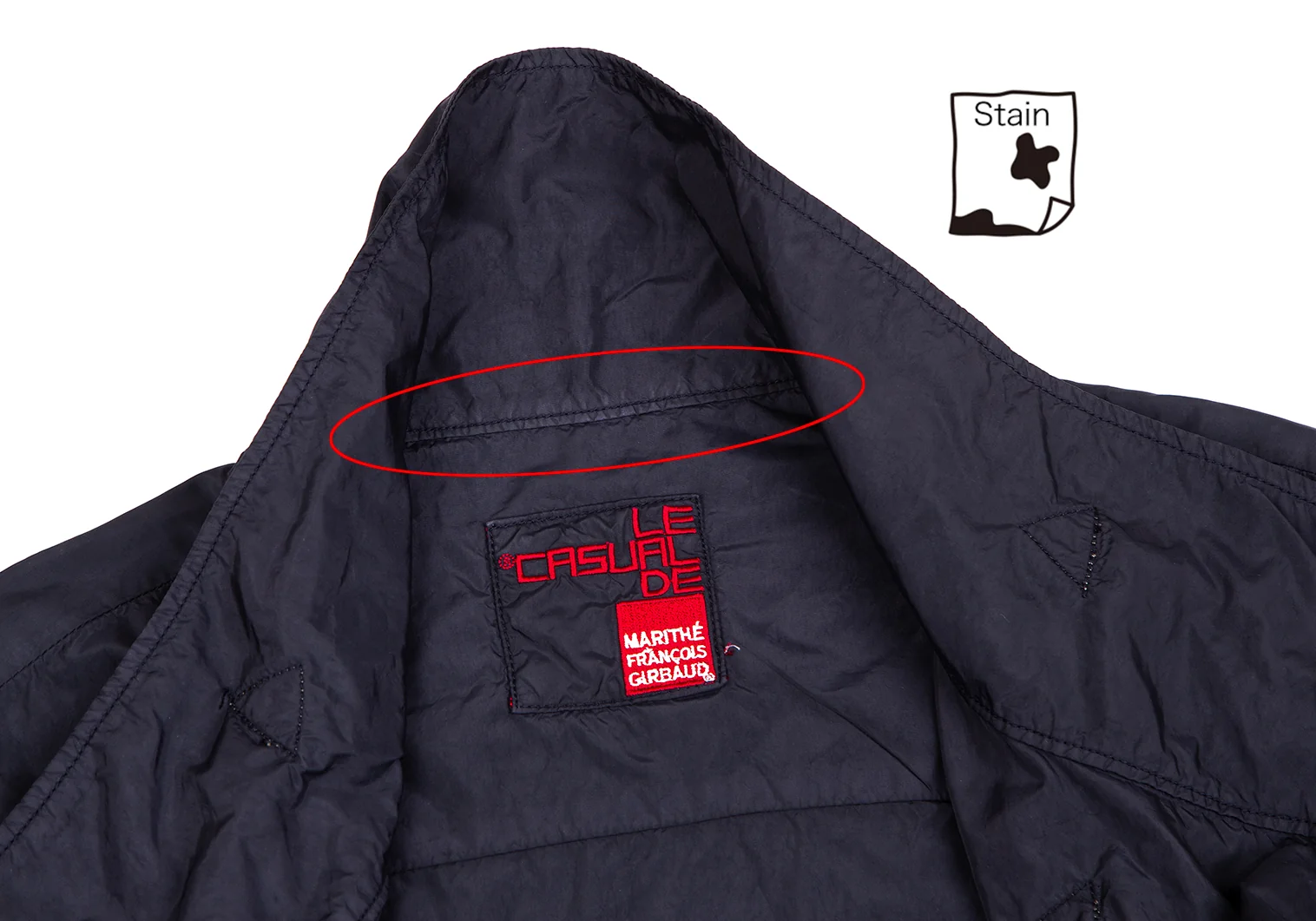 襟裏に汚れ、右袖に小穴、肩に薄汚れがあります(写真参照)その他目立ったシミ、汚れ、ほつれ等なくいい状態です。クリーニング済み