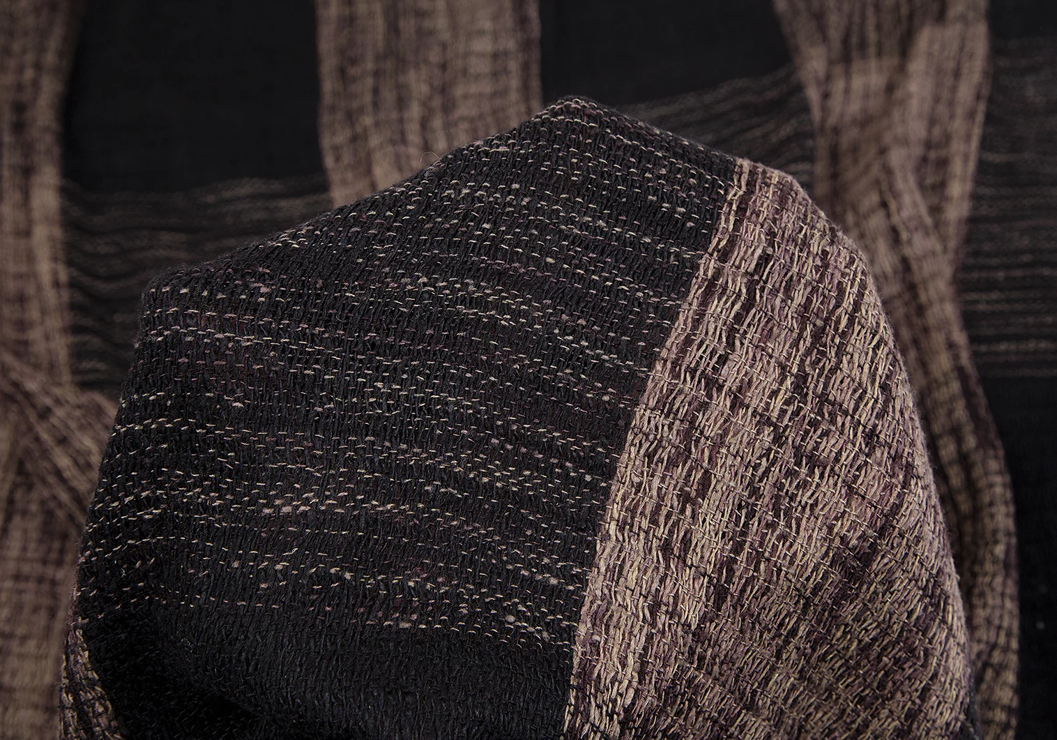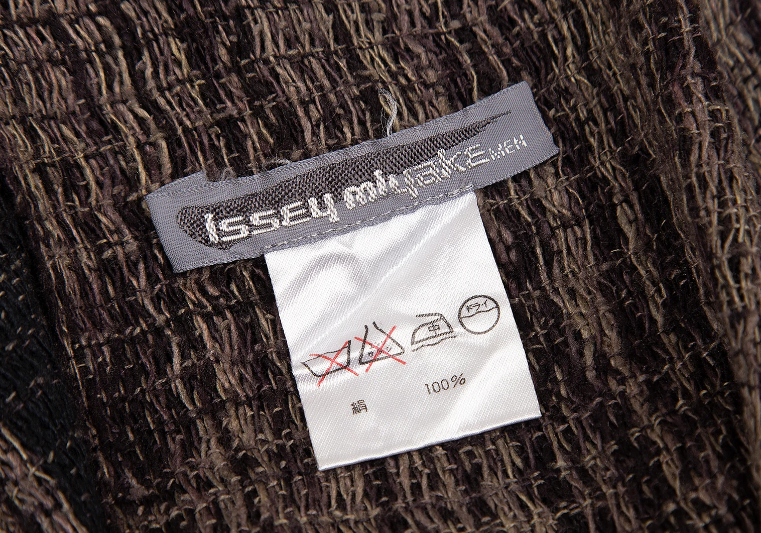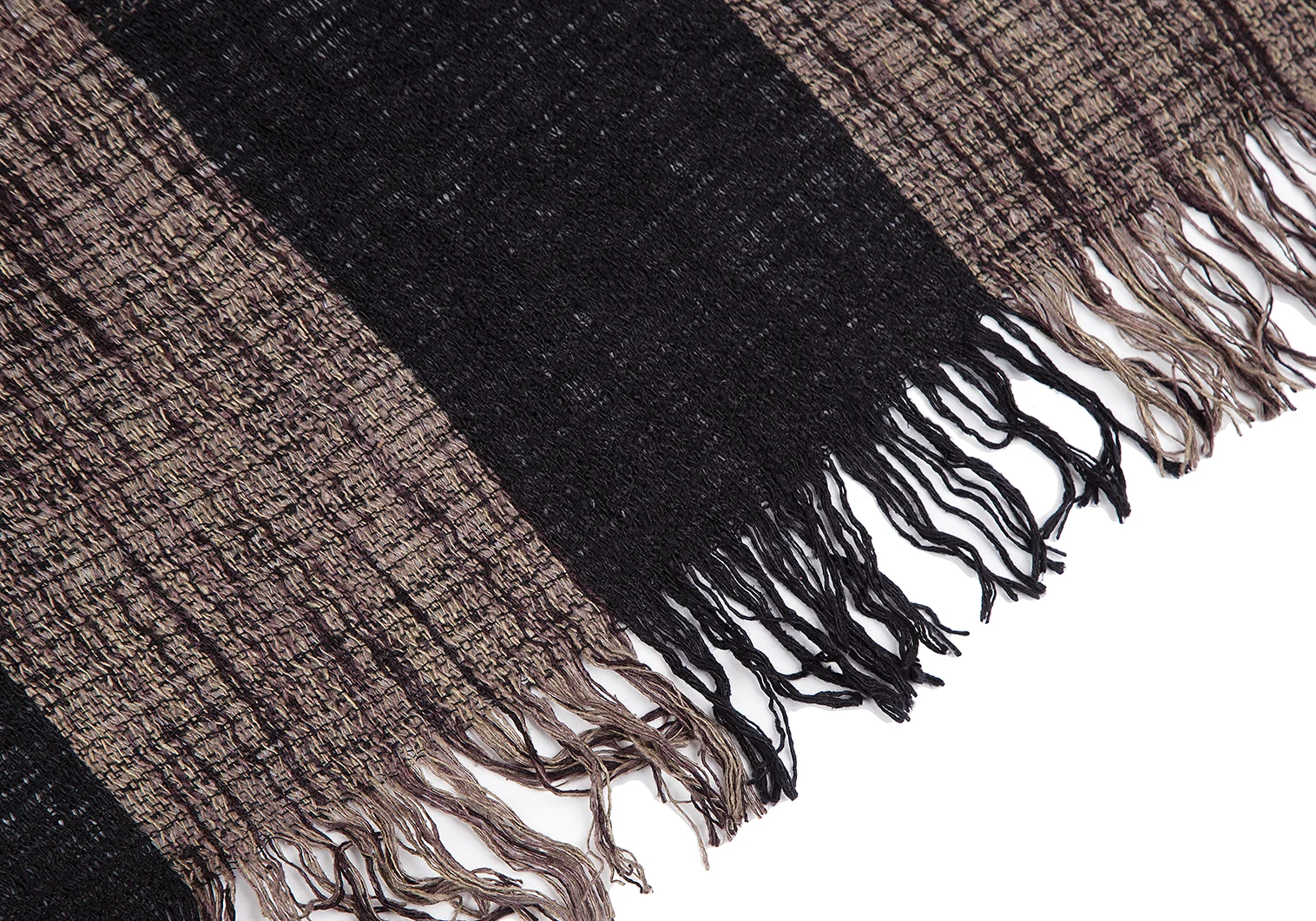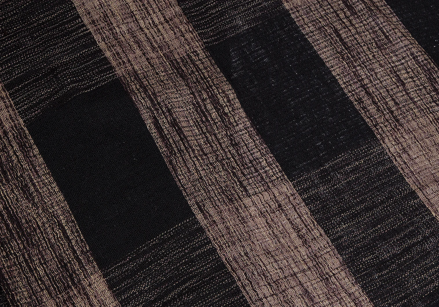 イッセイミヤケISSEY MIYAKE MEN シルクチェックフリンジマフラー 黒ベージュ