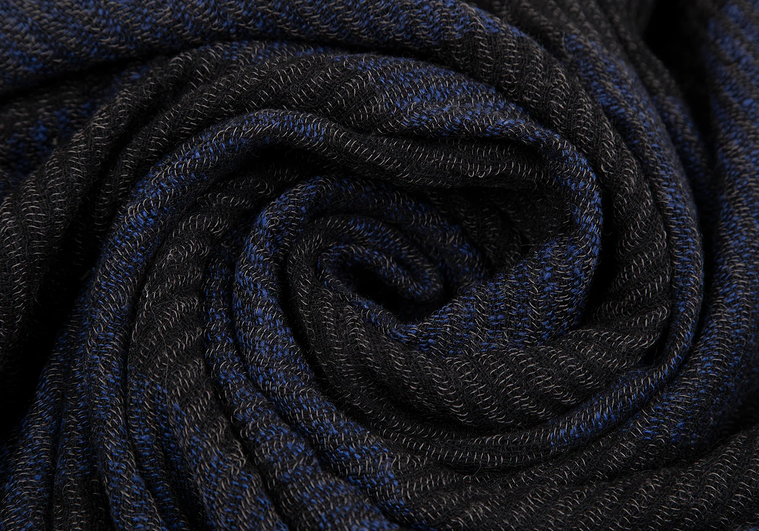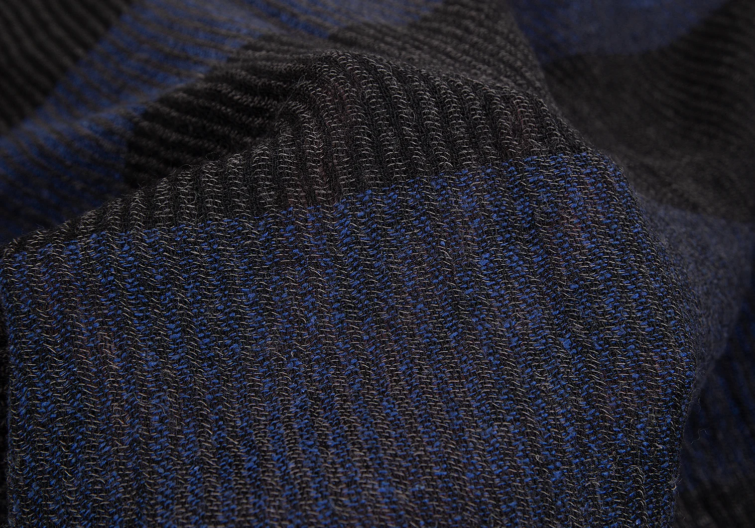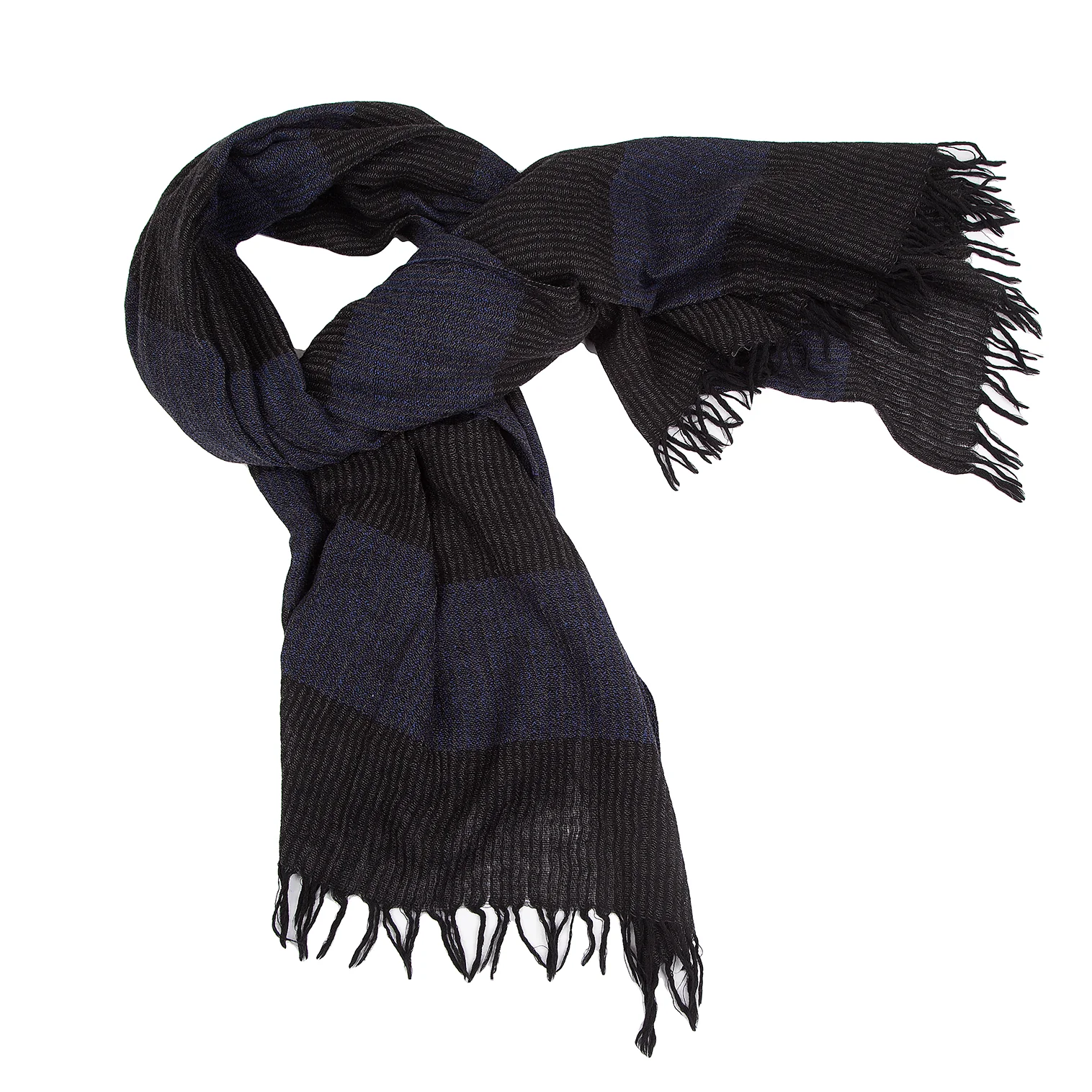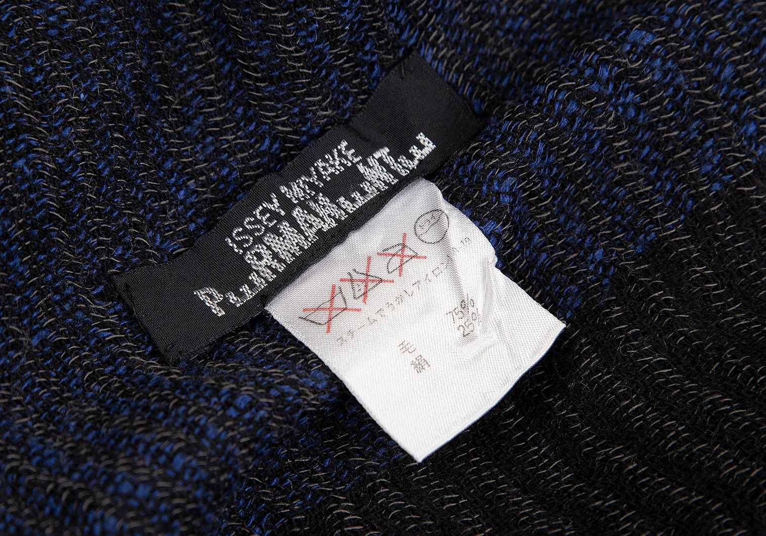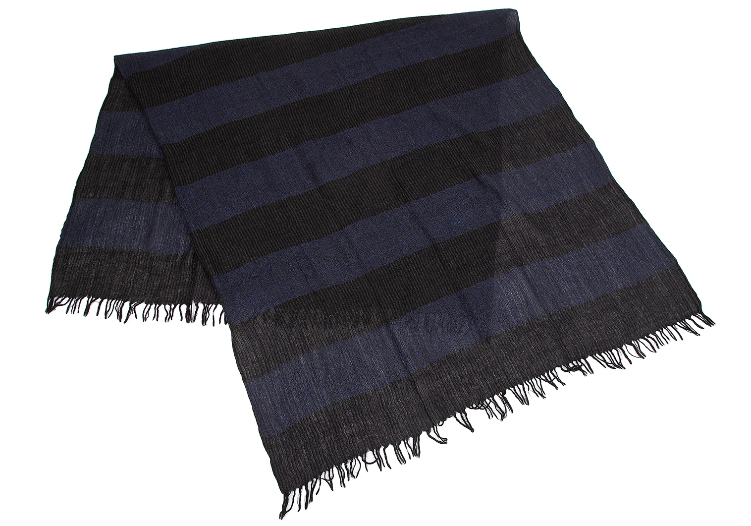 イッセイミヤケペルマネンテISSEY MIYAKE PERMANENTE ウールシルクボーダーフリンジマフラー 黒青