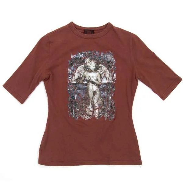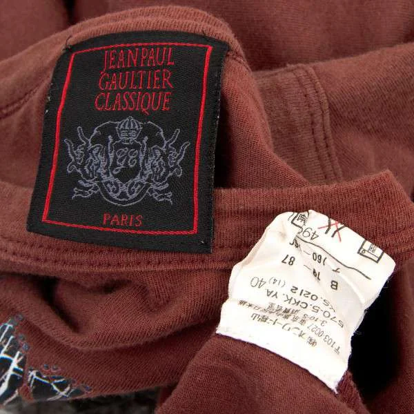 ジャンポールゴルチエJean Paul GAULTIER CLASSIQUE 五分袖プリントTシャツ エンジ40