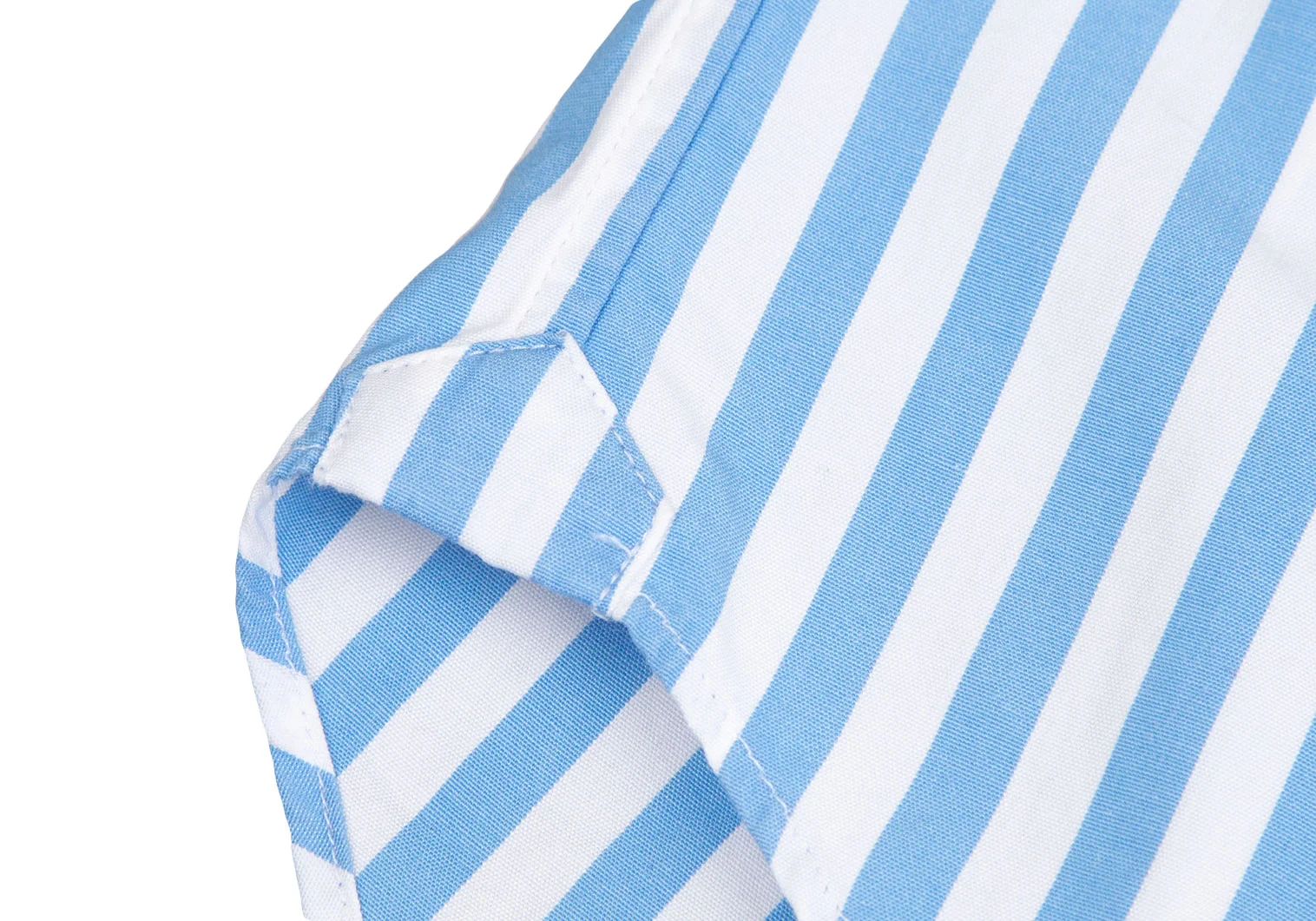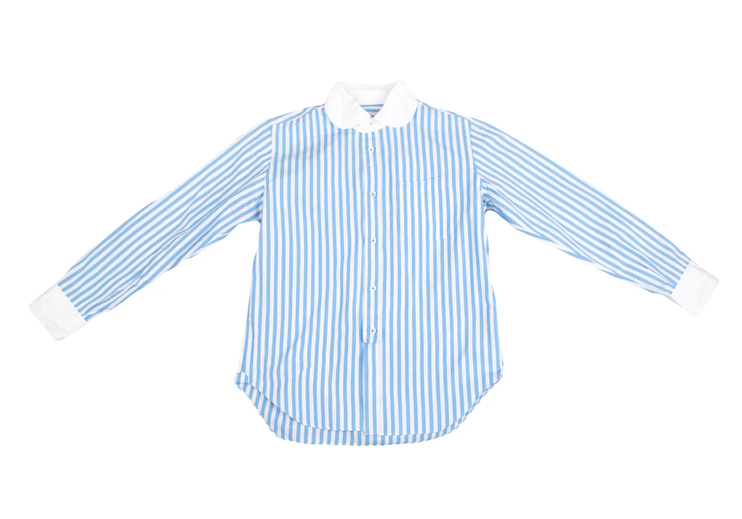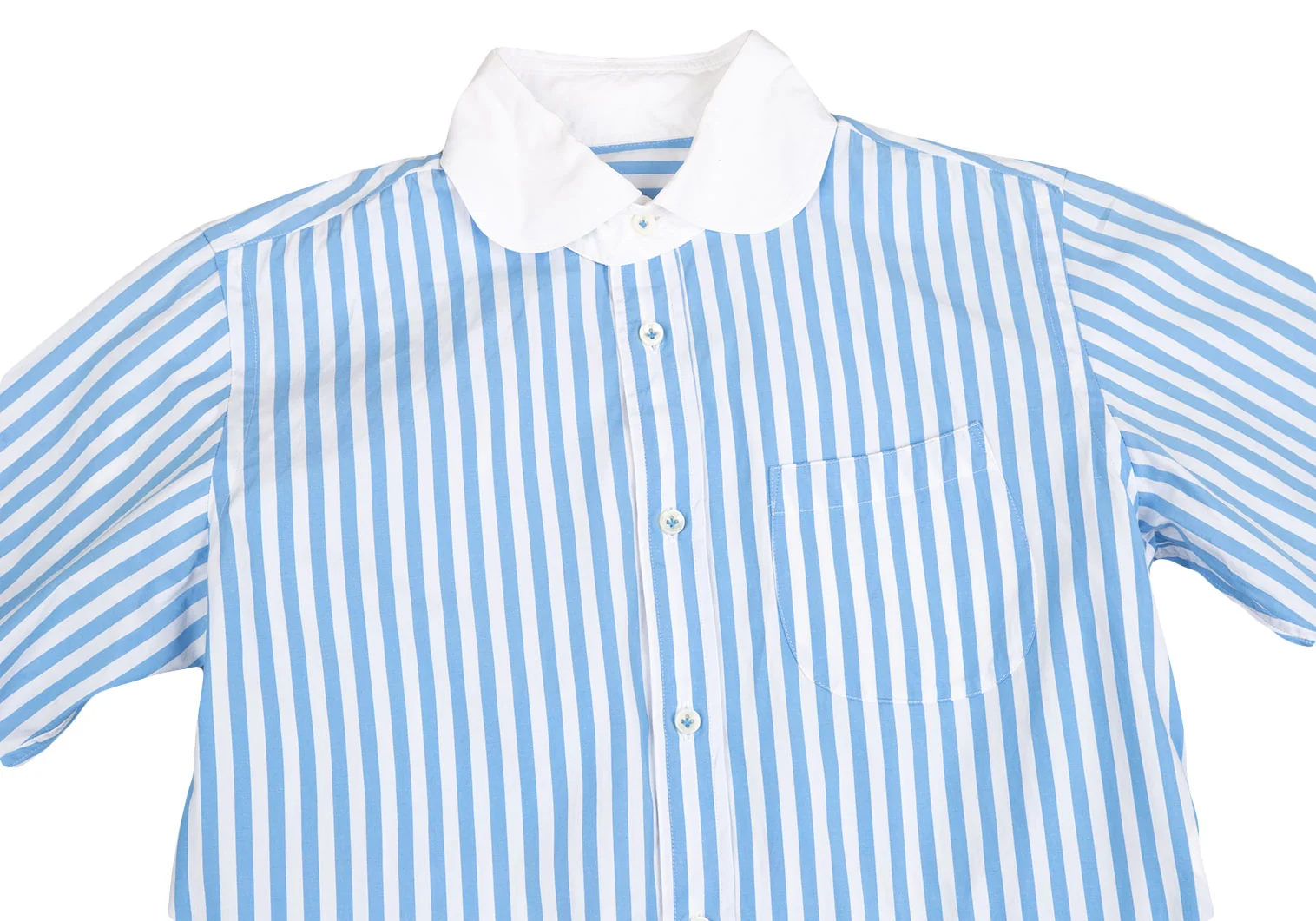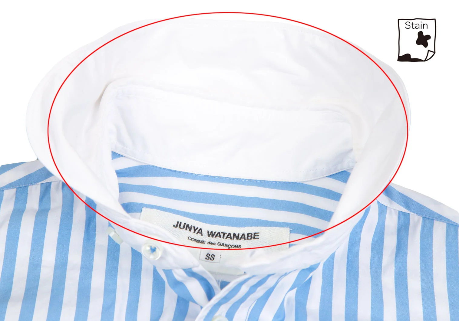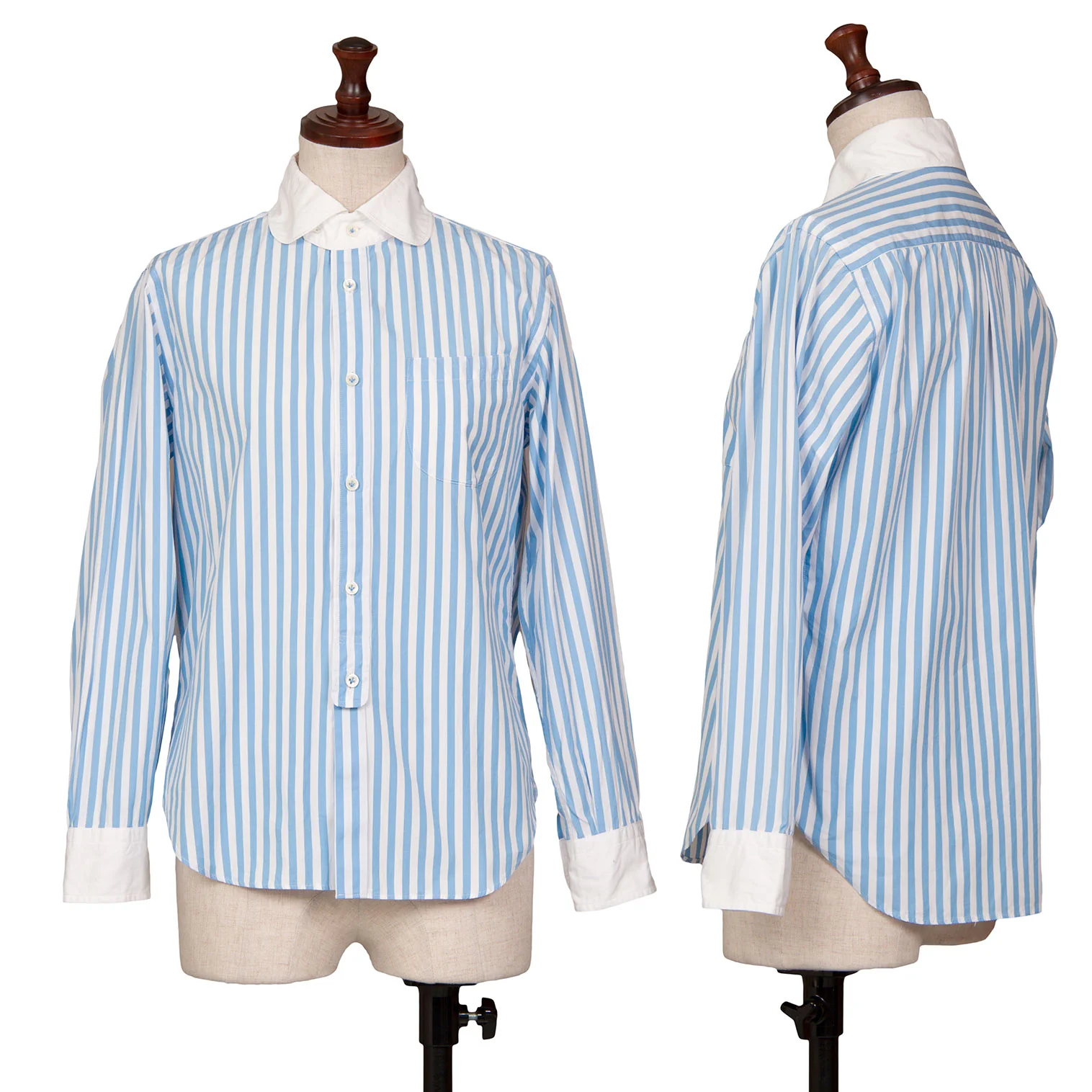 ジュンヤワタナベ コムデギャルソンJUNYA WATANABE COMME des GARCONS ラウンドカラーストライプ長袖シャツ 青白 水色白SS