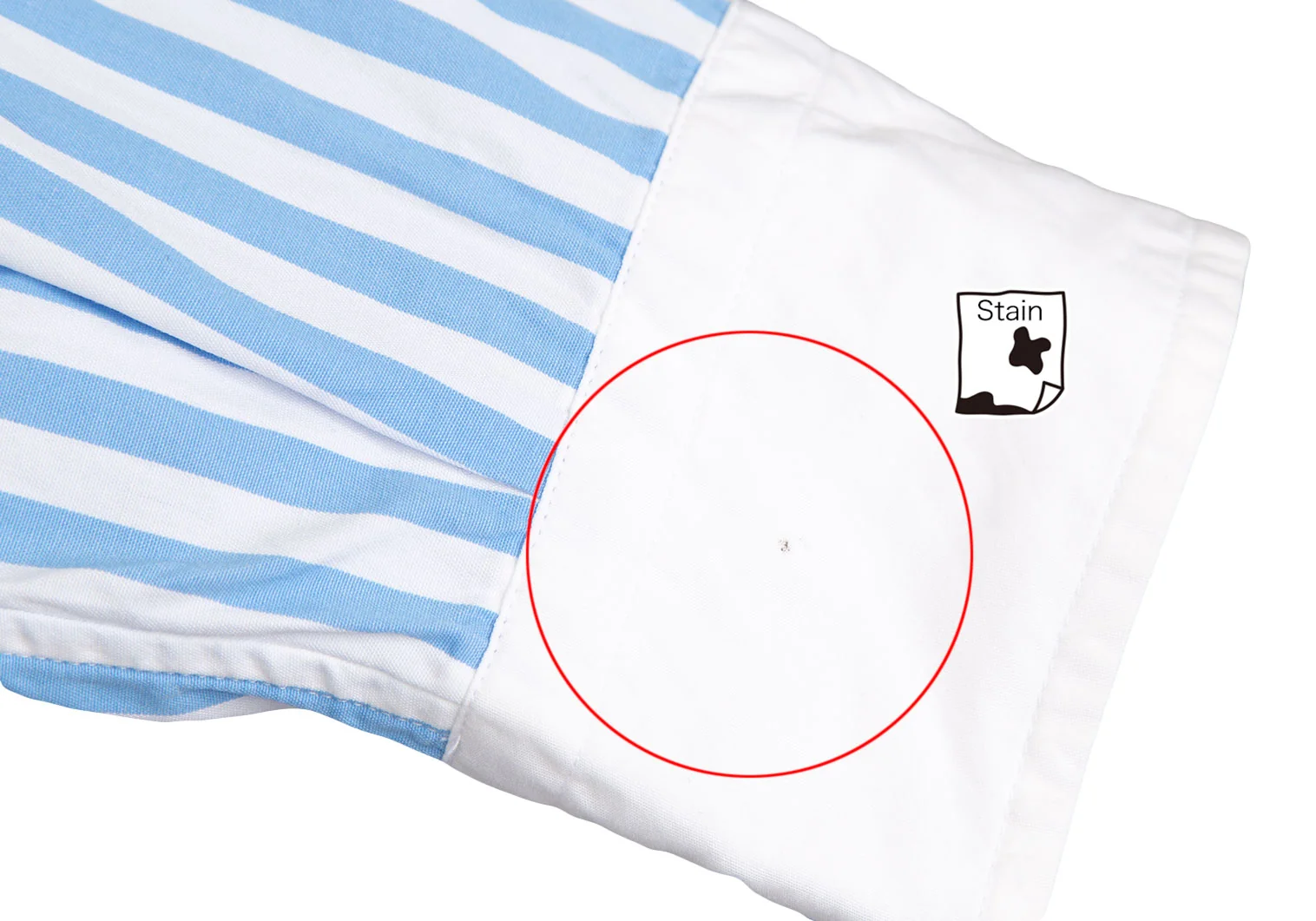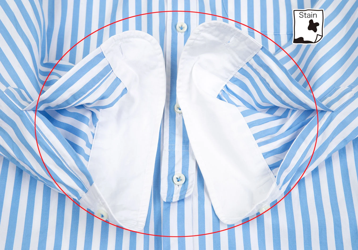 襟裏・右袖先・袖裏に薄シミ、左袖先に汚れがあります(写真参照)。その他目立ったシミ、汚れ、ほつれ等はありません。クリーニング済み