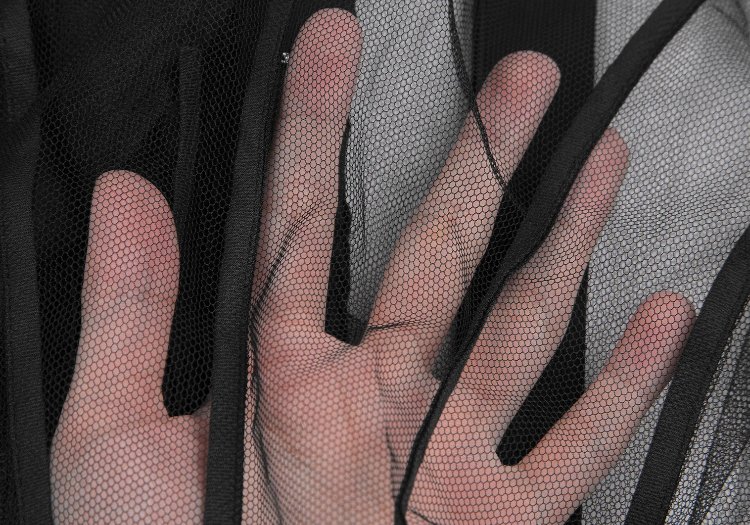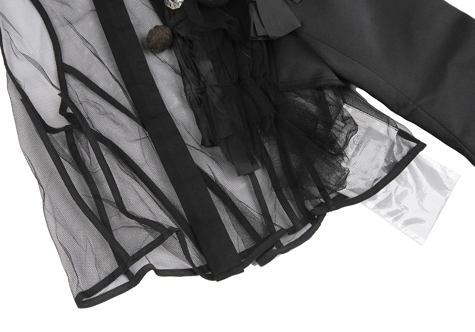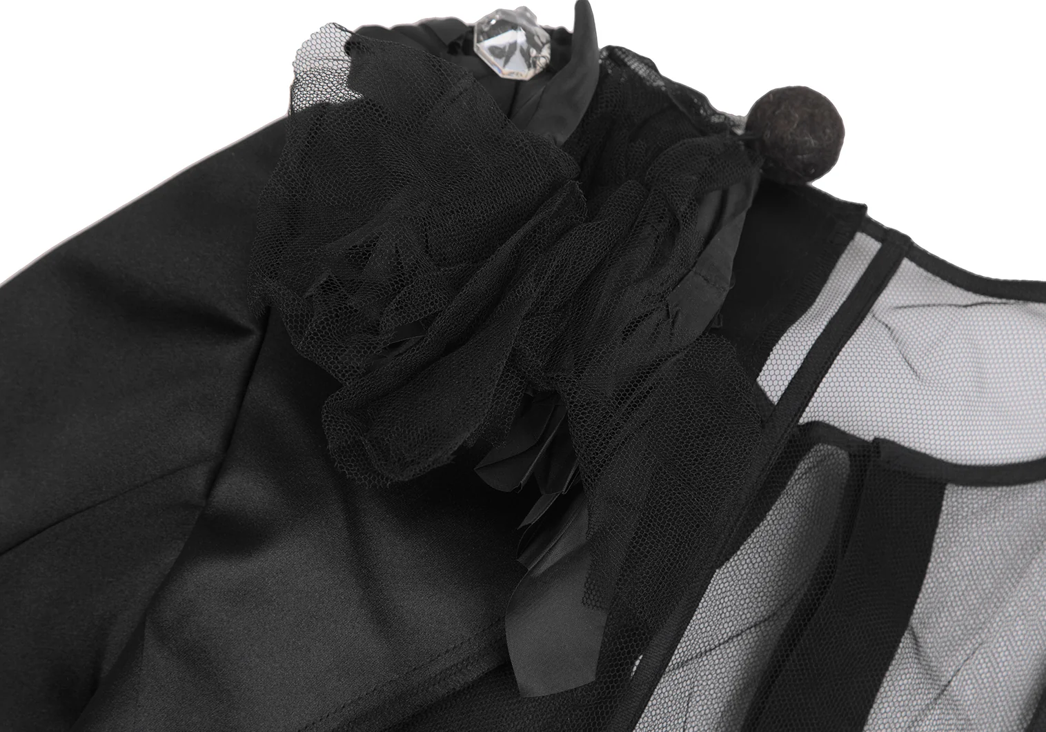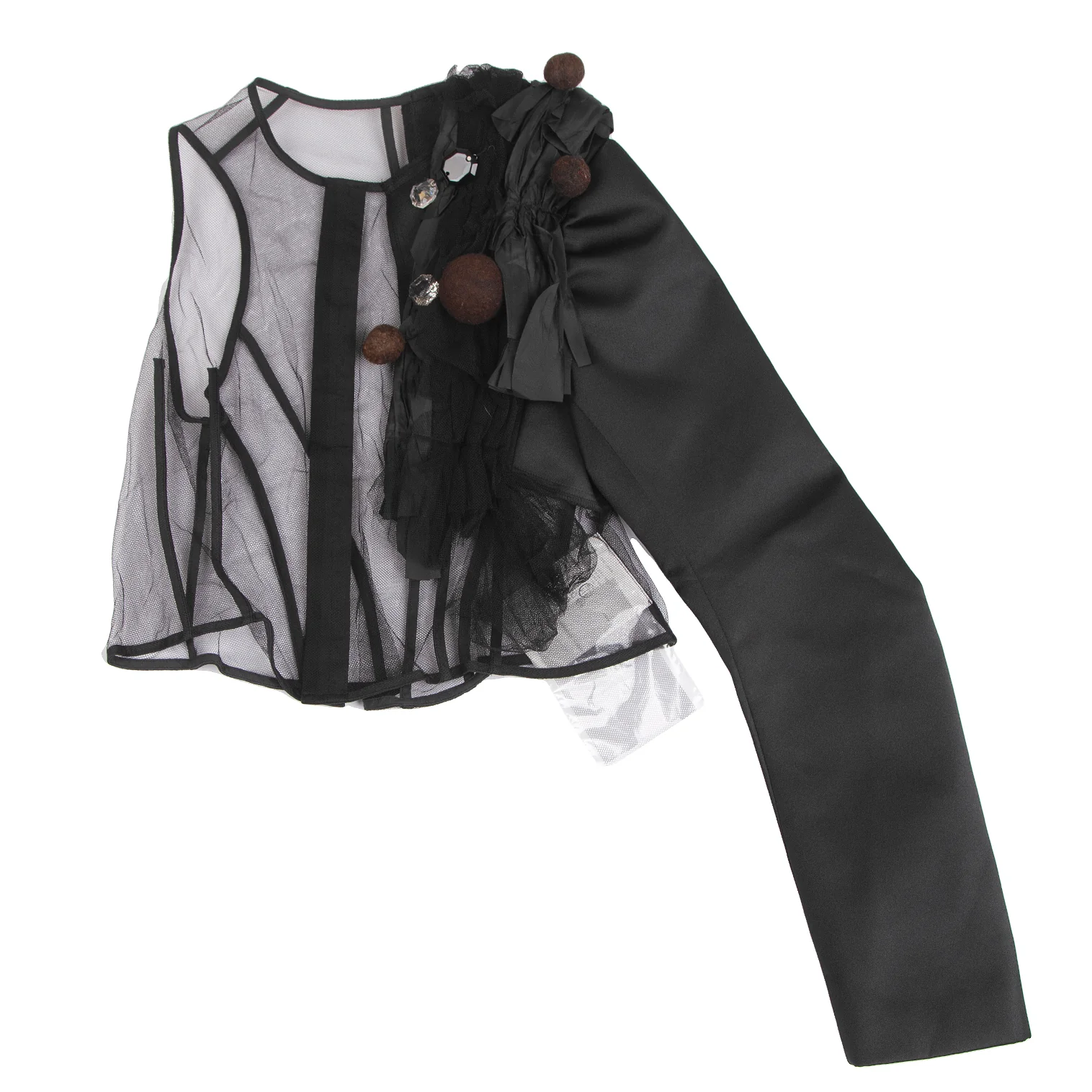 コムデギャルソンCOMME des GARCONS モチーフ装飾片袖メッシュトップス 黒S位