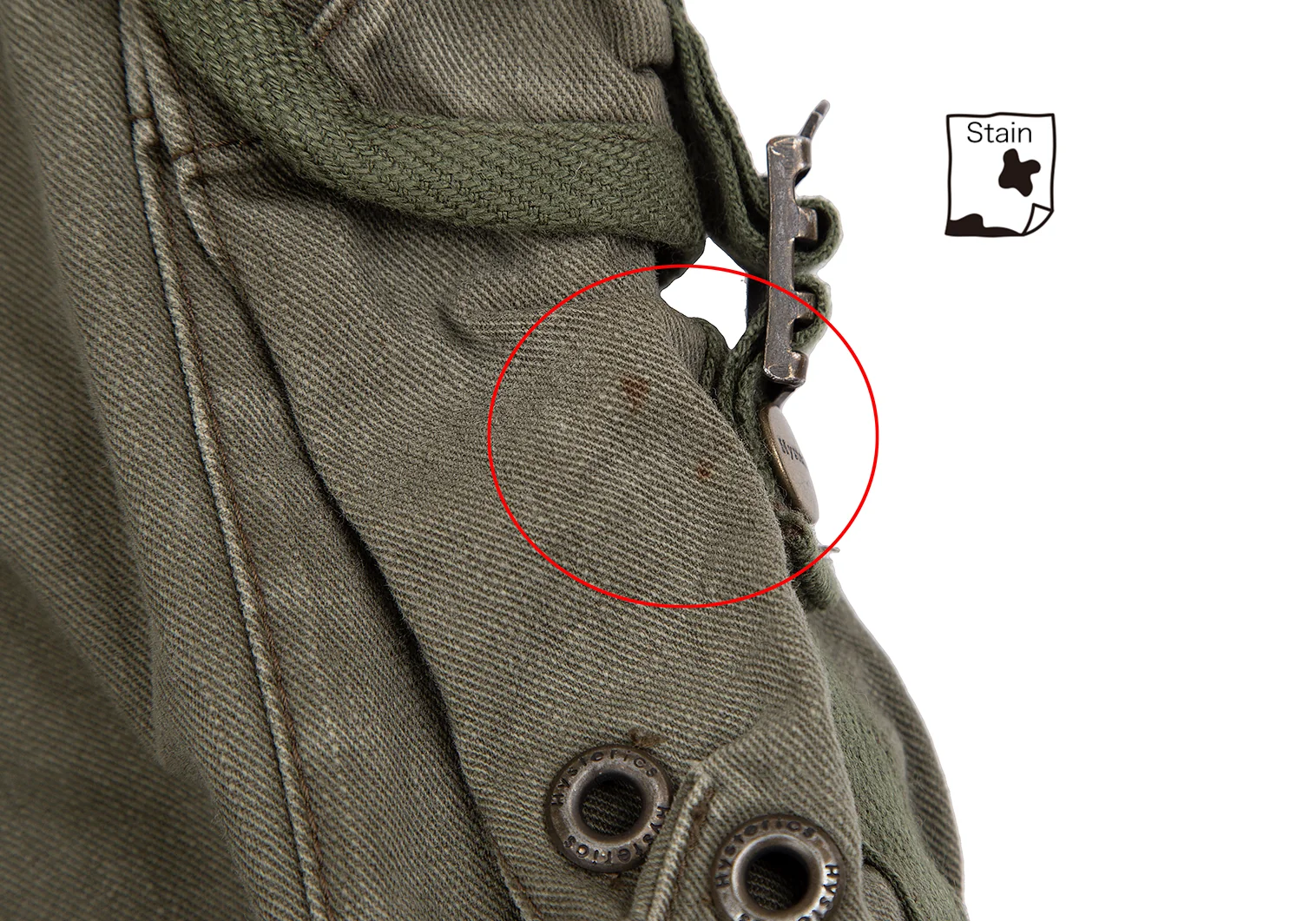 サイド・サイドポケットにシミがあります(写真参照)。その他目立ったシミ、汚れ、ほつれ等なくいい状態です。クリーニング済み