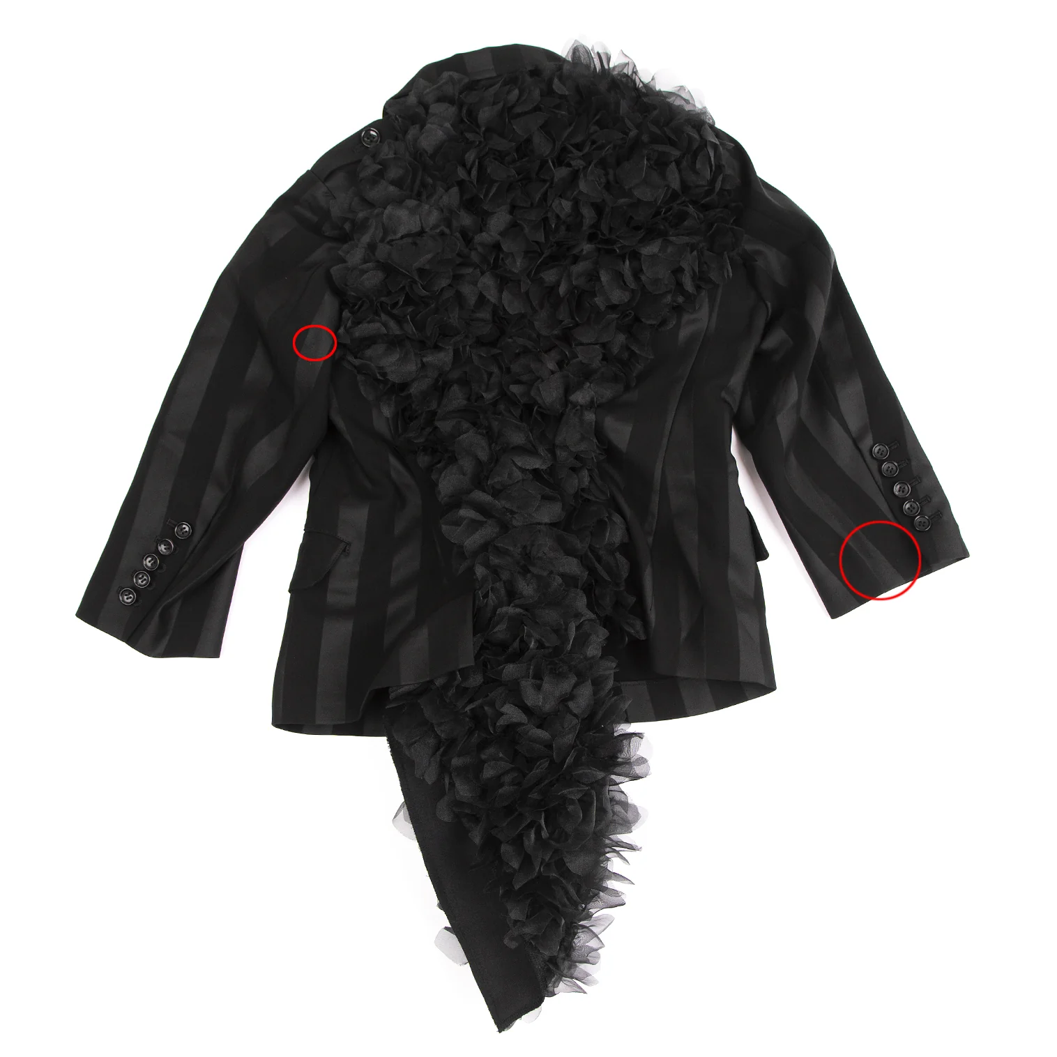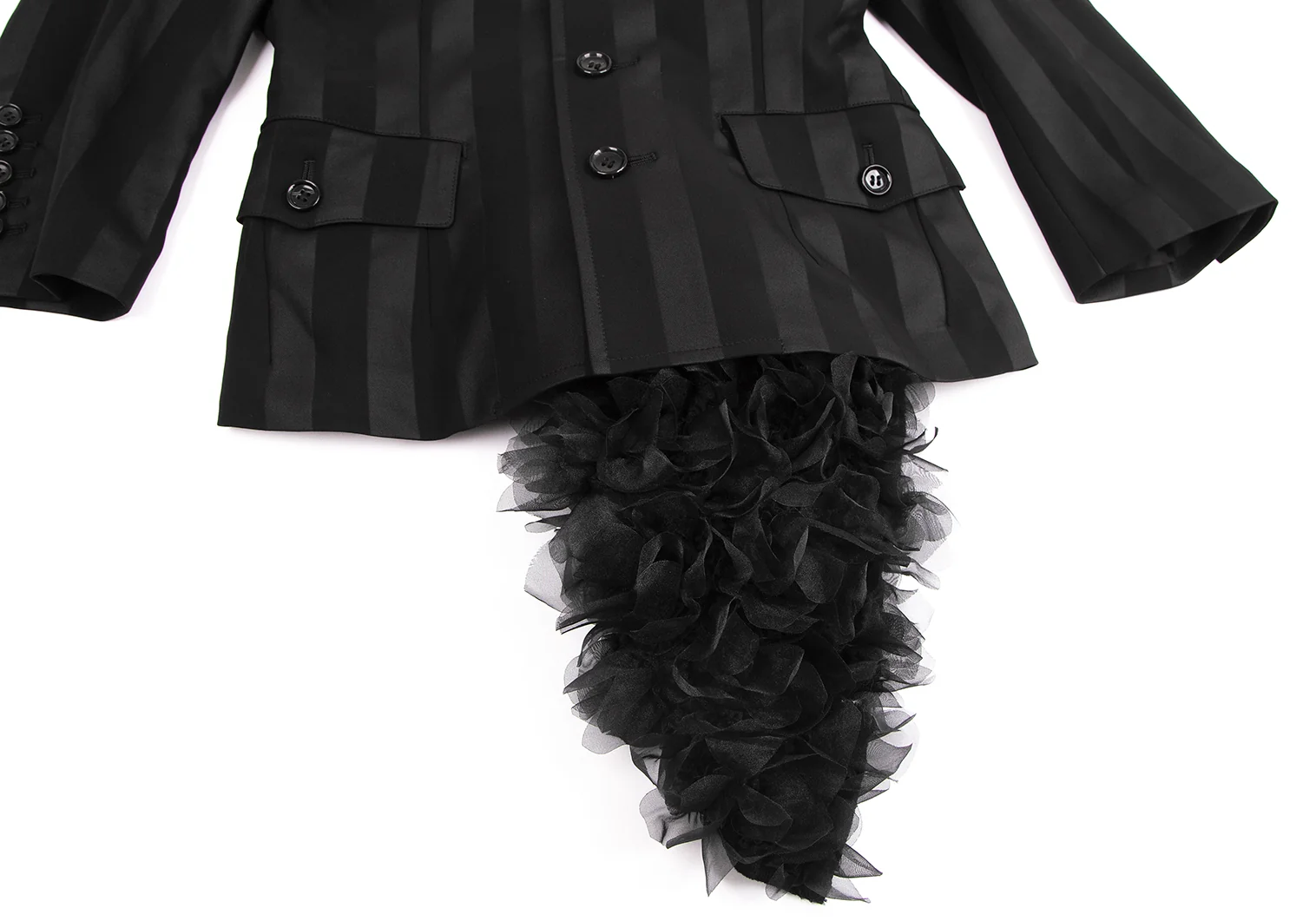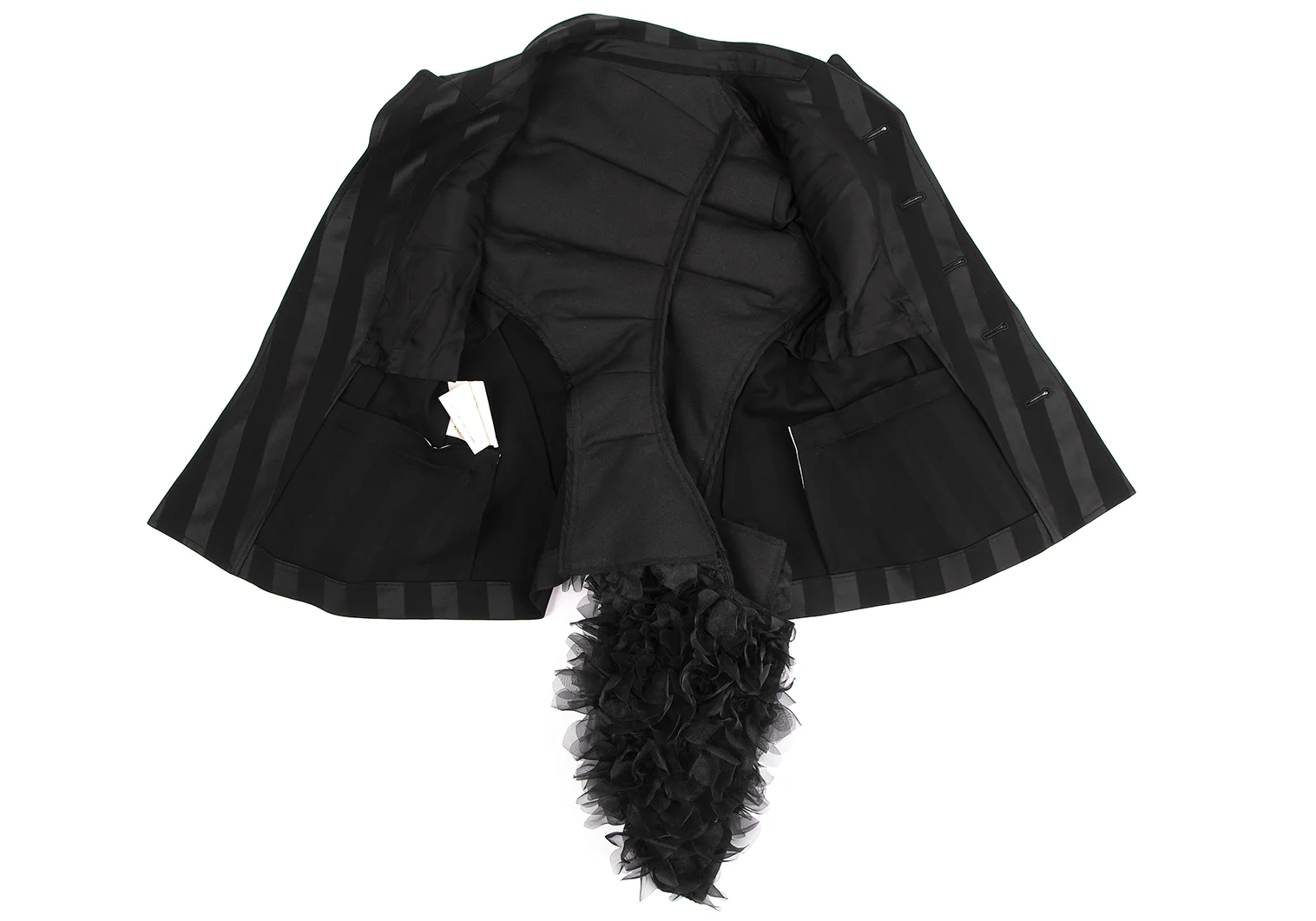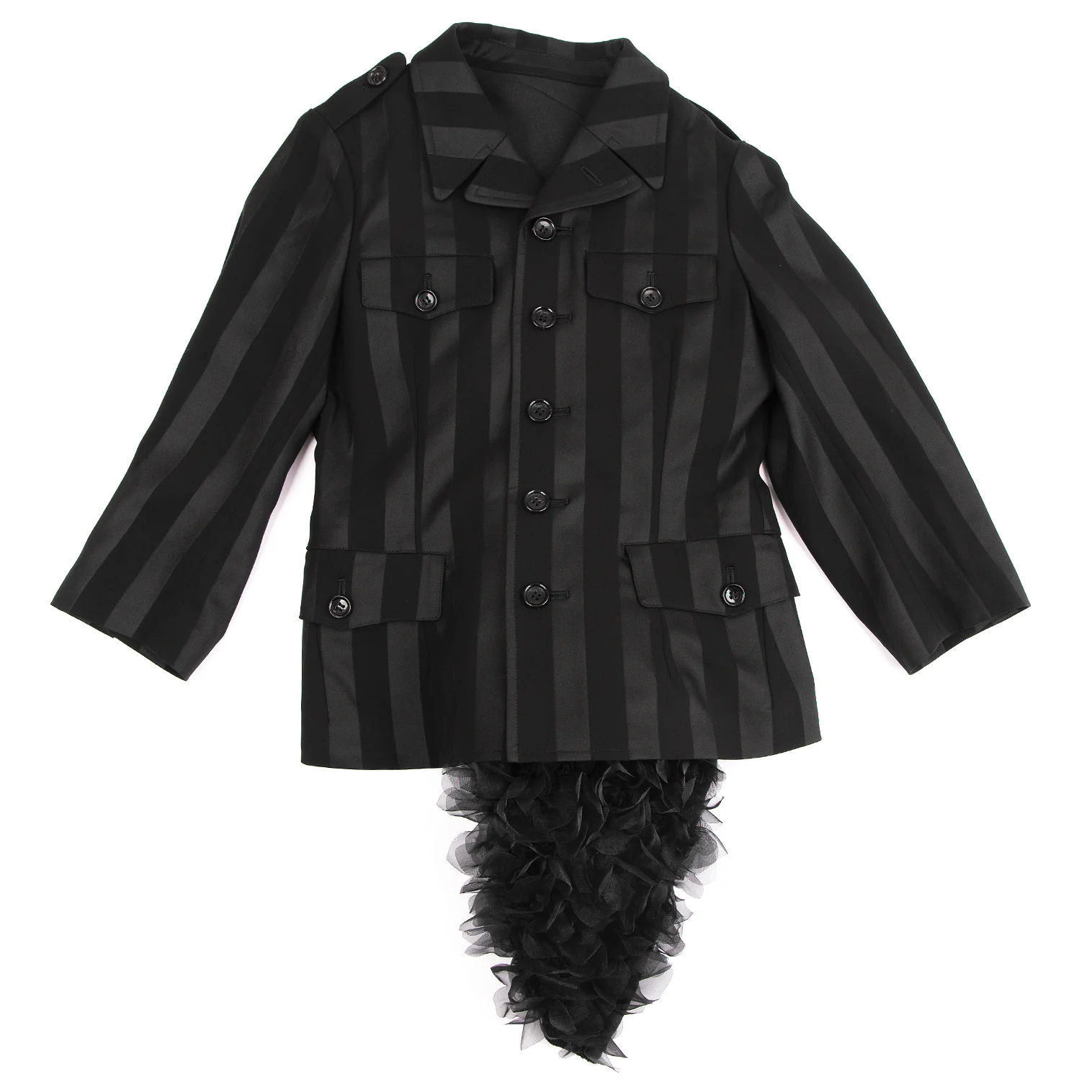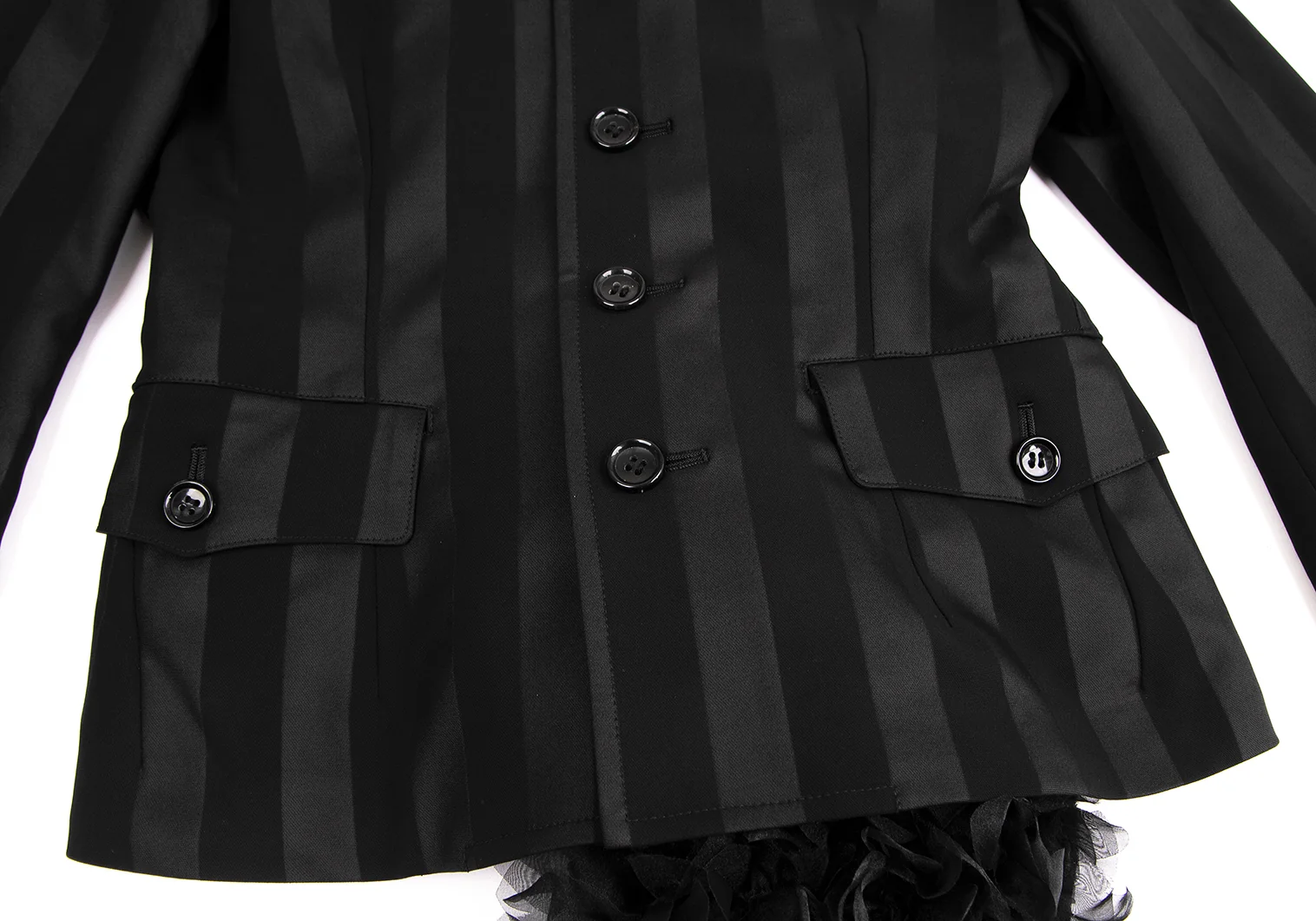 コムデギャルソンCOMME des GARCONS HaPPy RIBBON バックフリル装飾ストライプジャケット 黒S