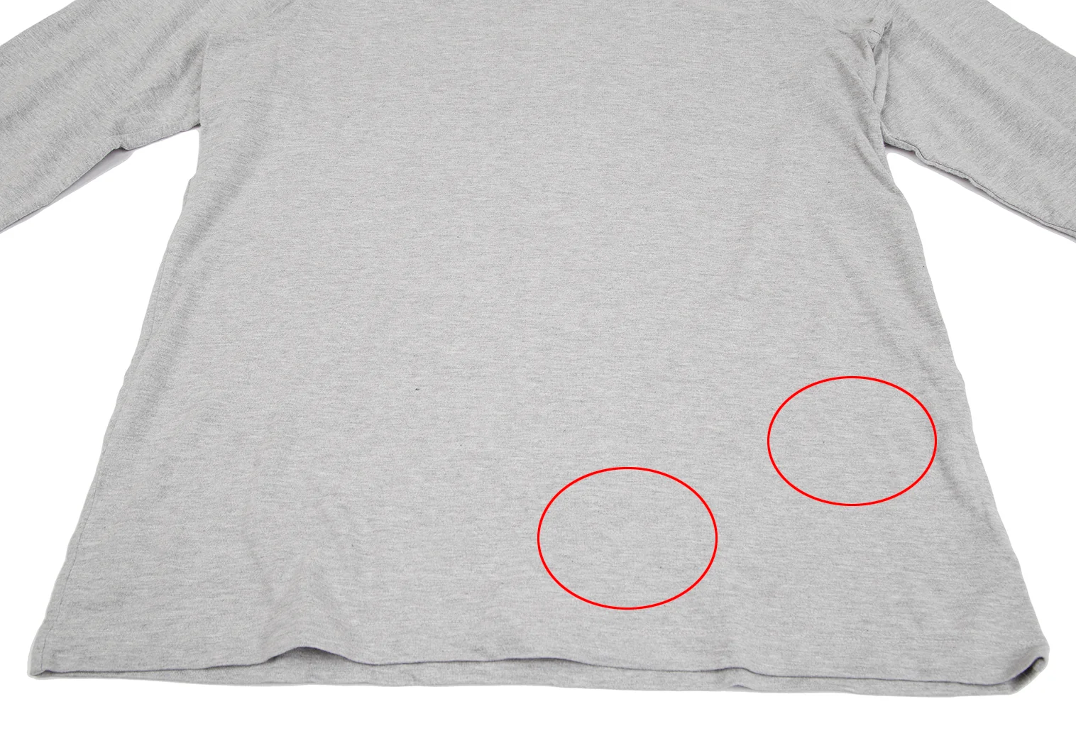 全体に若干の毛羽立ちがあります。首周り・前身頃に薄シミ・薄汚れがあります(写真参照)その他目立ったシミ、汚れ、ほつれ等なくいい状態です。クリーニング済み