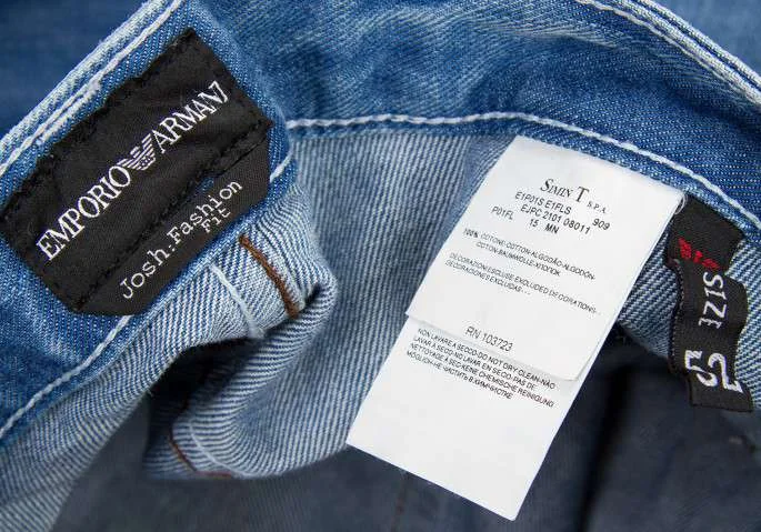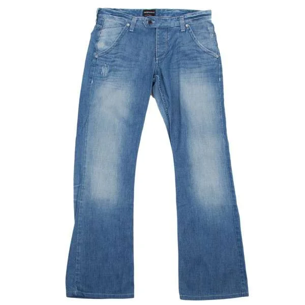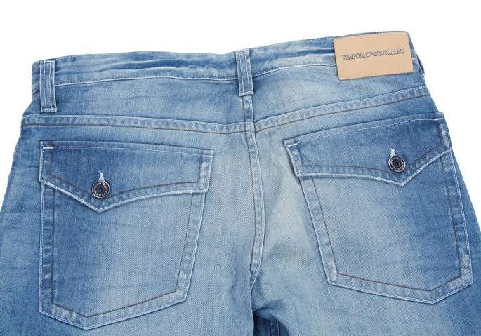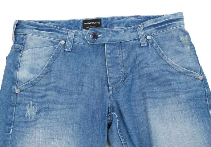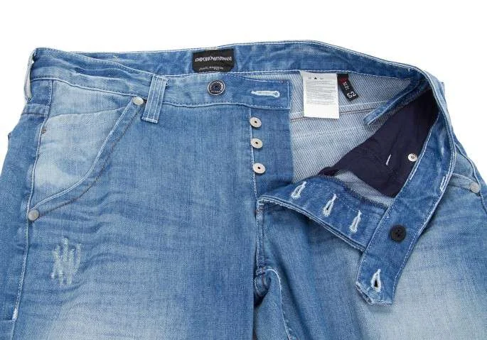 エンポリオ アルマーニEMPORIO ARMANI ダメージ加工ステッチジーンズ ブルー52