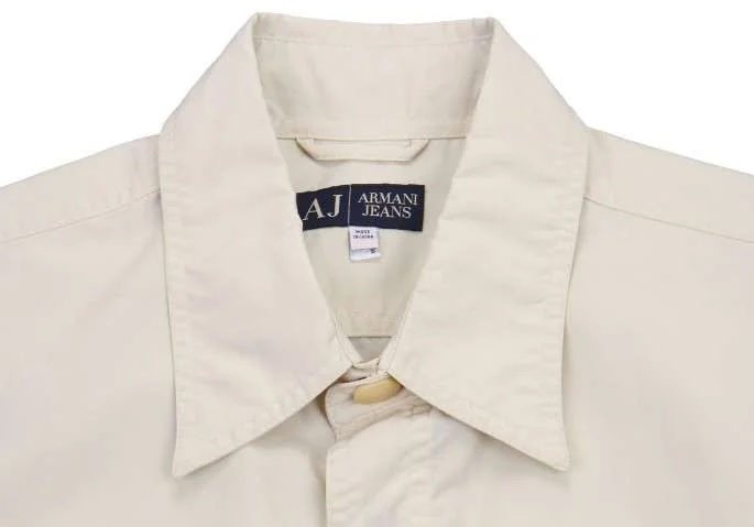【SALE】アルマーニ ジーンズARMANI JEANS ナイロンドットボタンシャツ オフホワイトXL