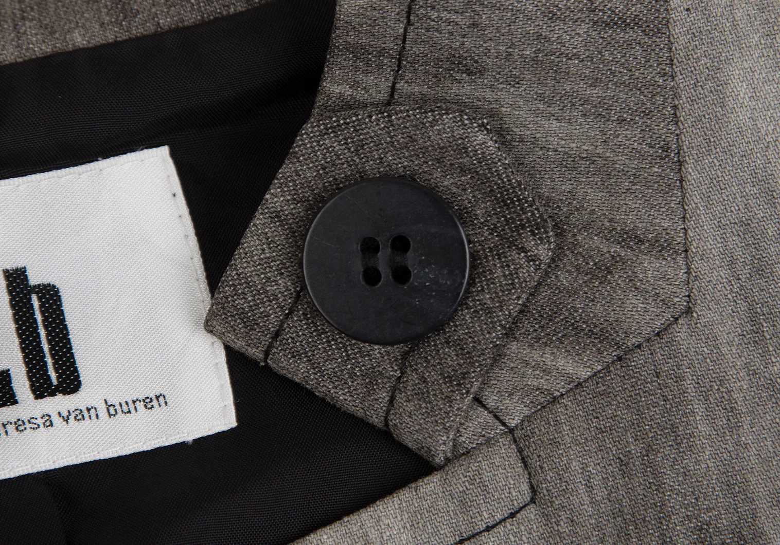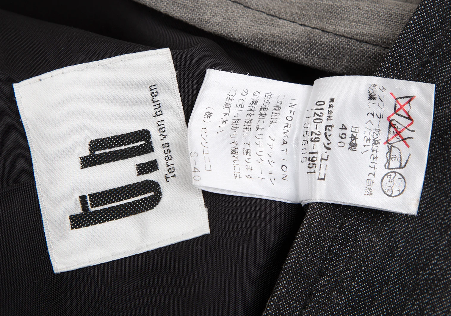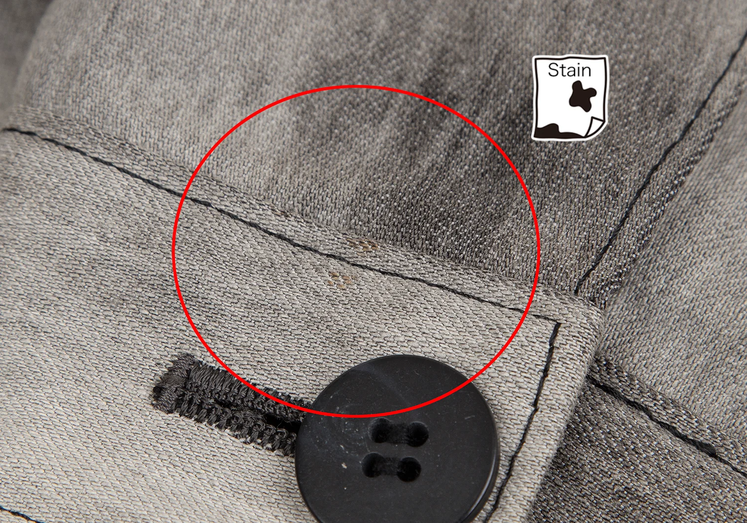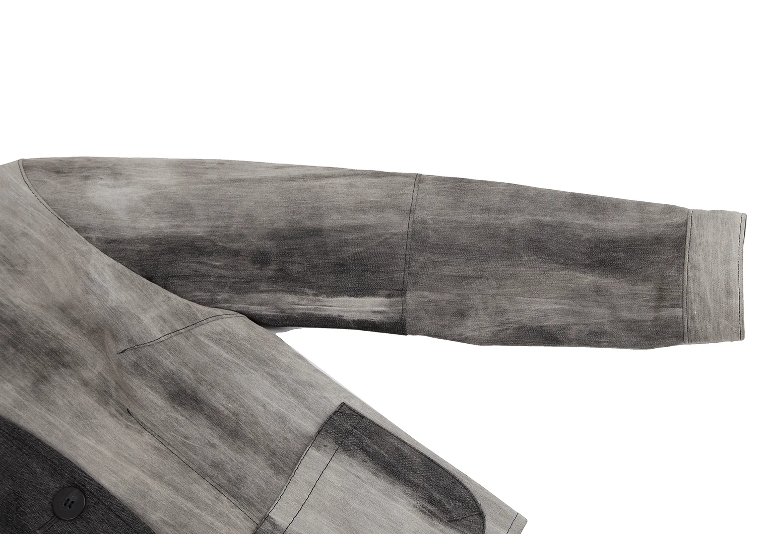 襟裏・袖口に薄汚れ、左袖先にシミ、左肩に汚れがあります(写真参照)。その他目立ったシミ、汚れ、ほつれ等ありません。クリーニング済み