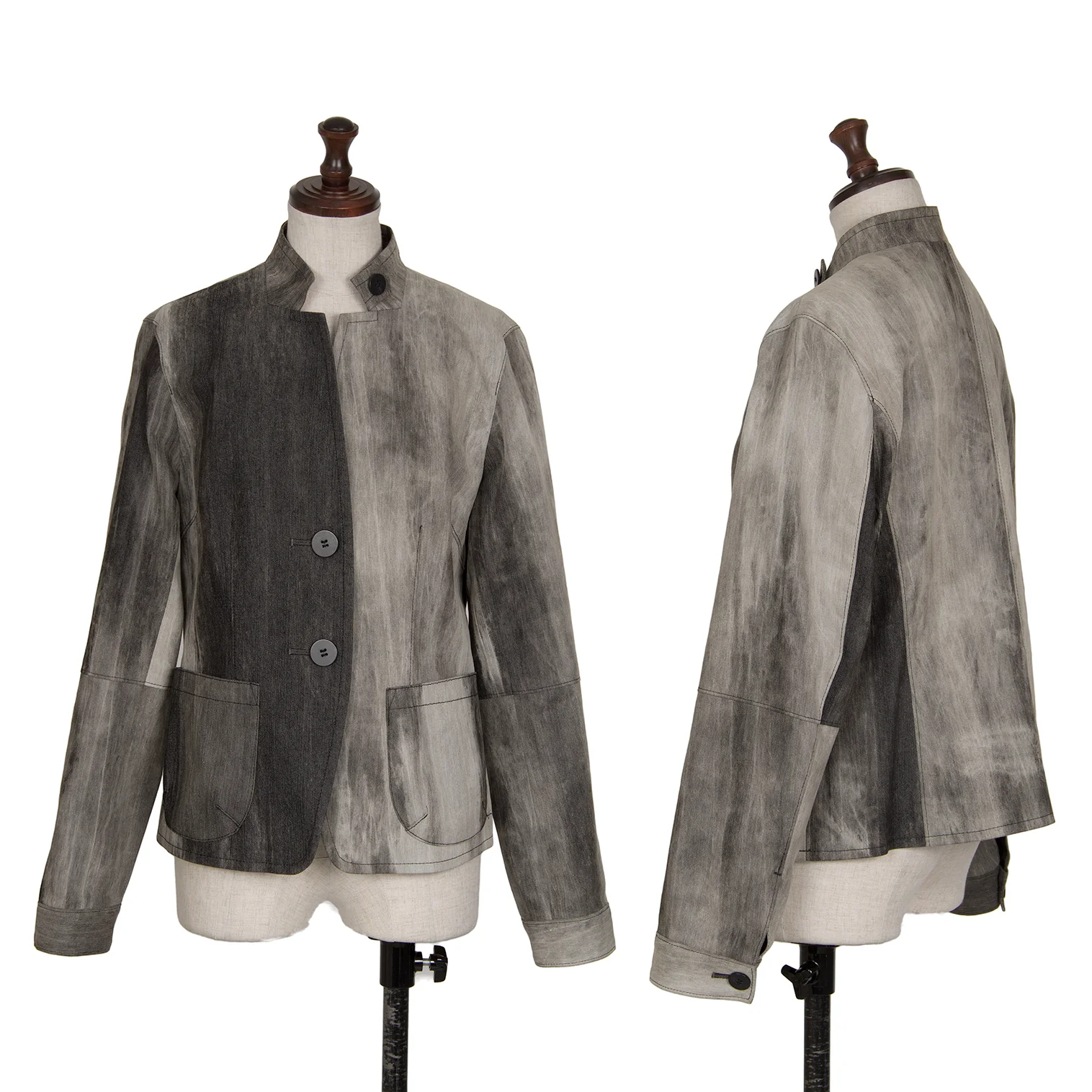 センソユニコt.b SENSOUNICO コットンナイロングラデーションバンドカラージャケット 黒グレー38