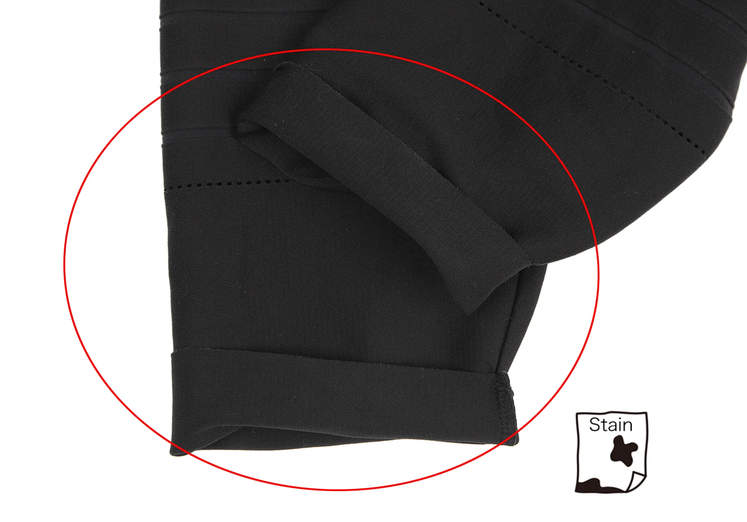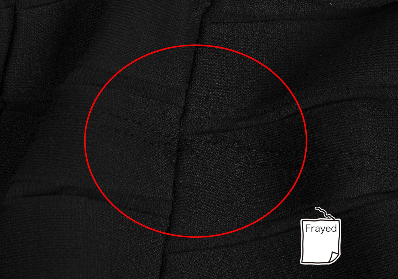 2022S/S 透け感があります。ウエストステッチが切れています。ウエスト裏にほつれ、裾裏に汚れがあります(写真参照)。その他目立ったシミ、汚れ、ほつれ等なくいい状態です。クリーニング済み