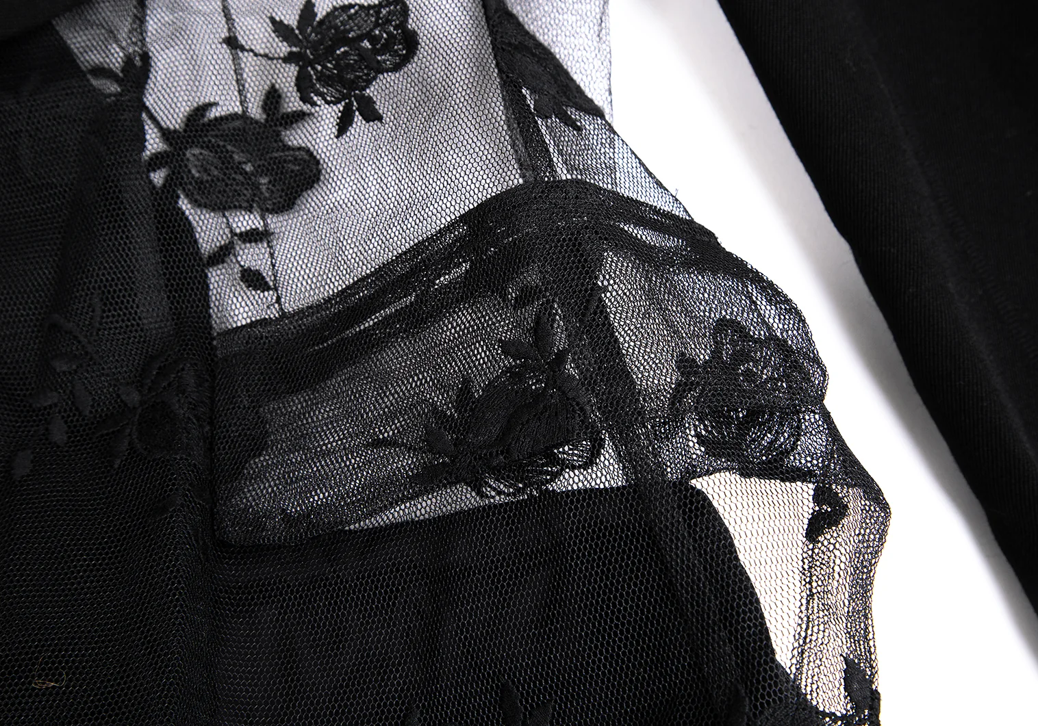 コムデギャルソンCOMME des GARCONS薔薇刺繍ネット切替デザインジャケット 黒M