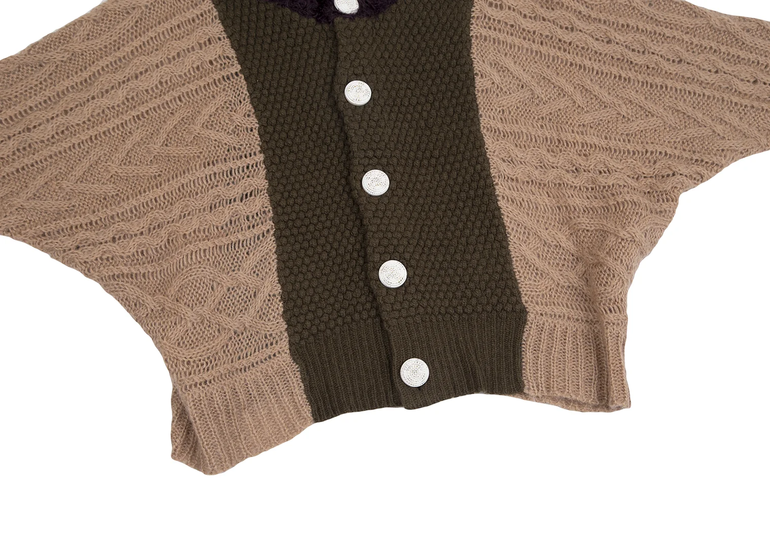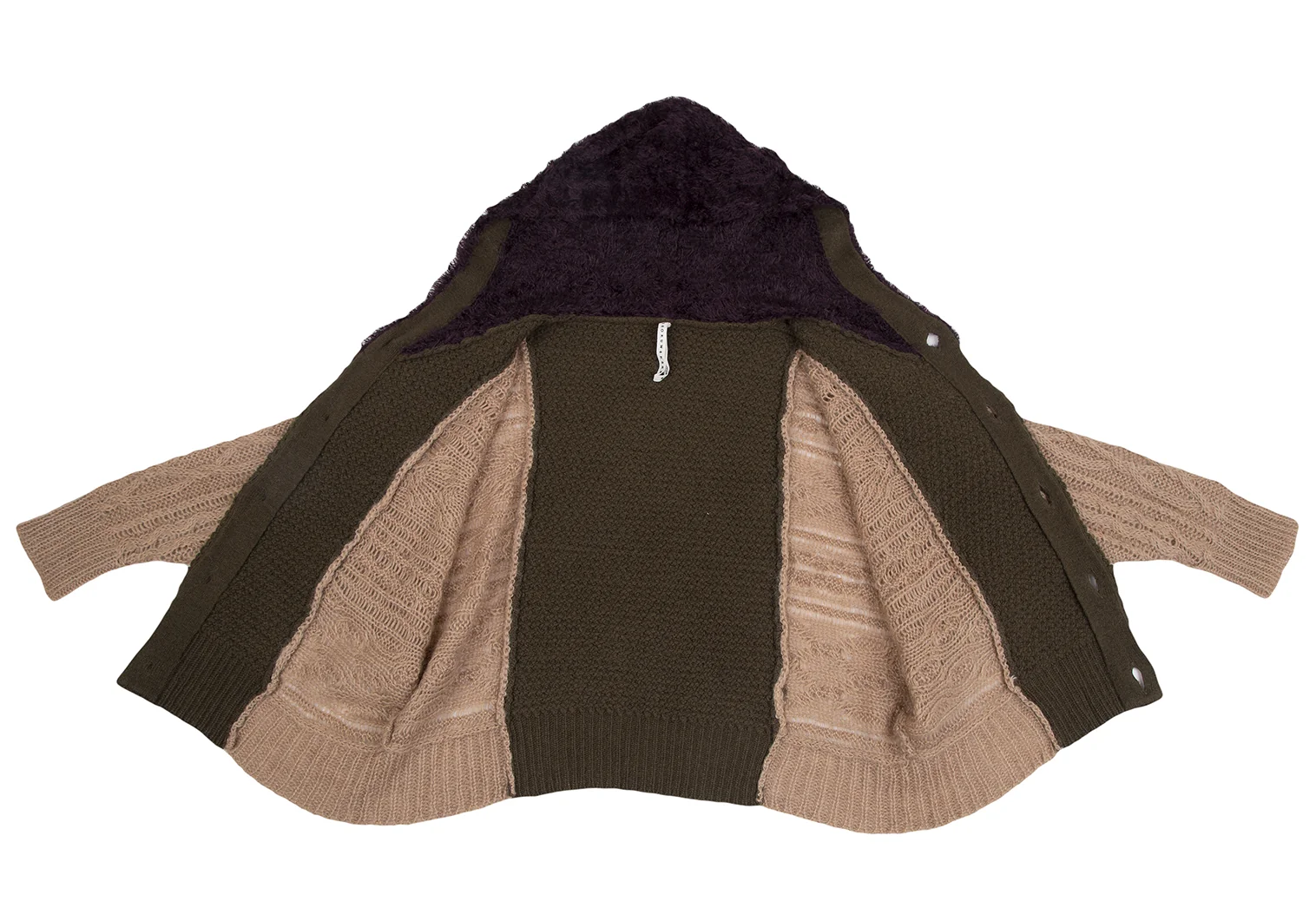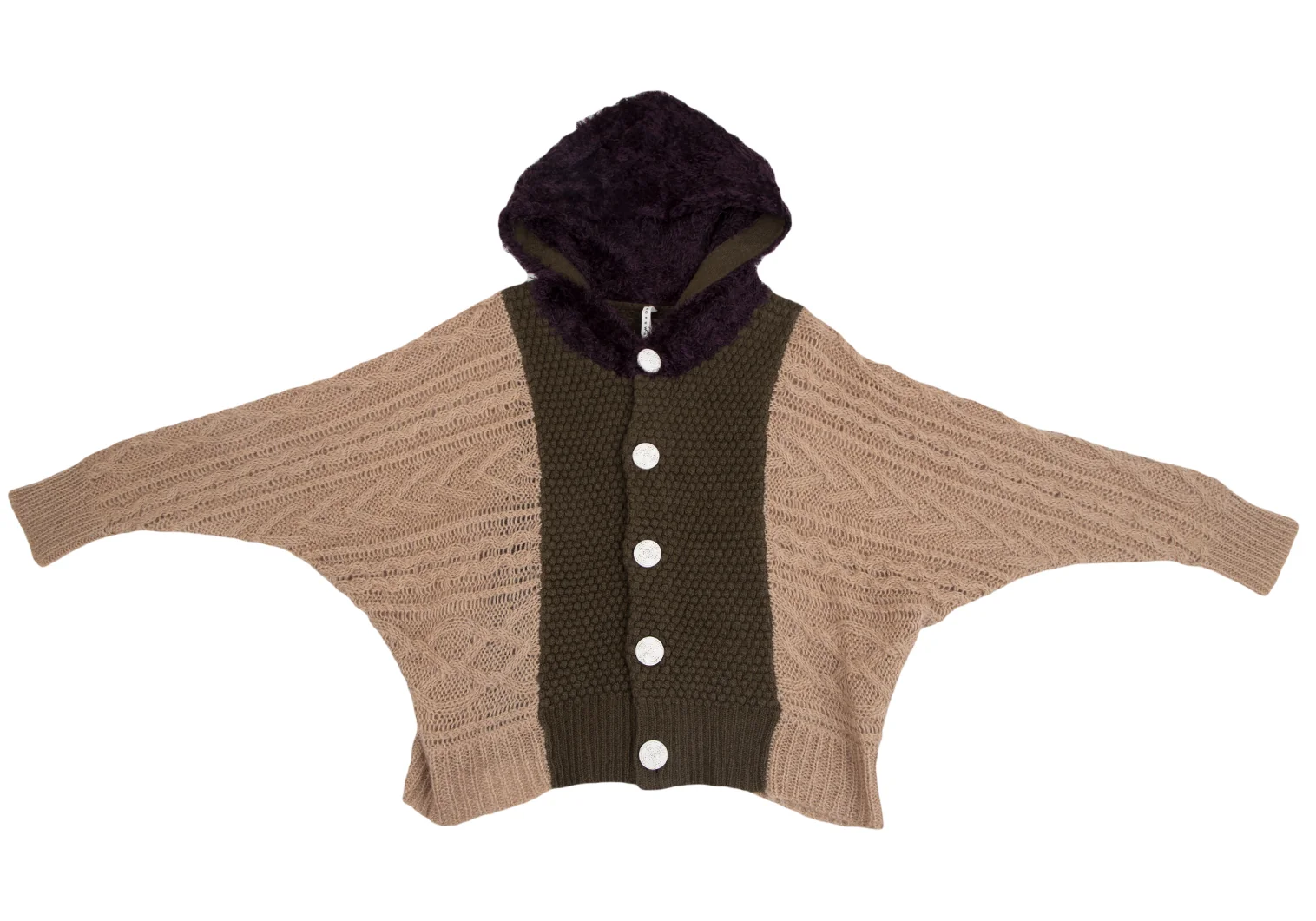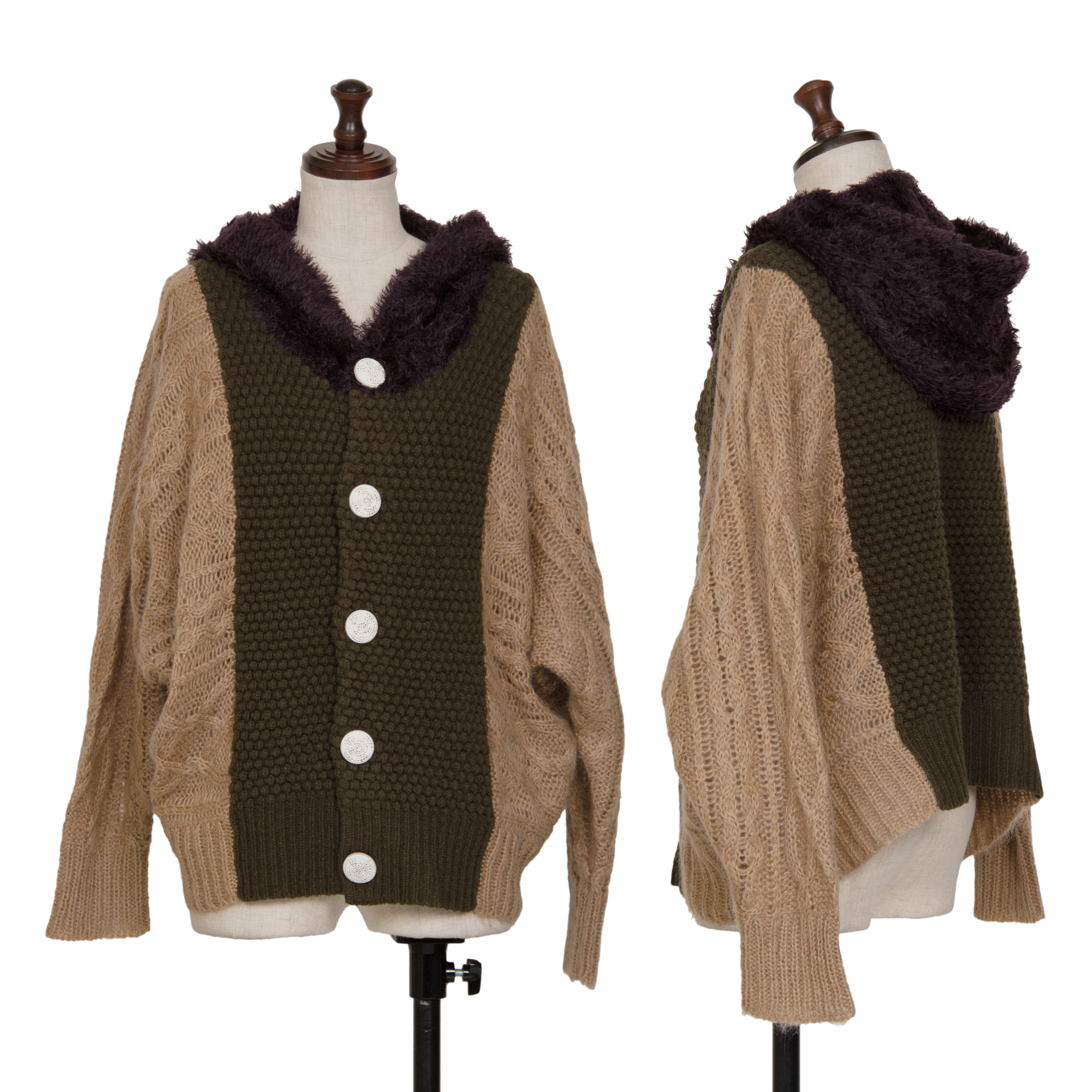 スナオクワハラsunao kuwahara パターン切替フーディーニットカーディガン モカオリーブM