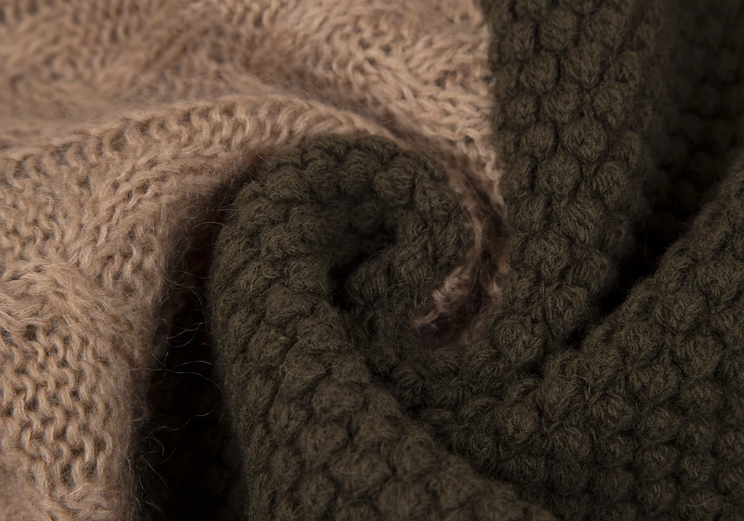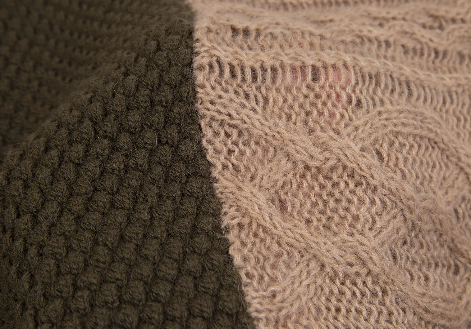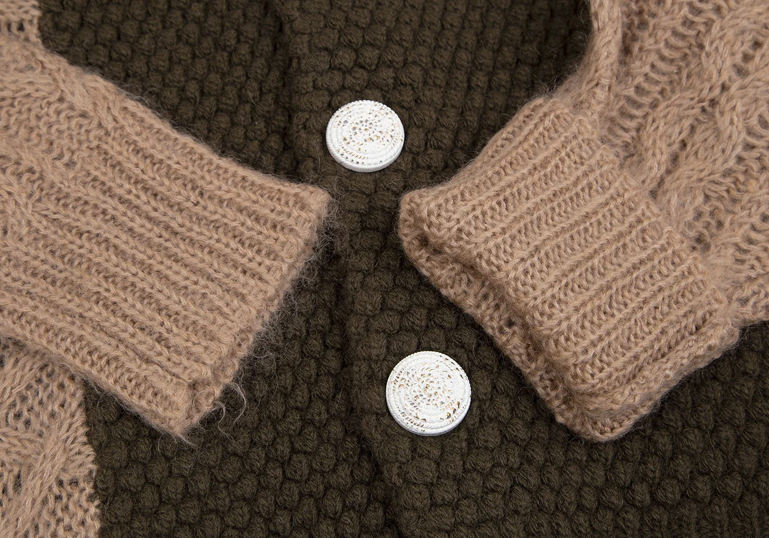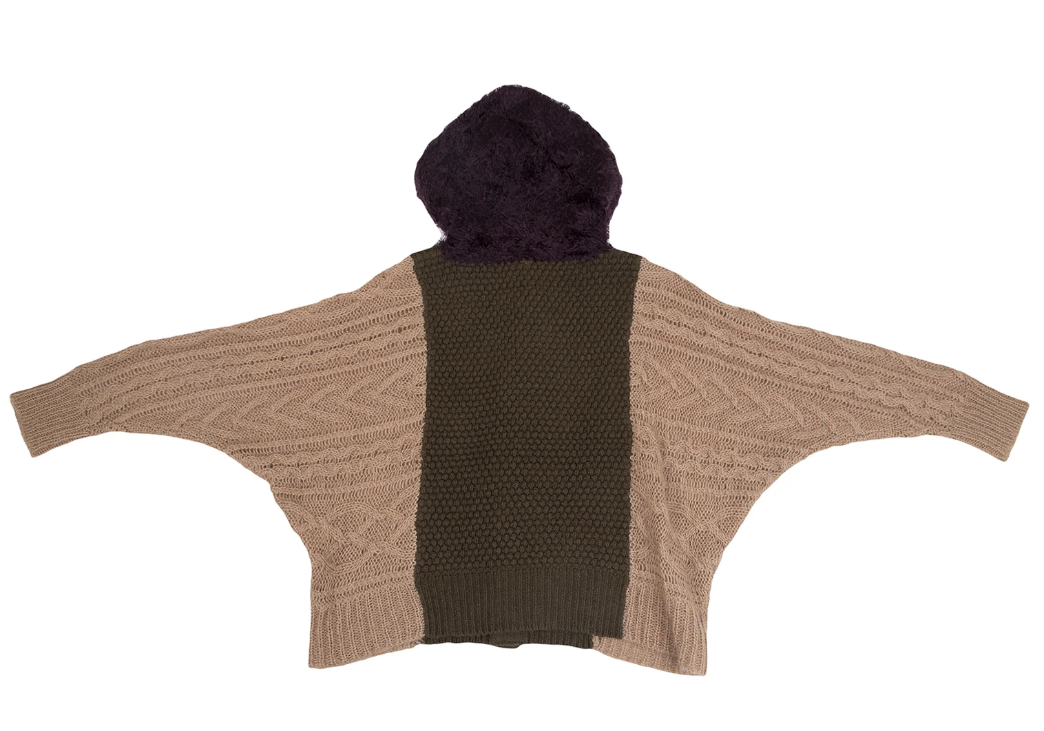 スナオクワハラsunao kuwahara パターン切替フーディーニットカーディガン モカオリーブM