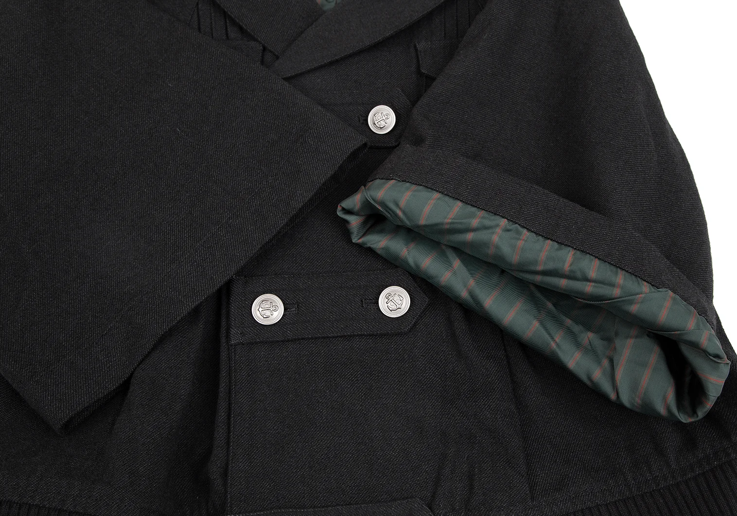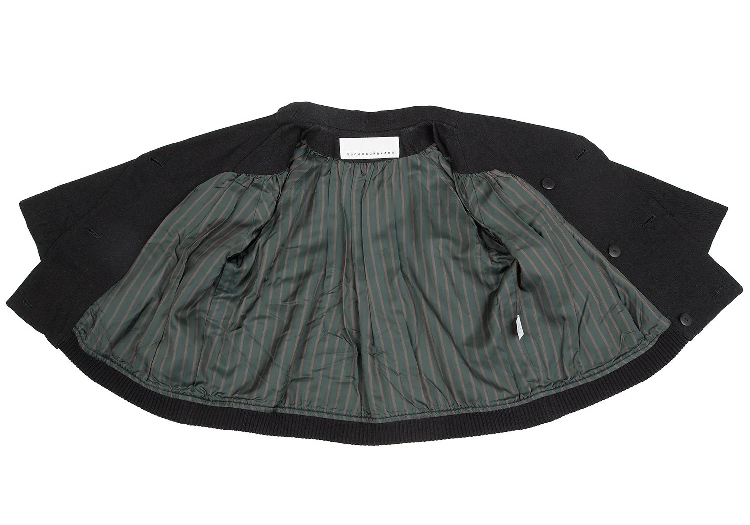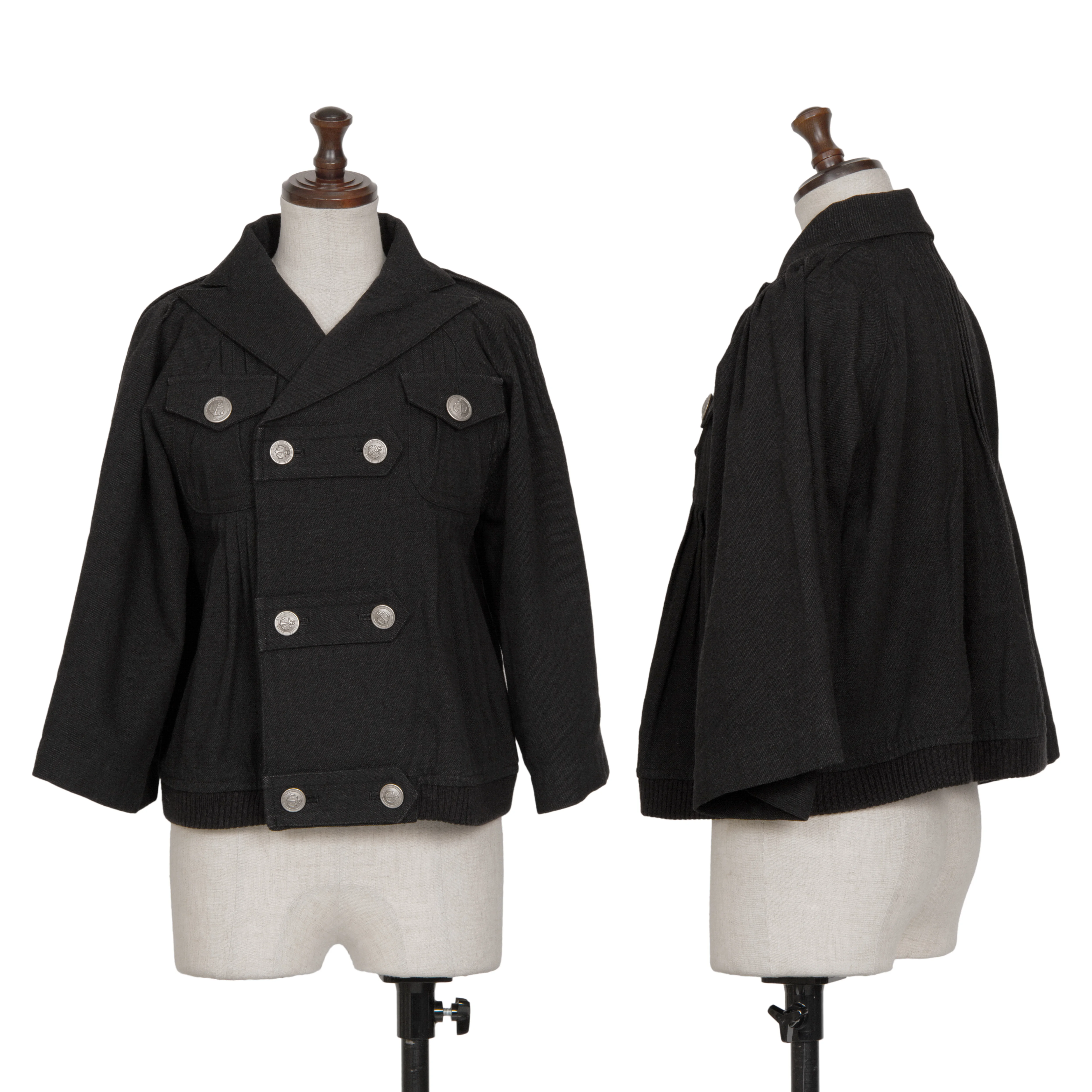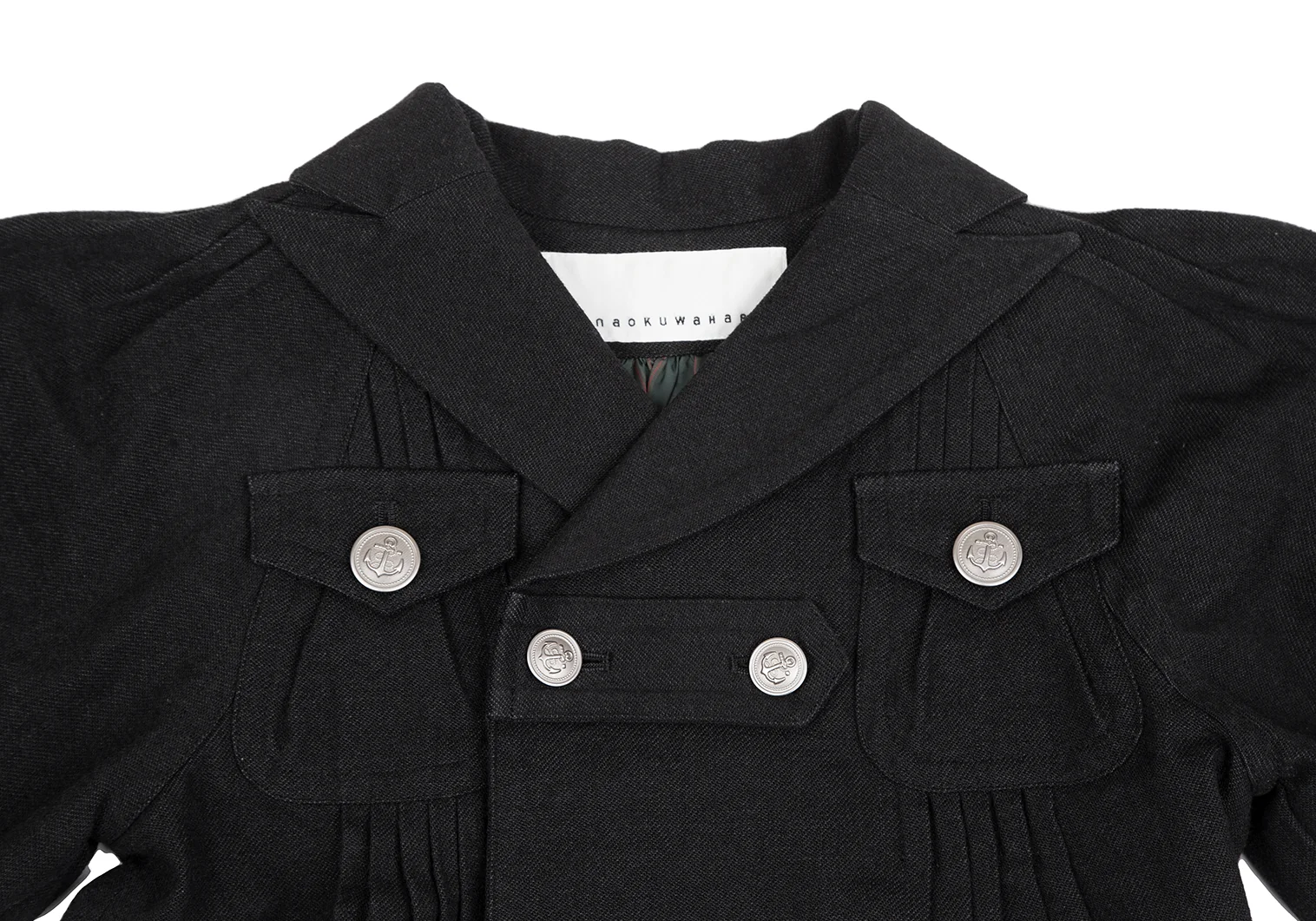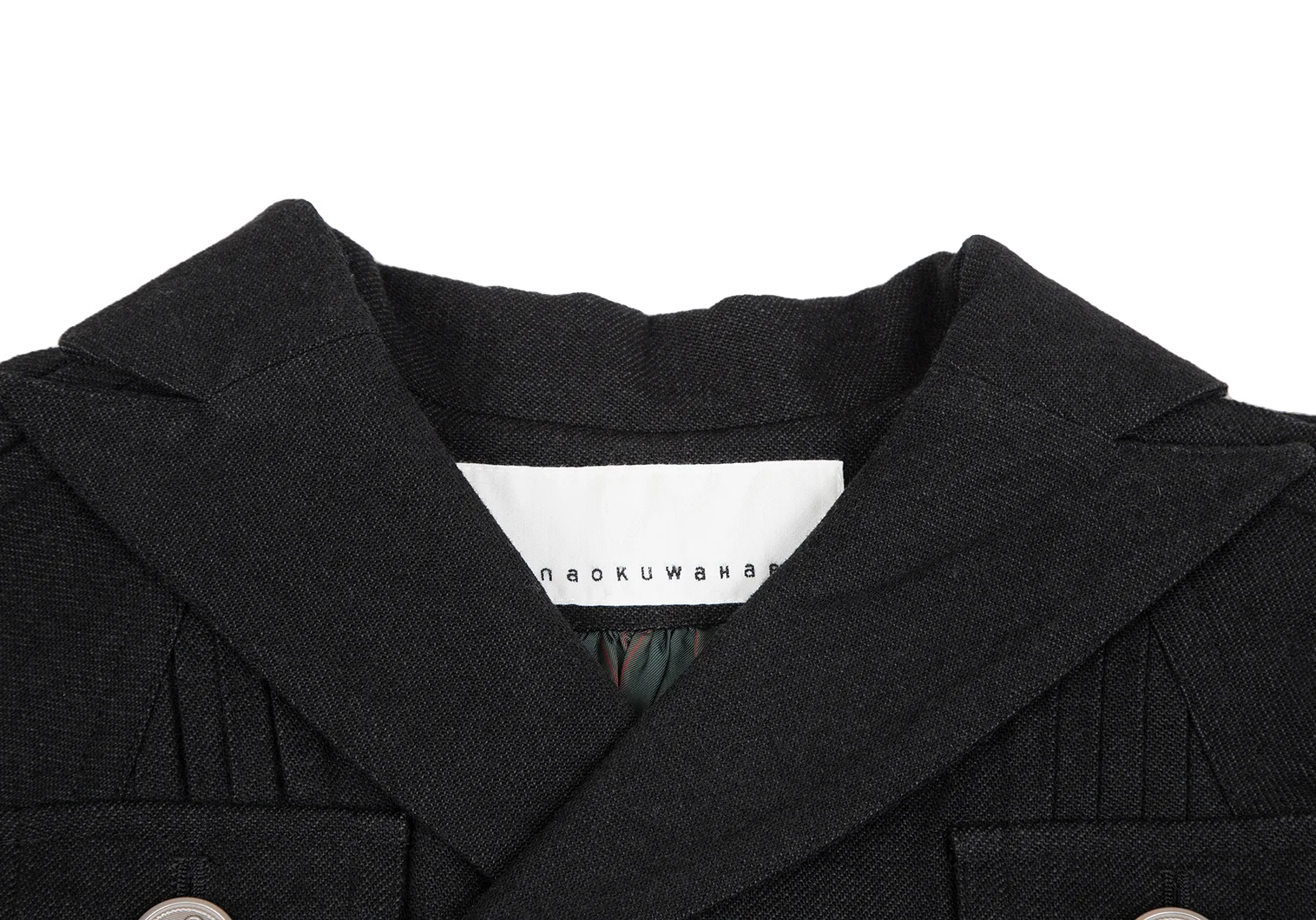 スナオクワハラsunao kuwahara ウール混フロントギャザーデザインワイドスリーブジャケット 黒M