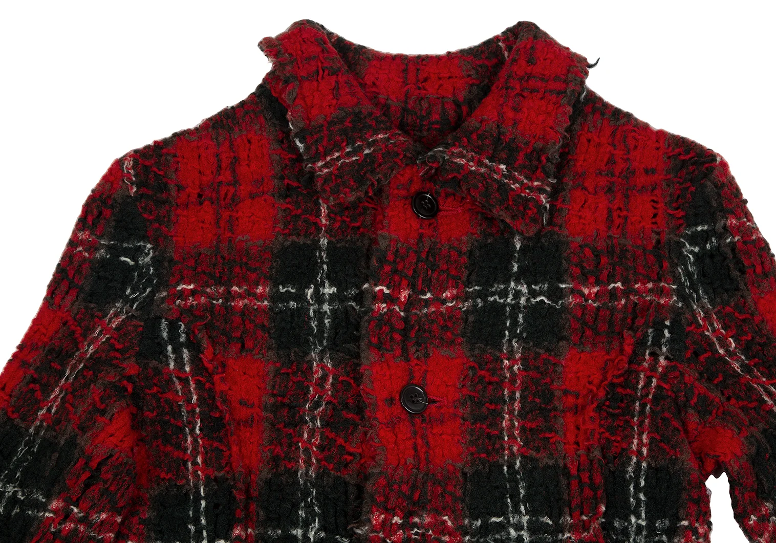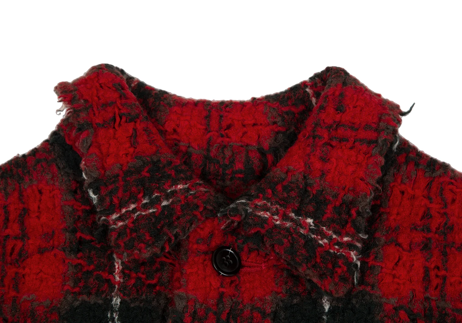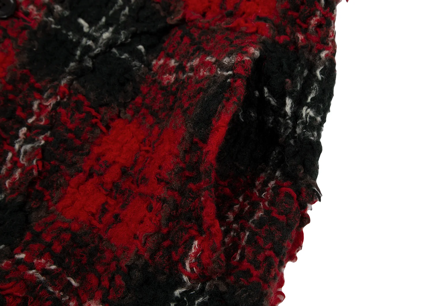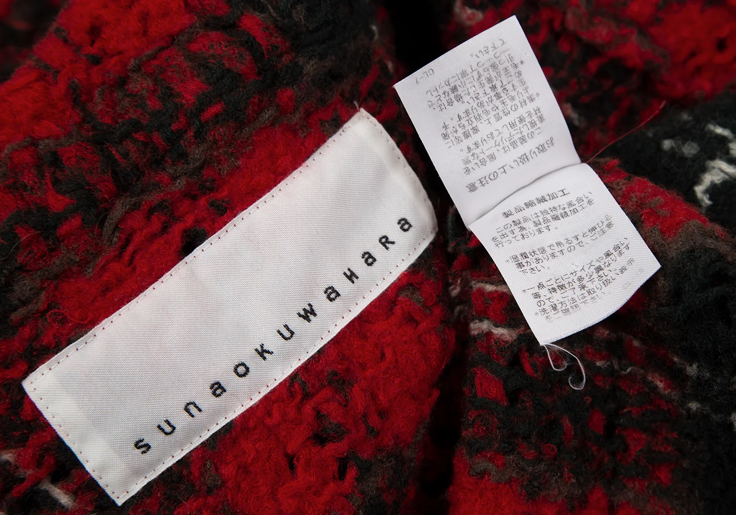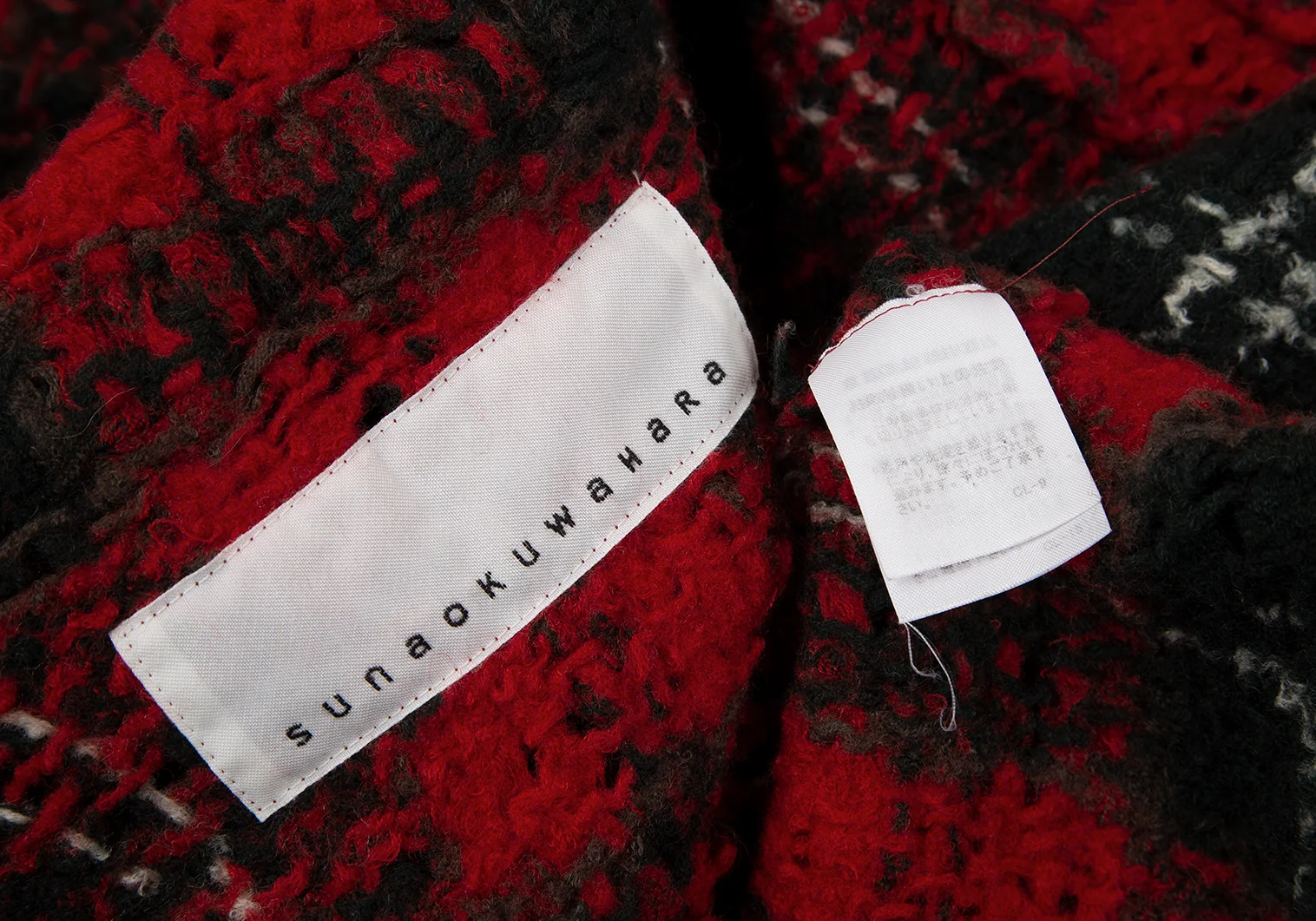 スナオクワハラsunao kuwahara 縮絨チェックニットジャケット 赤緑M位