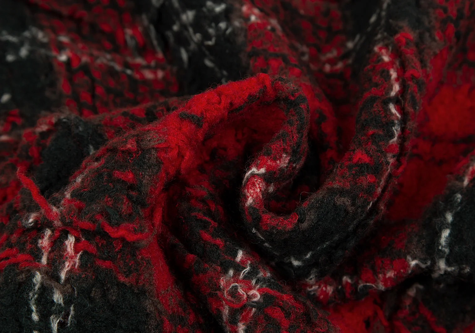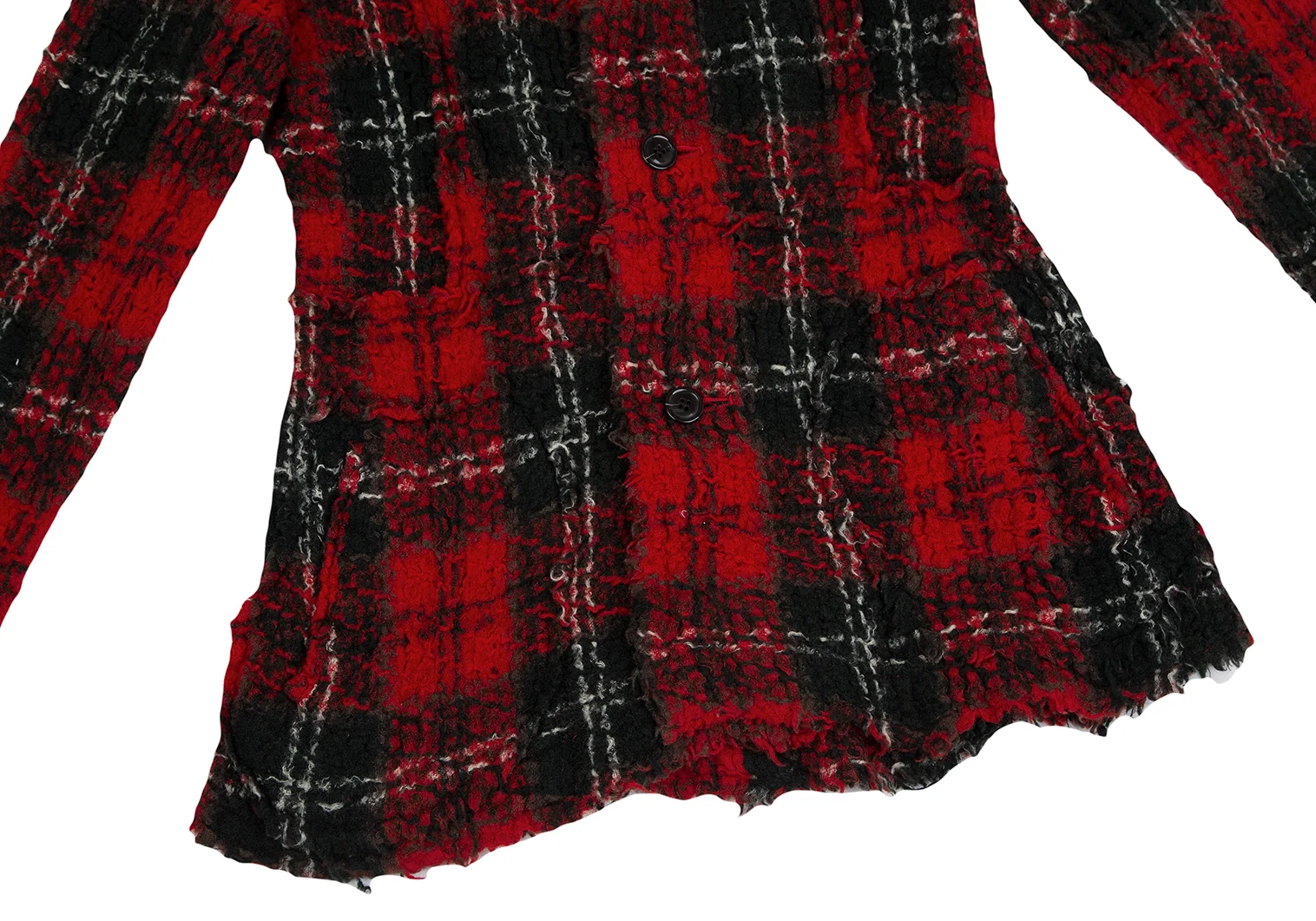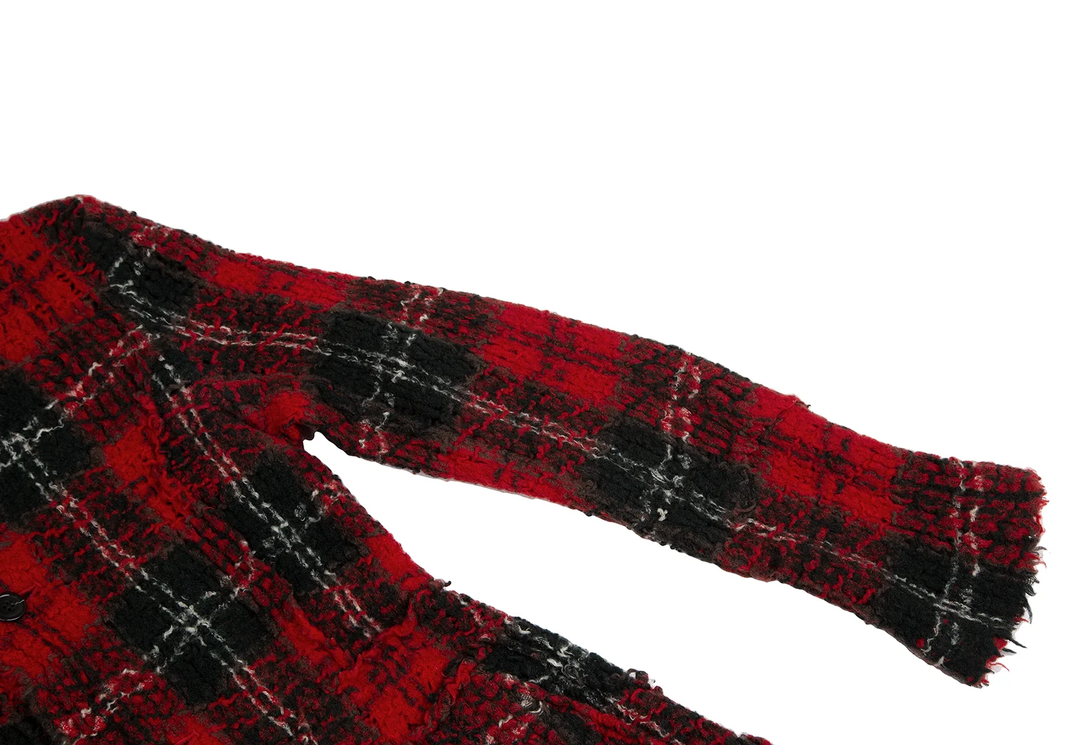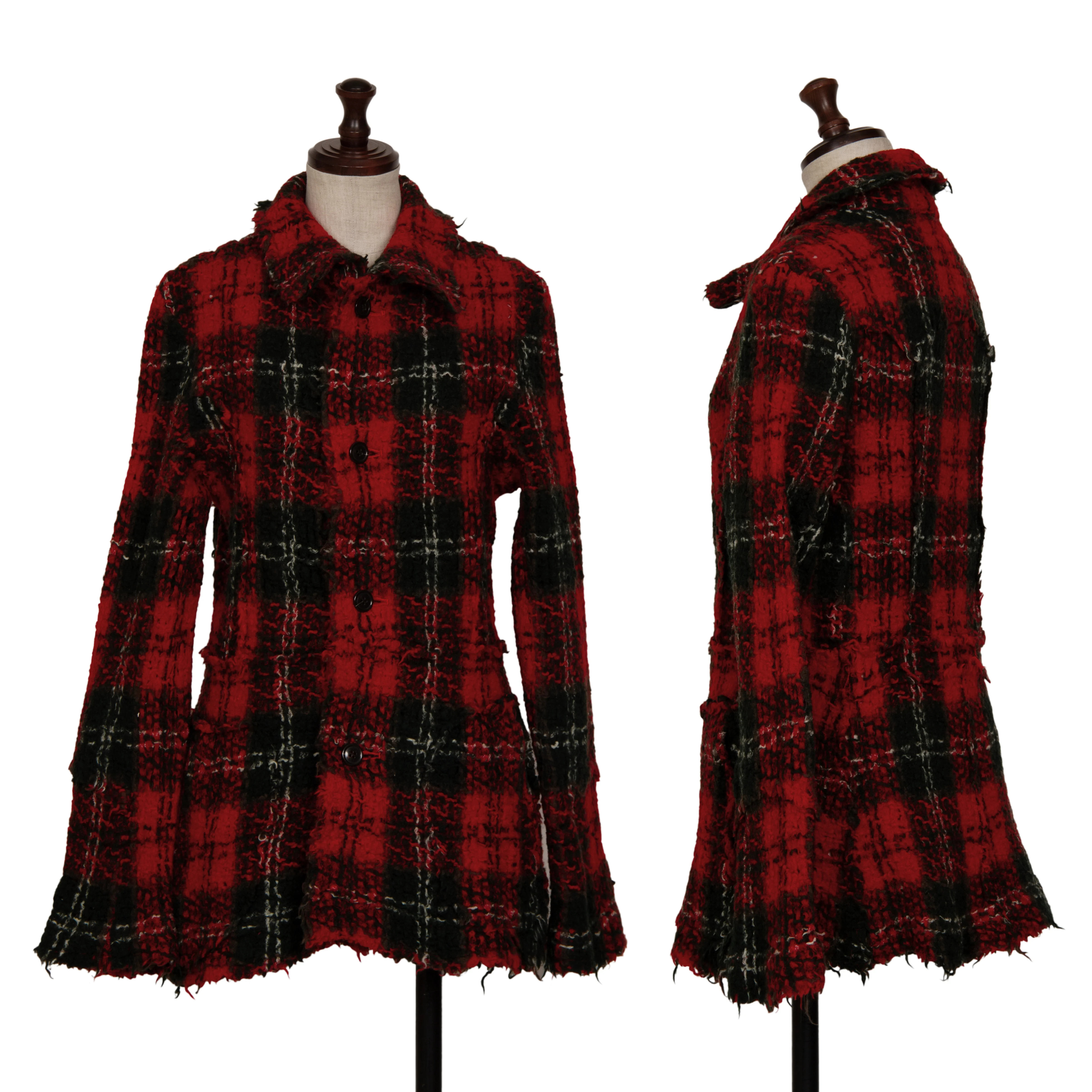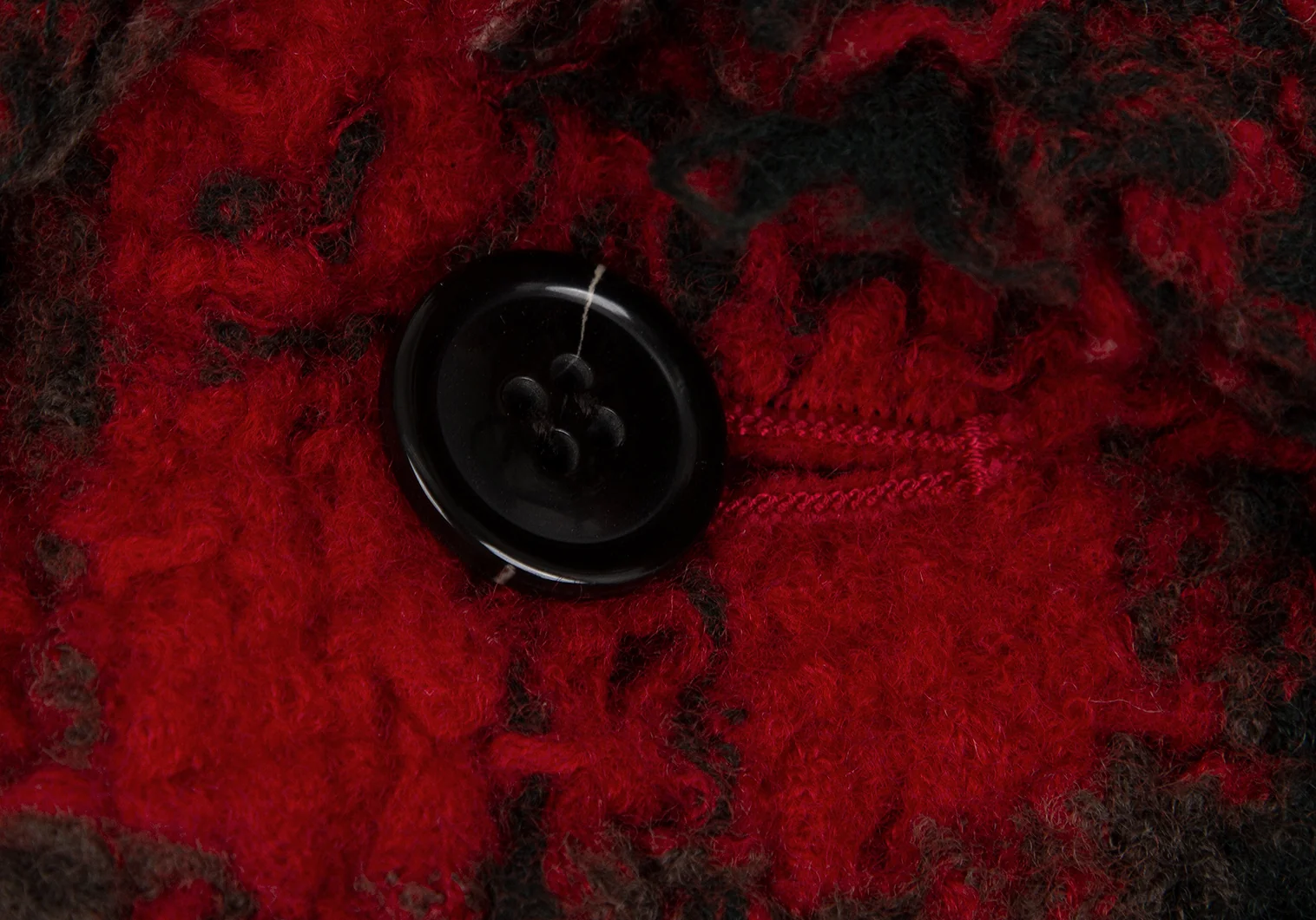 スナオクワハラsunao kuwahara 縮絨チェックニットジャケット 赤緑M位