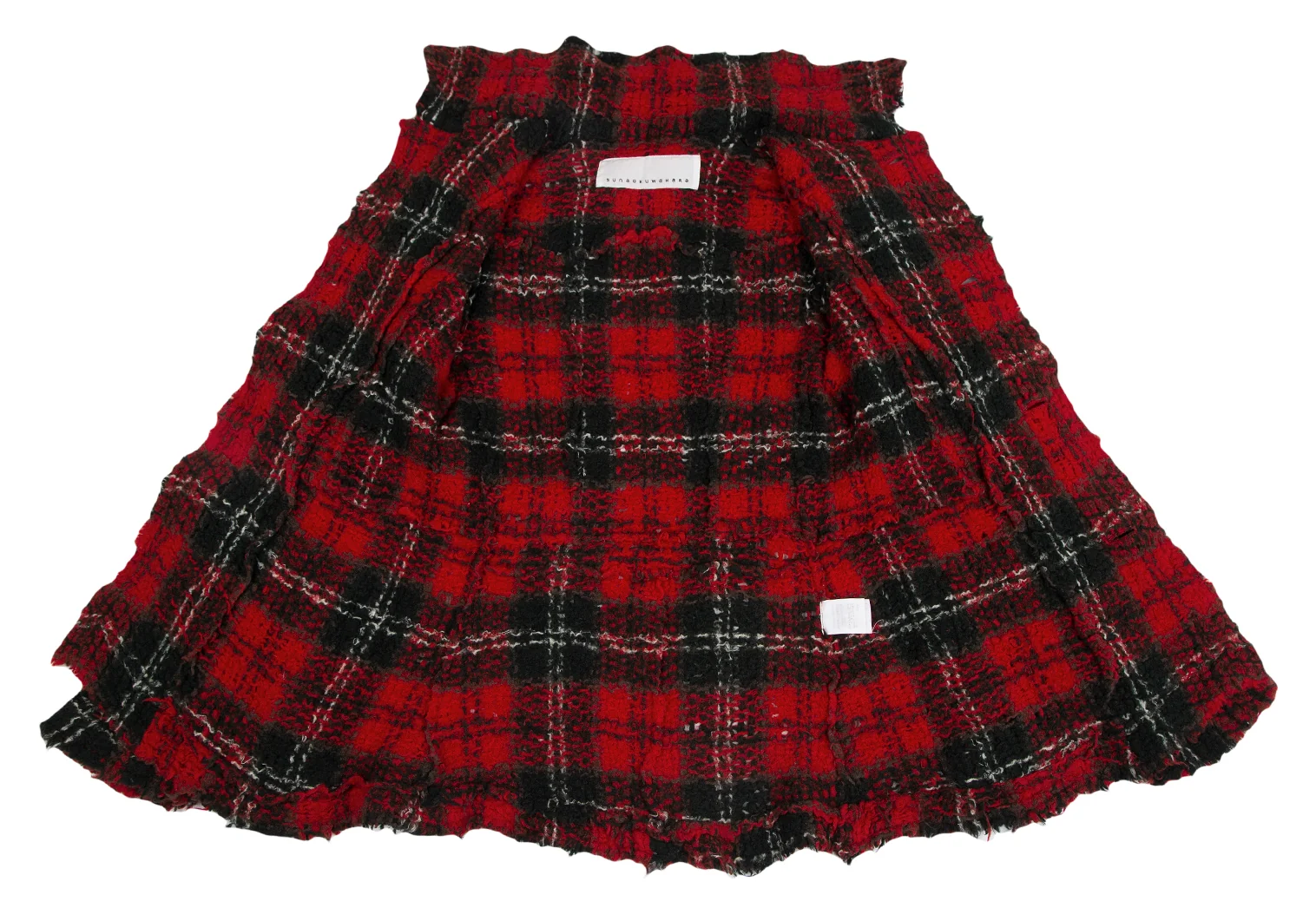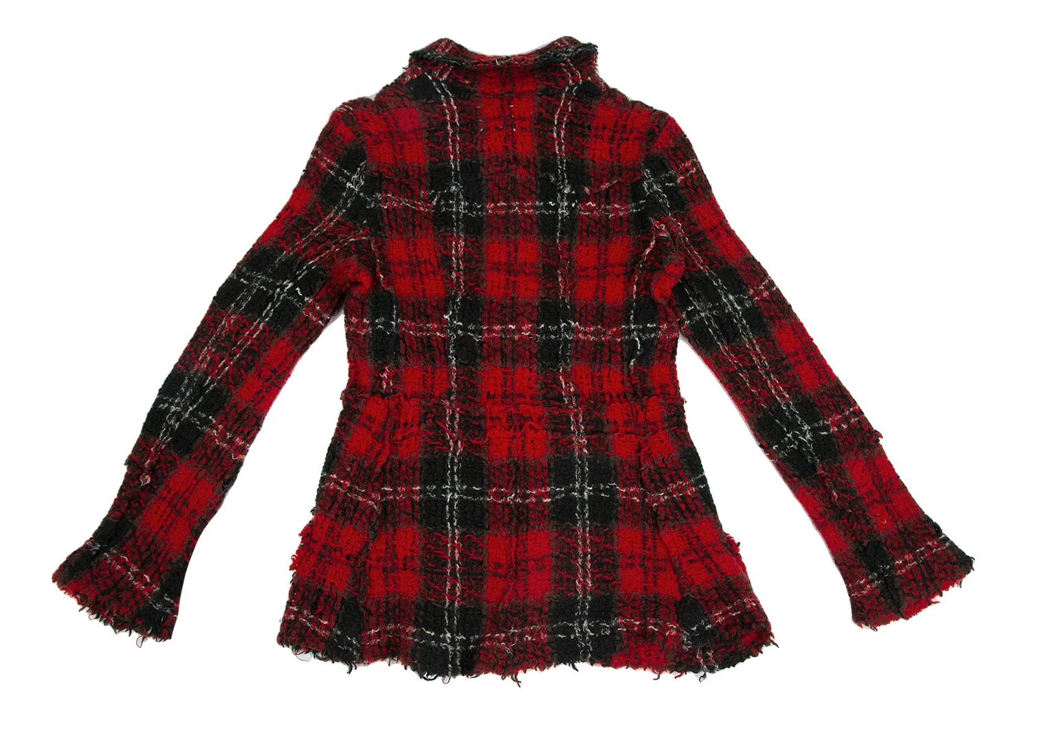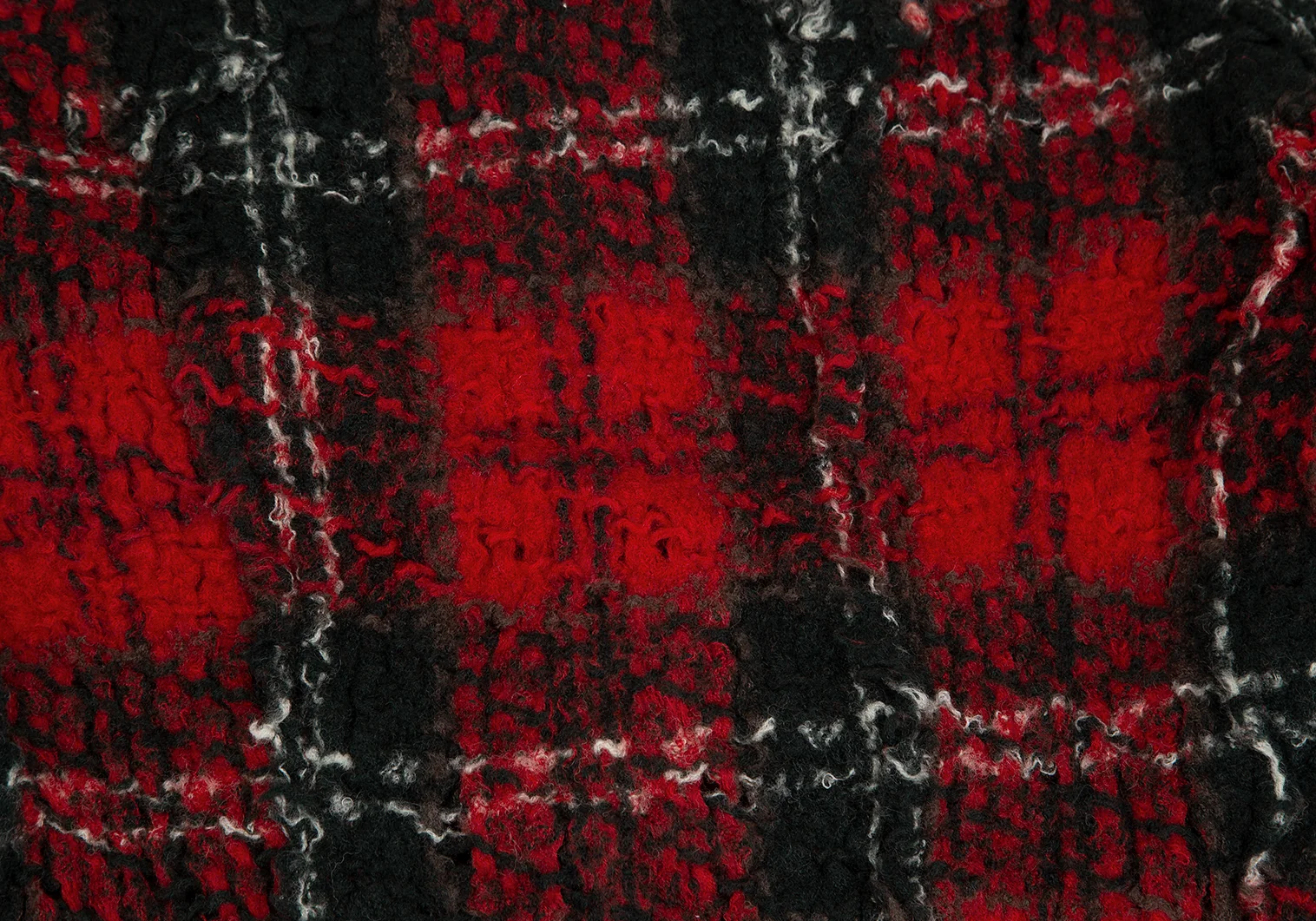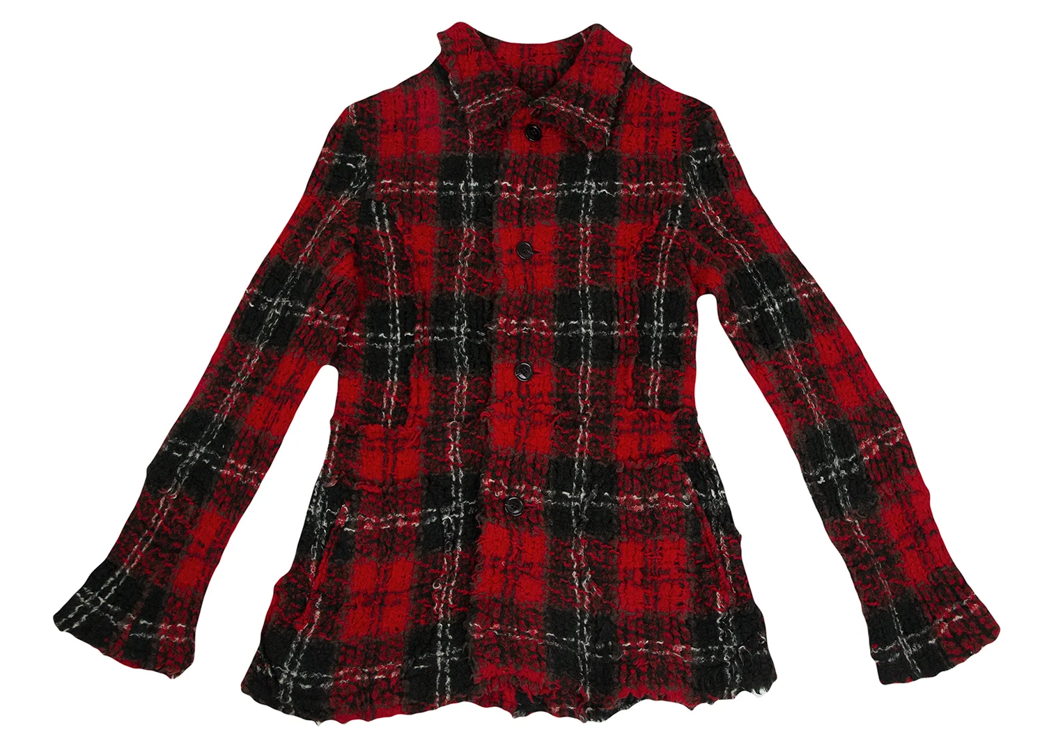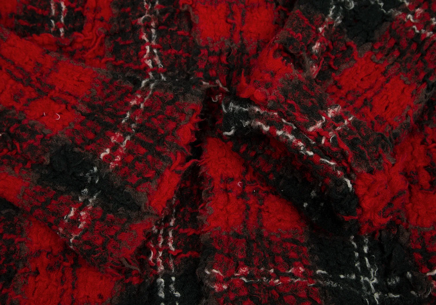 スナオクワハラsunao kuwahara 縮絨チェックニットジャケット 赤緑M位