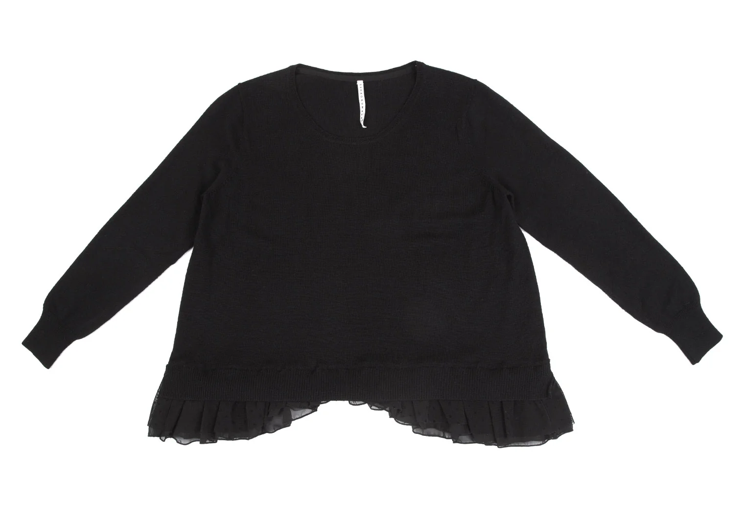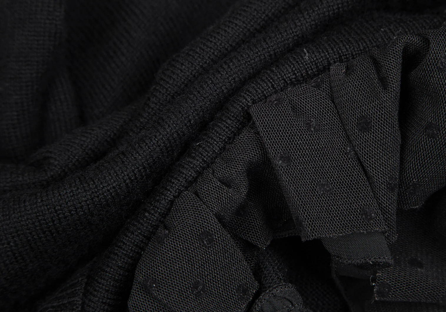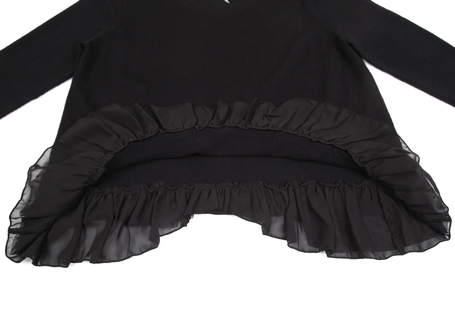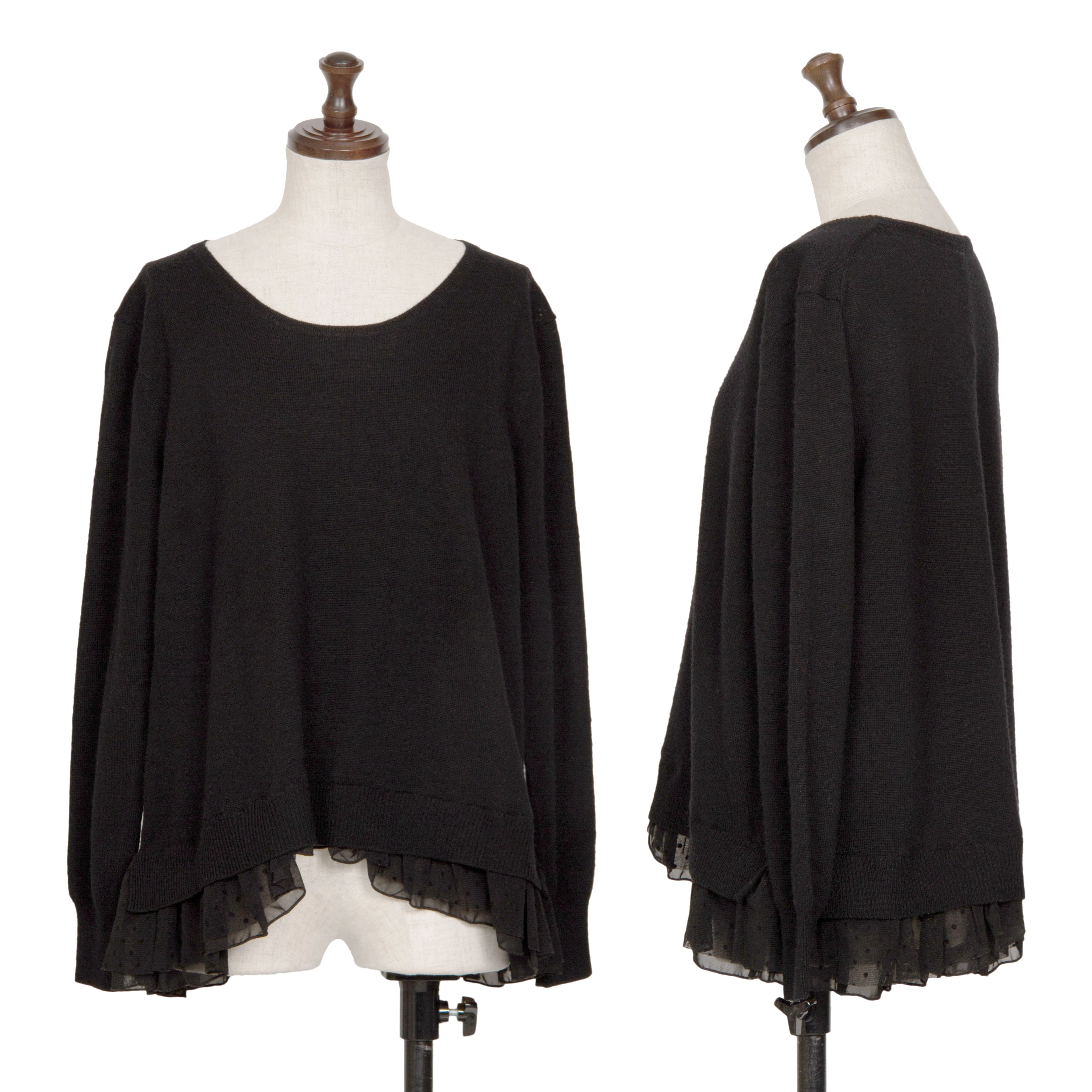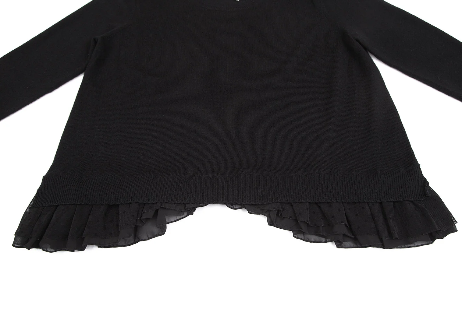 スナオクワハラsunao kuwahara ウール裾ドットフリルチュールレイヤードニットセーター 黒M