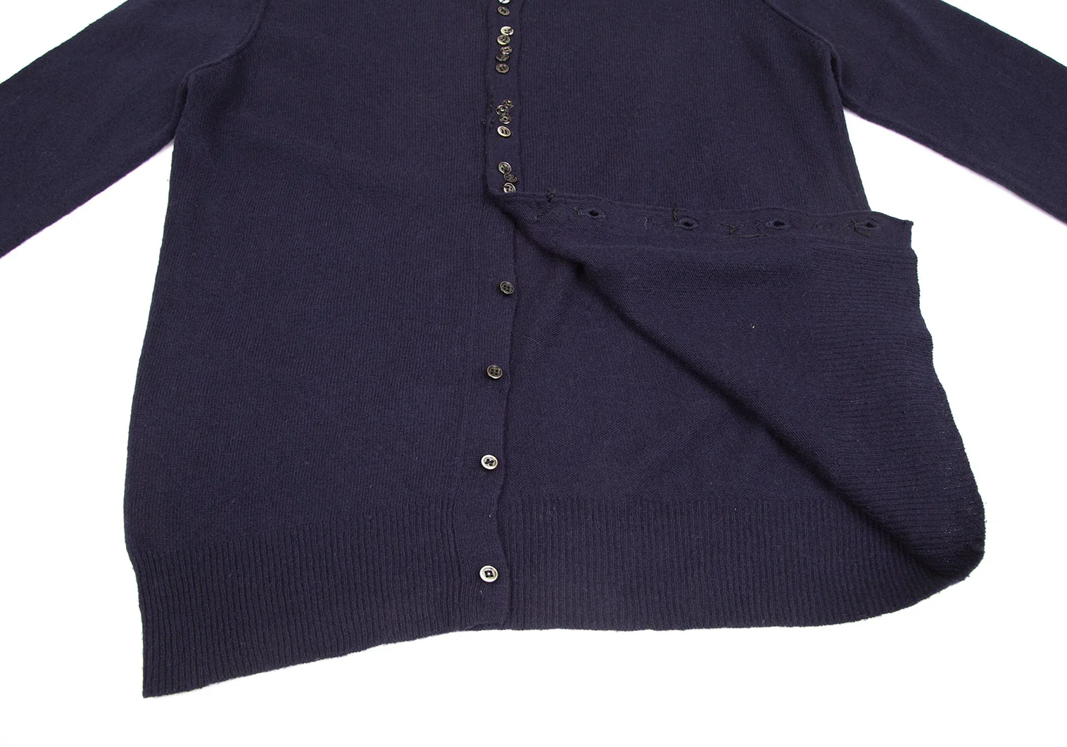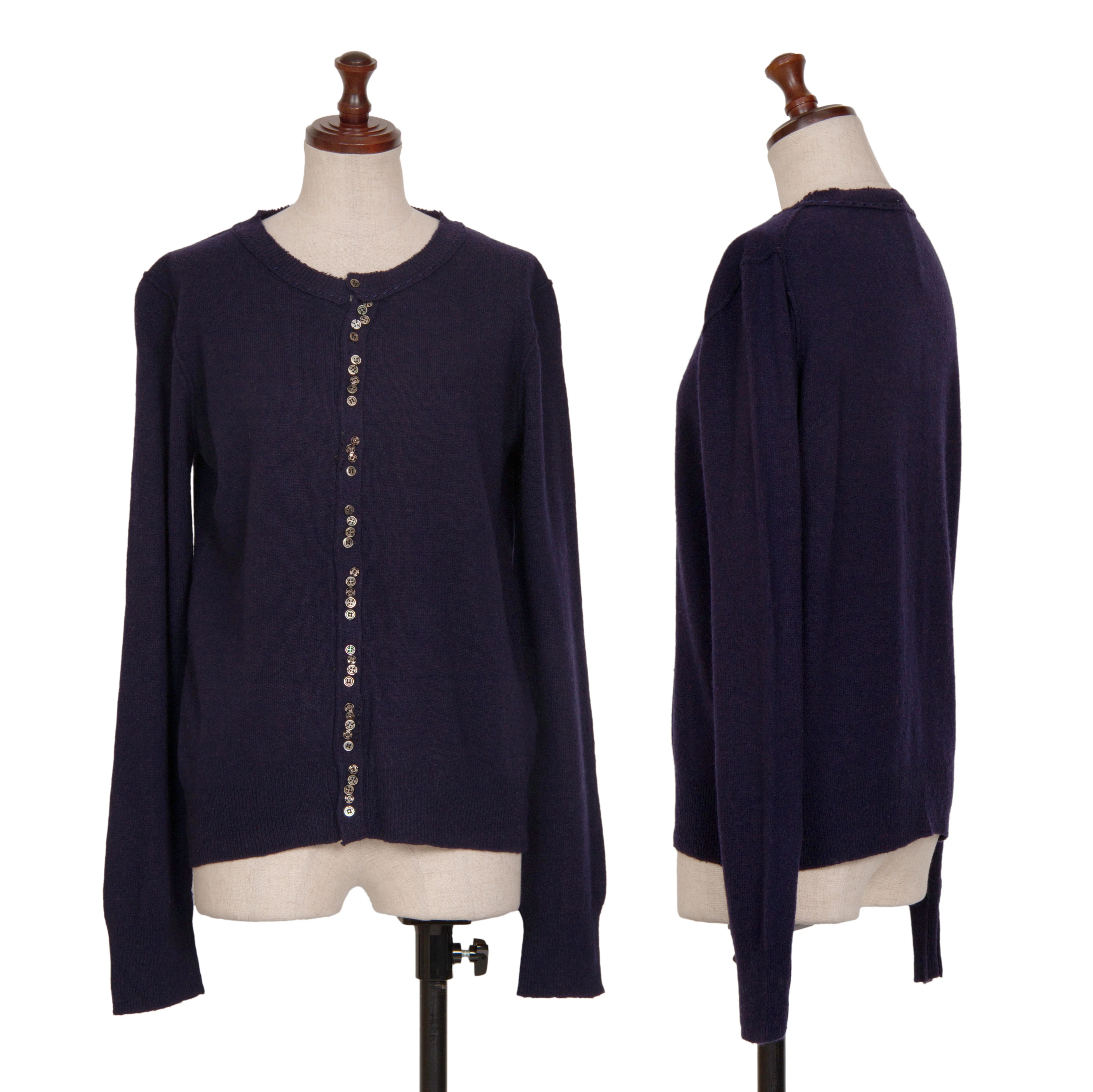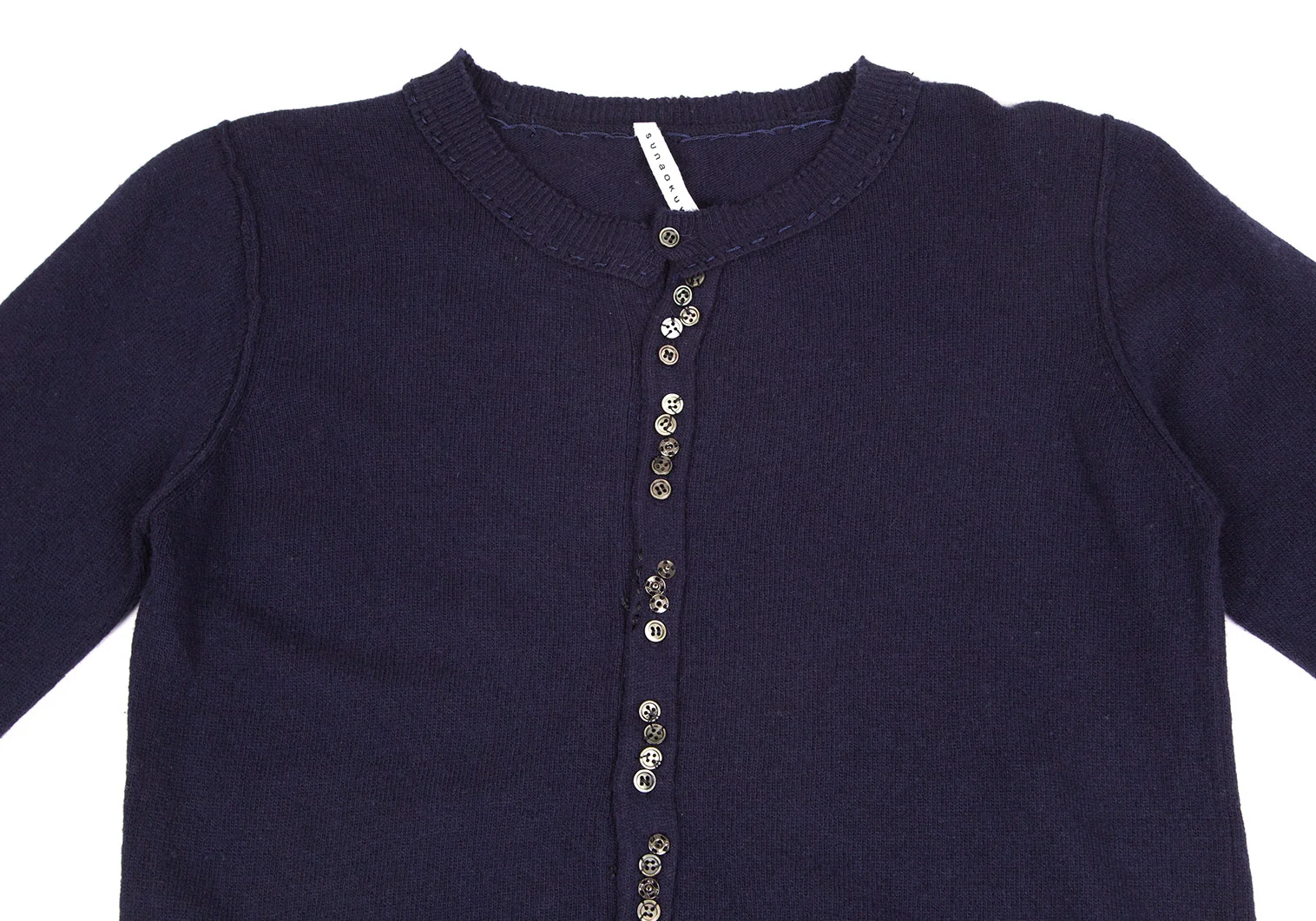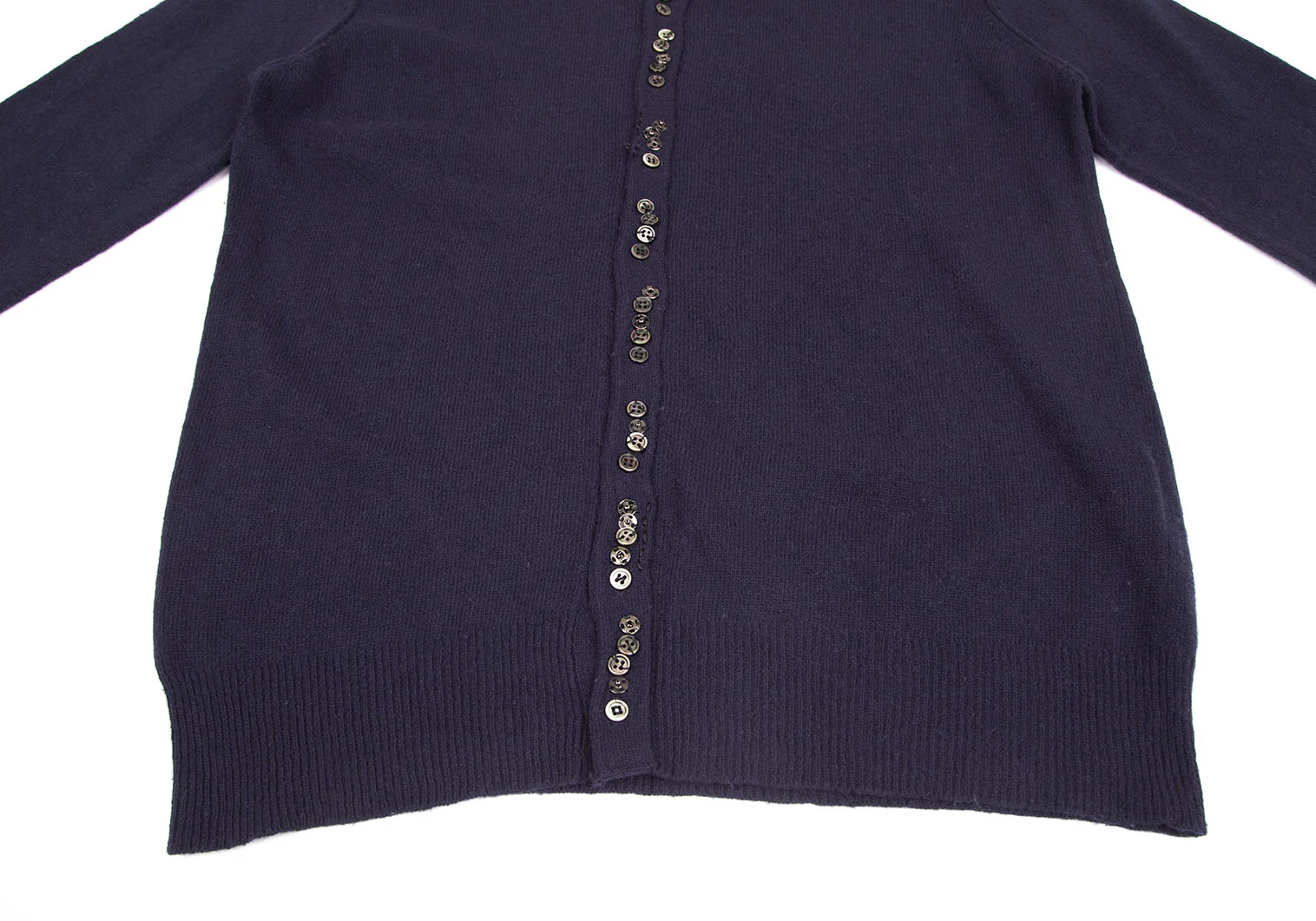 スナオクワハラsunao kuwahara カシミヤ混紡メニーボタンラウンドカラーニットカーディガン 紺M