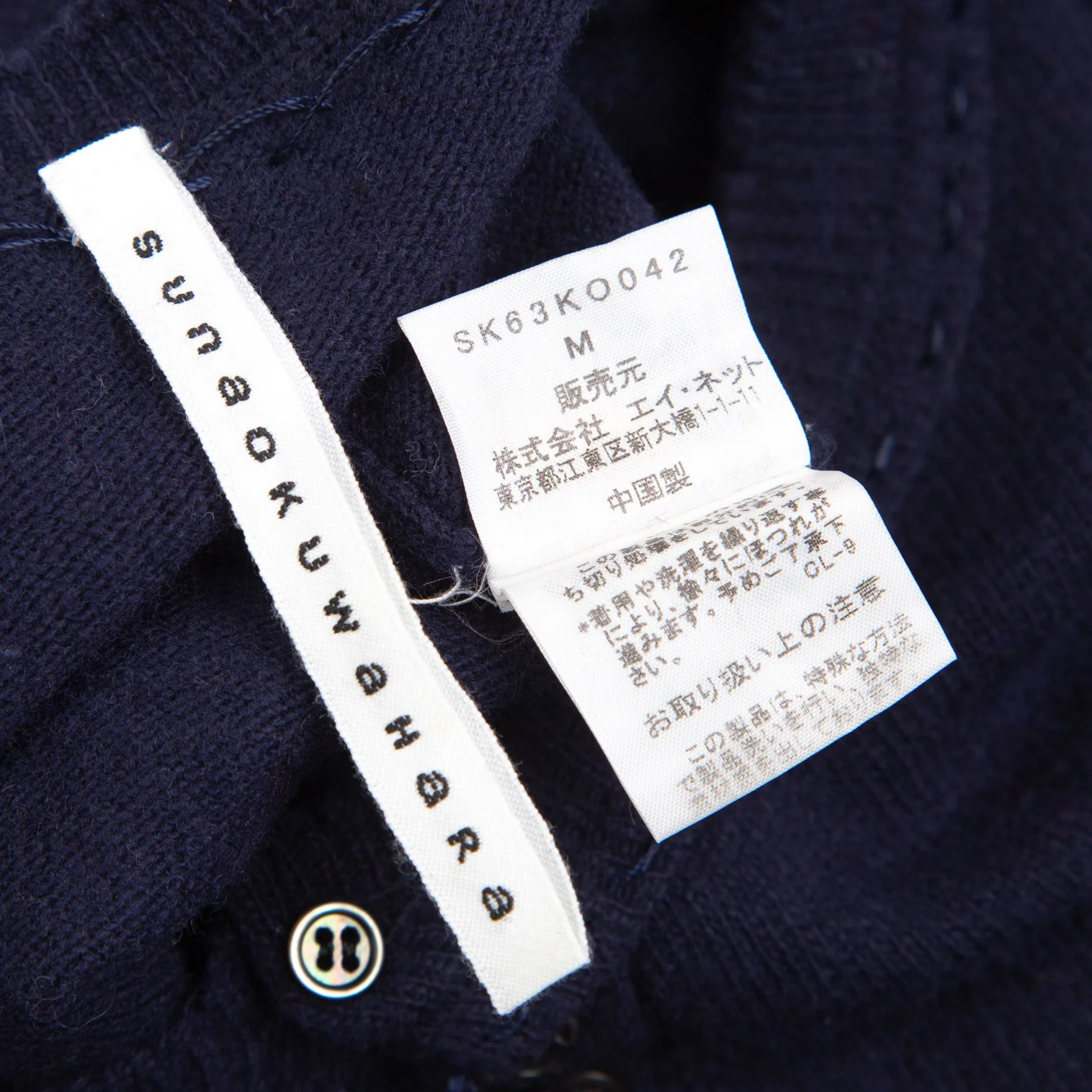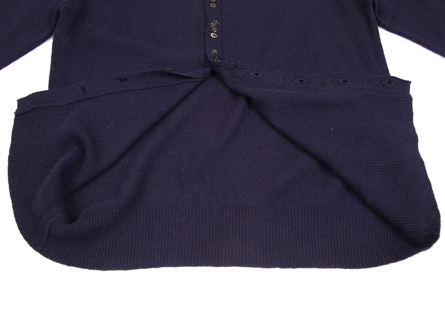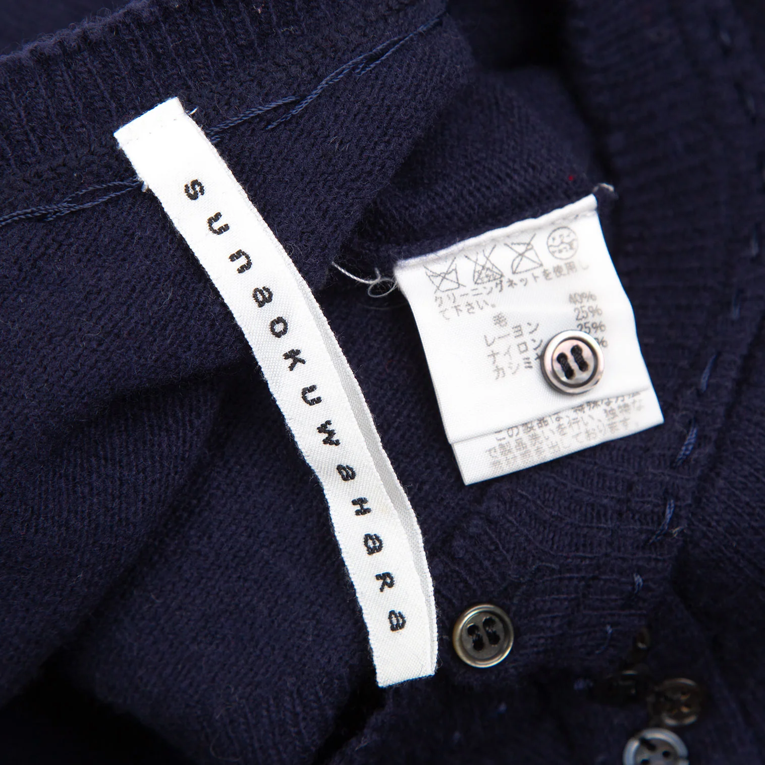 スナオクワハラsunao kuwahara カシミヤ混紡メニーボタンラウンドカラーニットカーディガン 紺M