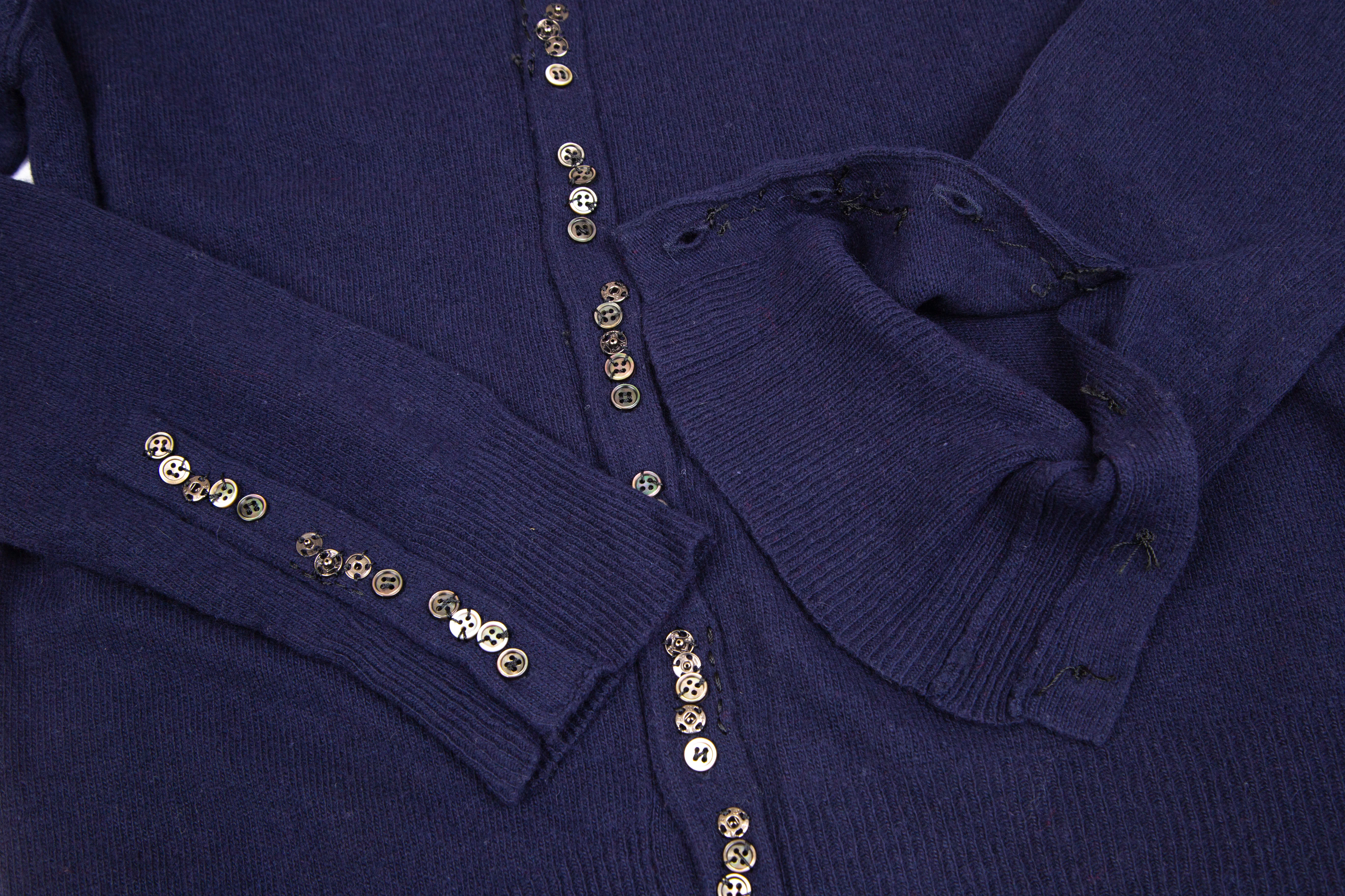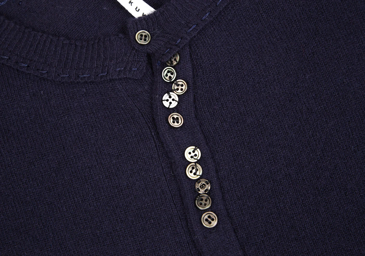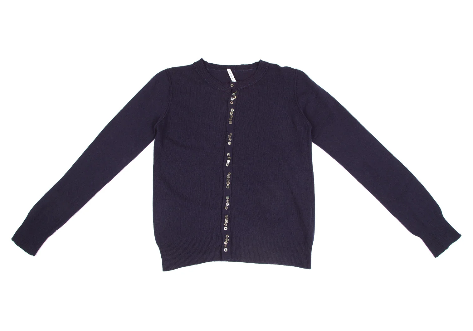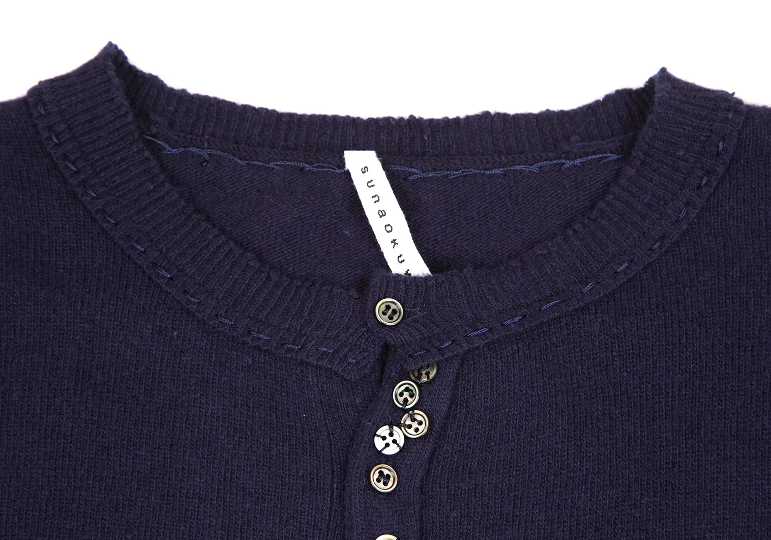 スナオクワハラsunao kuwahara カシミヤ混紡メニーボタンラウンドカラーニットカーディガン 紺M