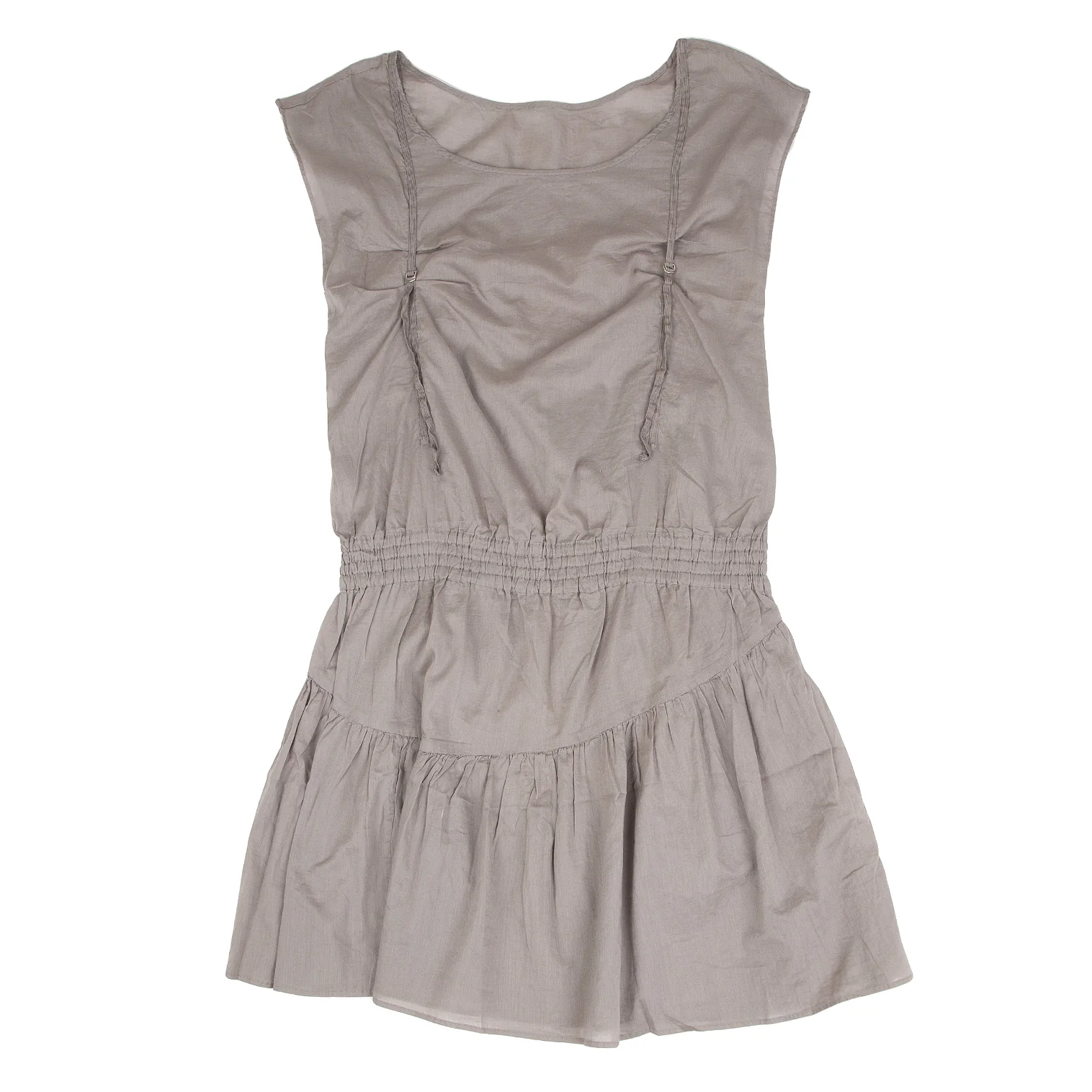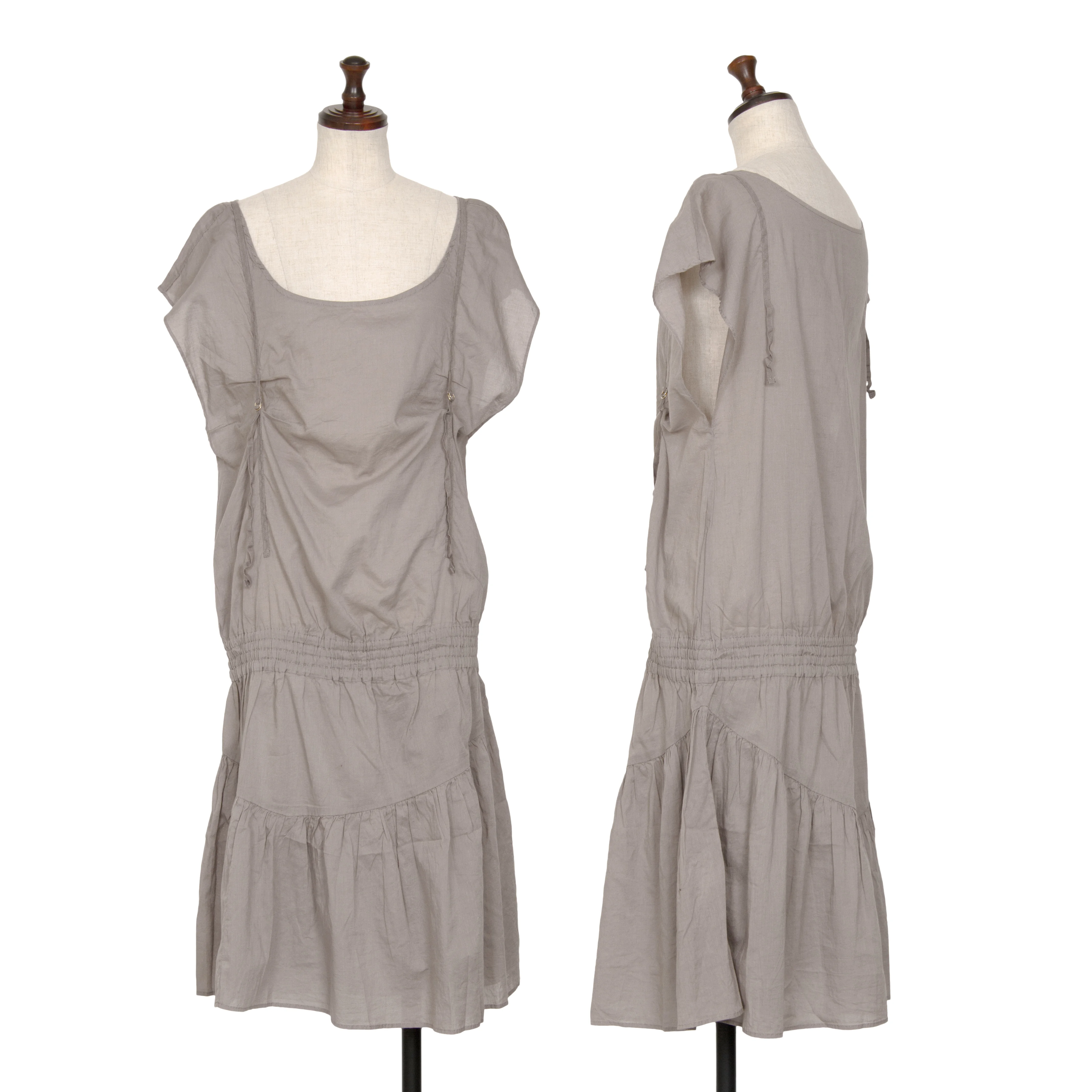 スナオクワハラsunao kuwahara コットン製品染めフロントベルトデザインノースリーブワンピース グレーM