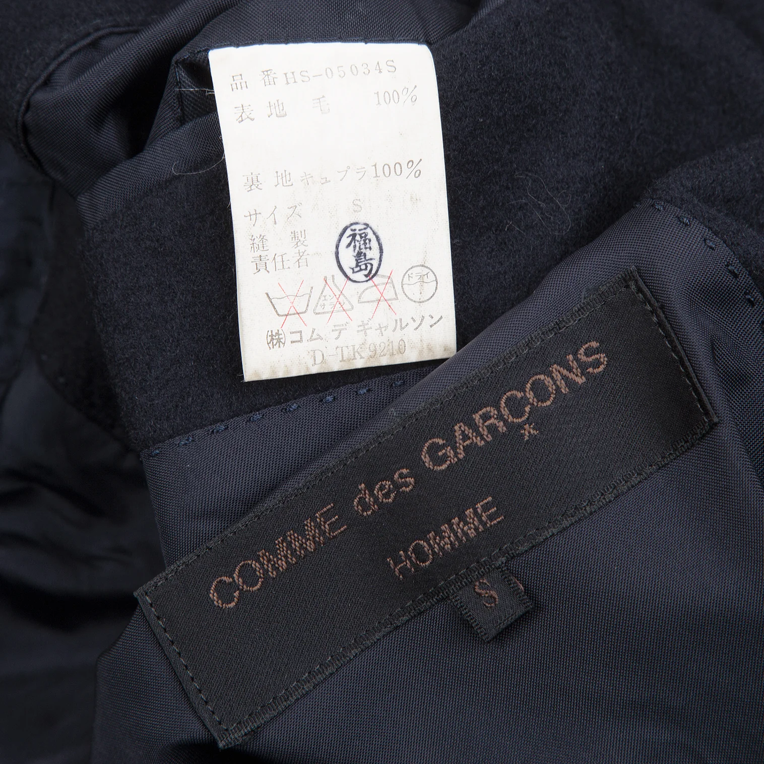 コムデギャルソンオムCOMME des GARCONS HOMME ウール2Bジャケット 紺S