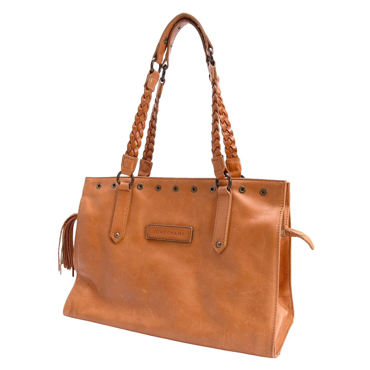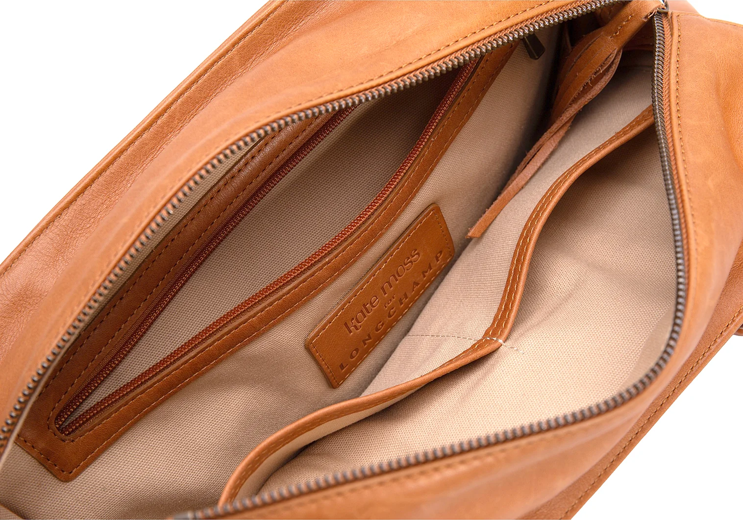 ケイトモスフォーロンシャンkate moss for LONGCHAMP レザーロゴプレートハンドバッグ キャメル