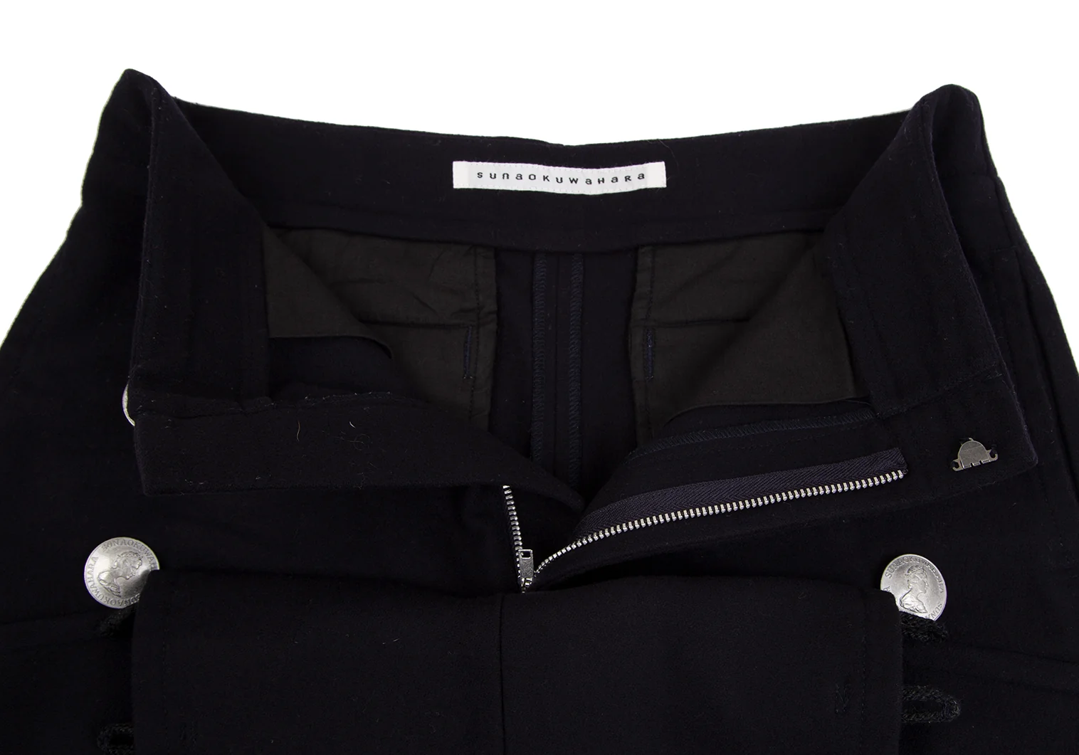 スナオクワハラsunao kuwahara ウールメタルボタンショートパンツ 紺S