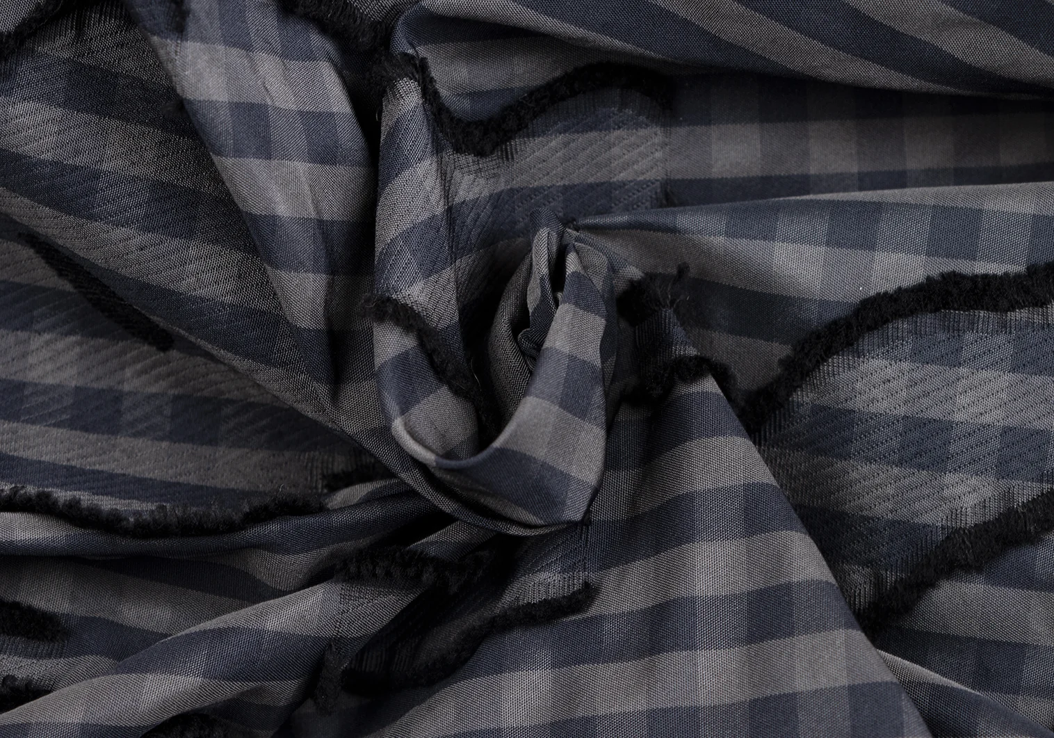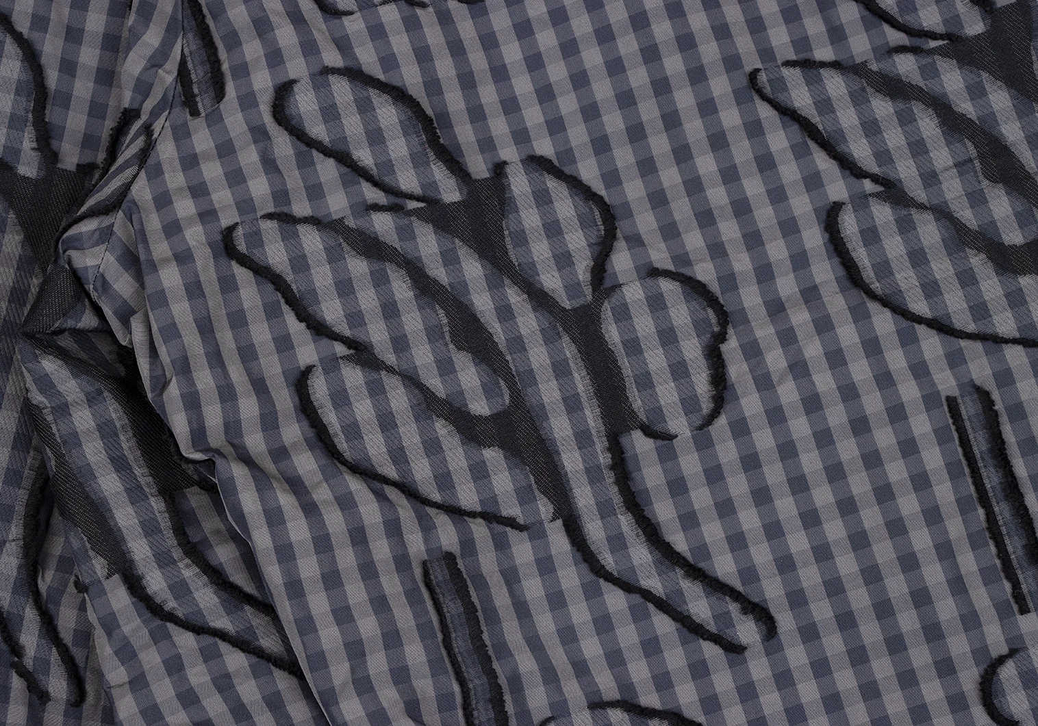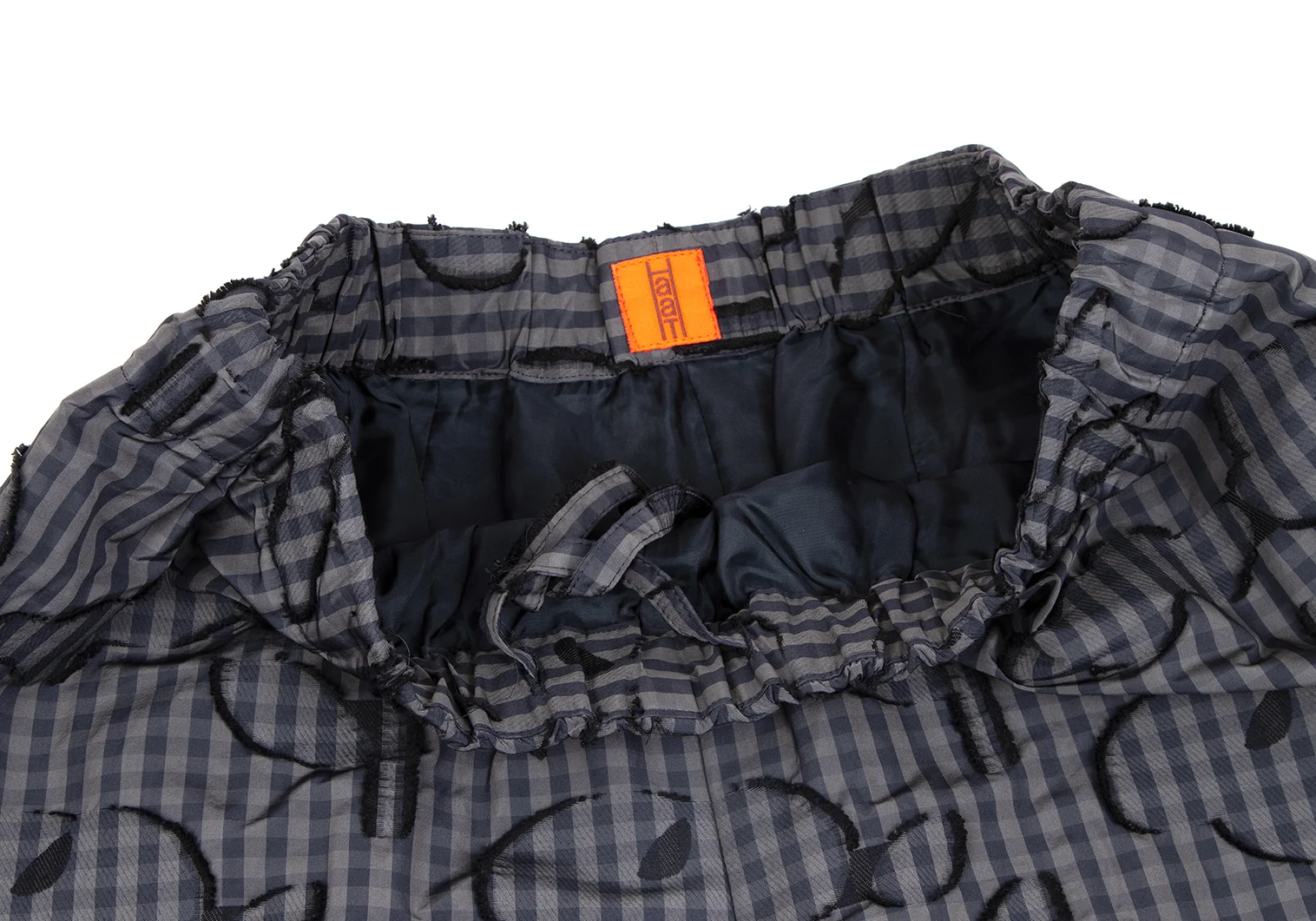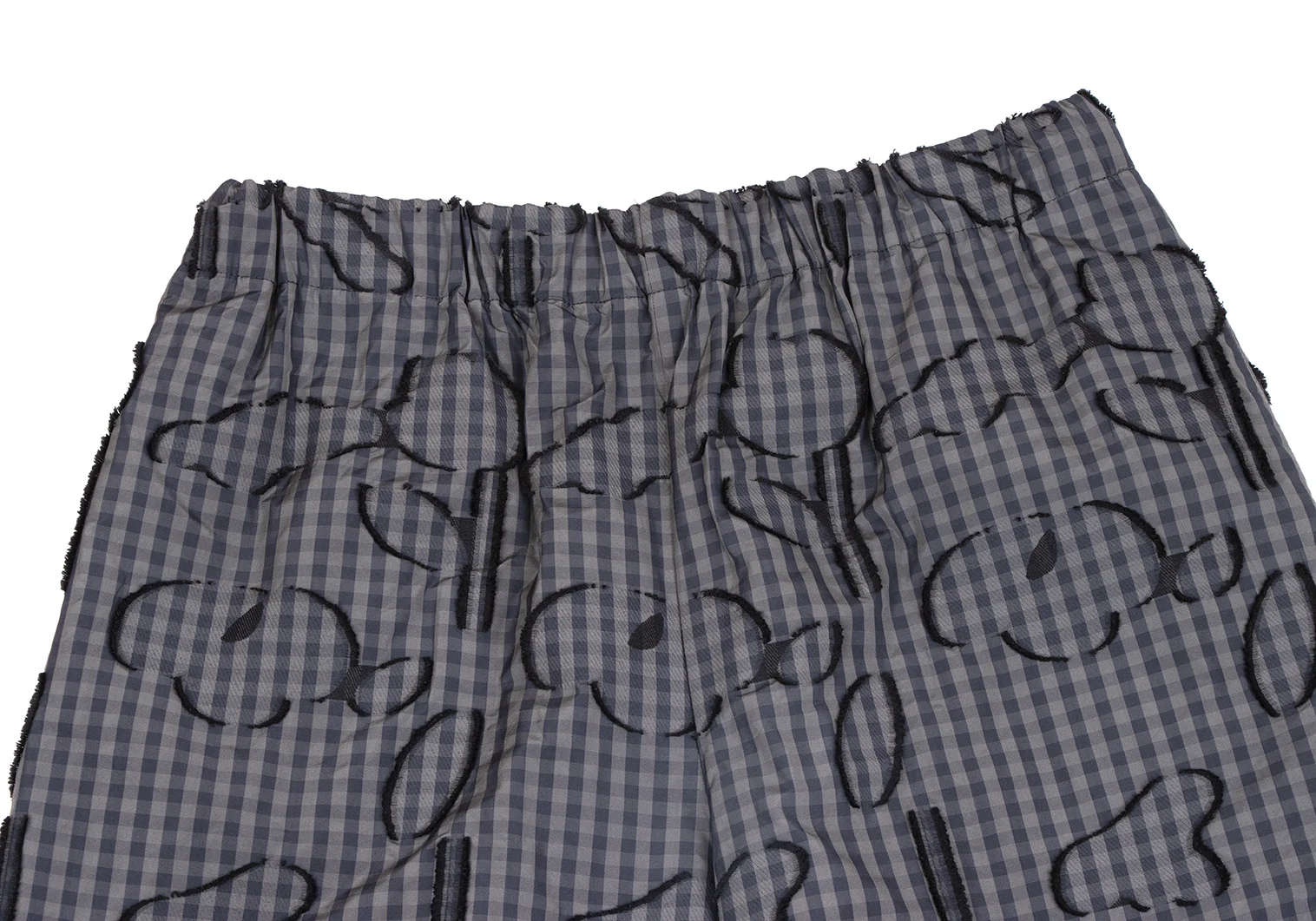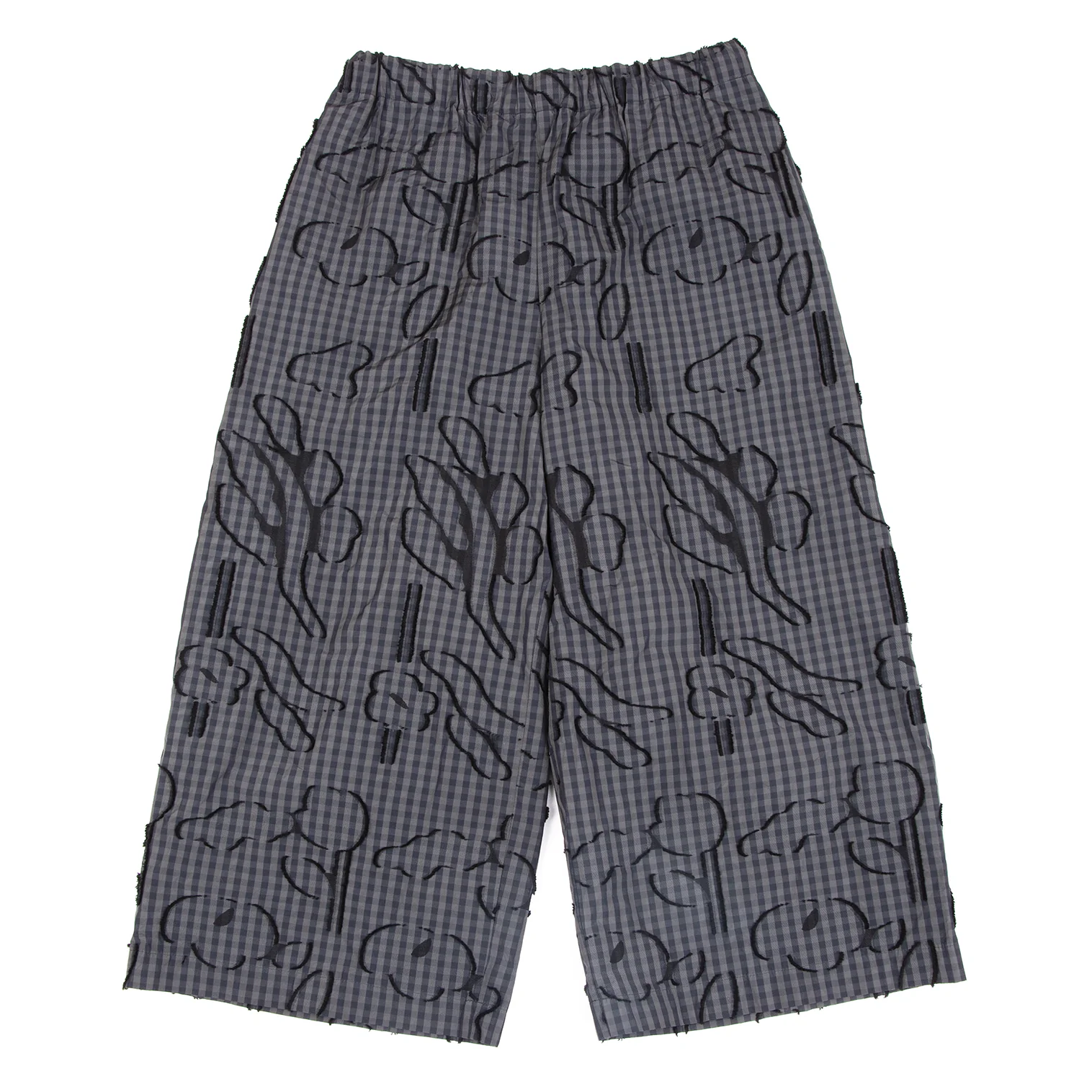 イッセイミヤケ ハートISSEY MIYAKE HaaT コットンポリ総柄フリンジ刺繍ギンガムチェックワイドパンツ カーキ紺黒2