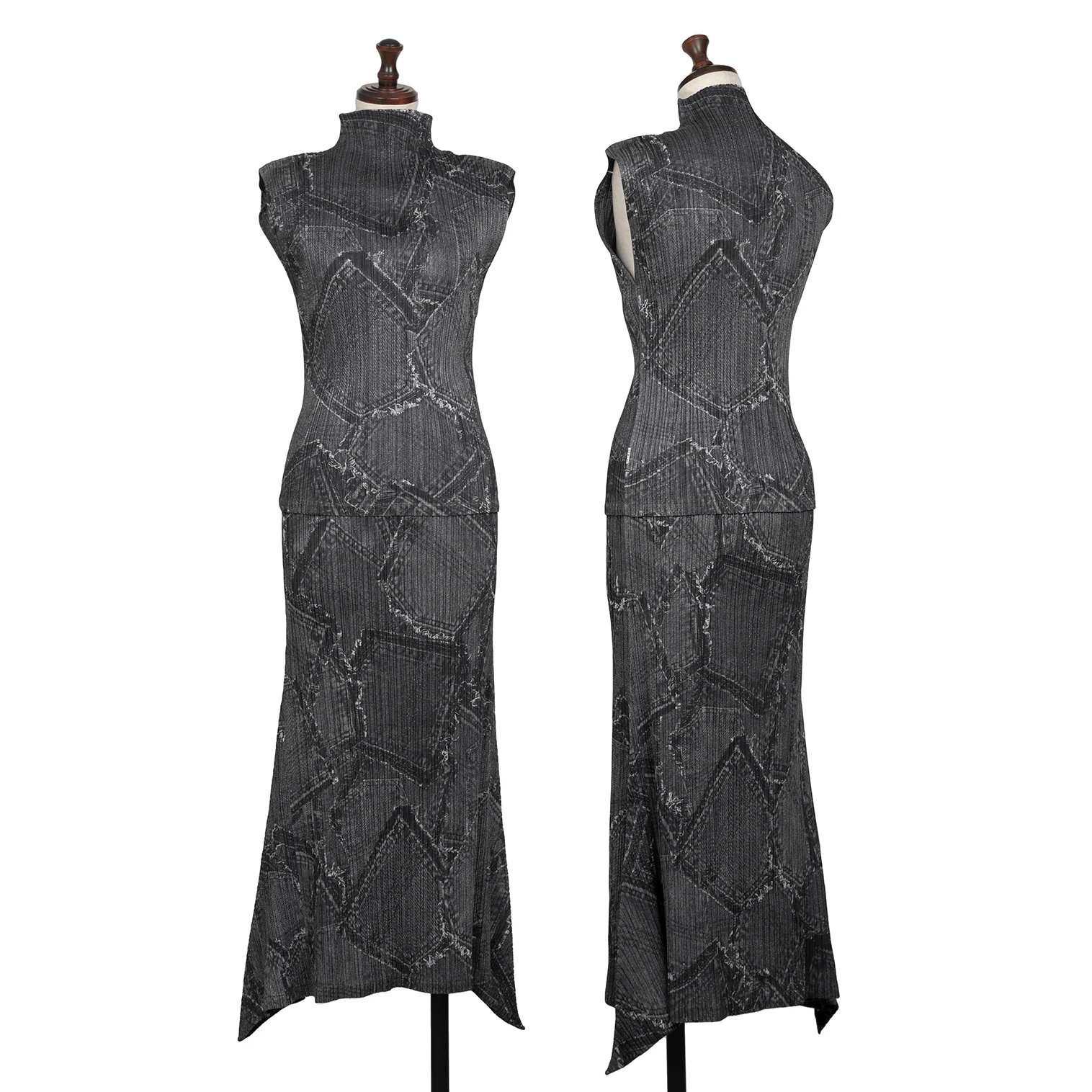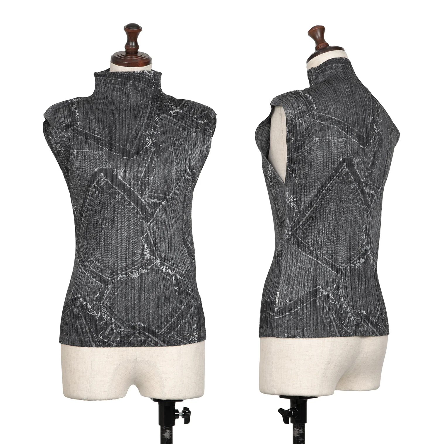 プリーツプリーズPLEATS PLEASE パッチデニム転写セットアップスーツ グレー3 2