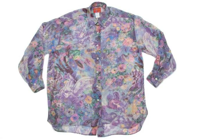 ケンゾージャングル KENZO JUNGLE ペガサス柄ポリエステルシャツ 薄パープルM