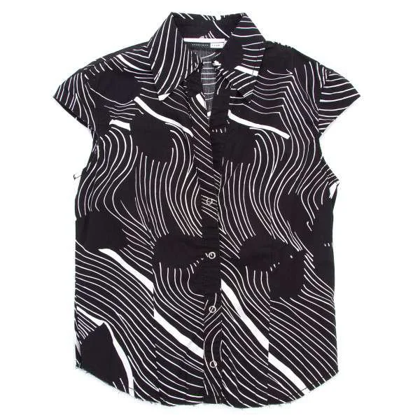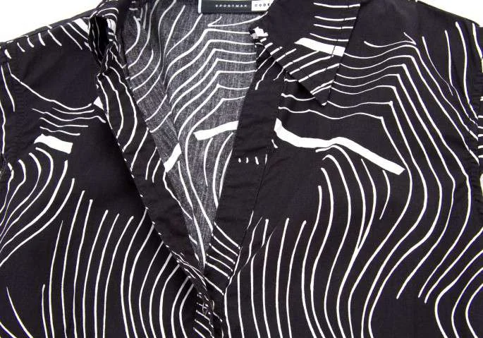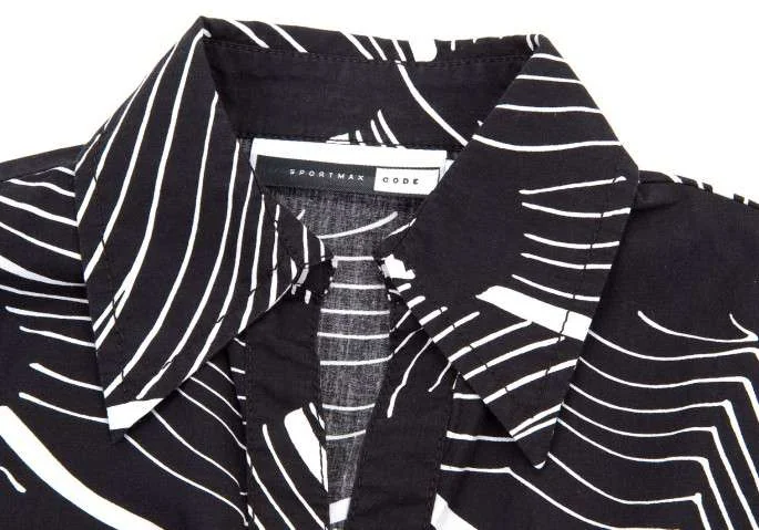 スポーツマックスSPORTMAX プリントデザイン切りっぱなしシャツ 黒42