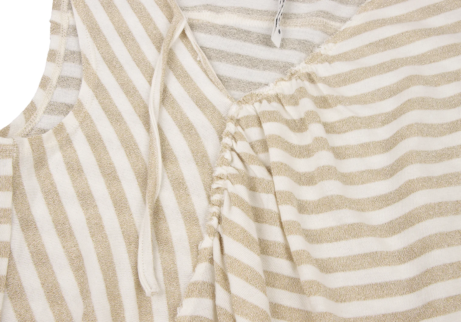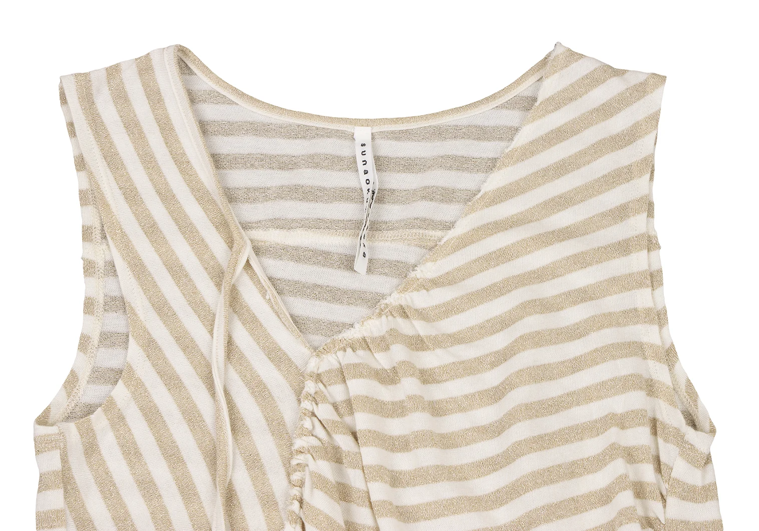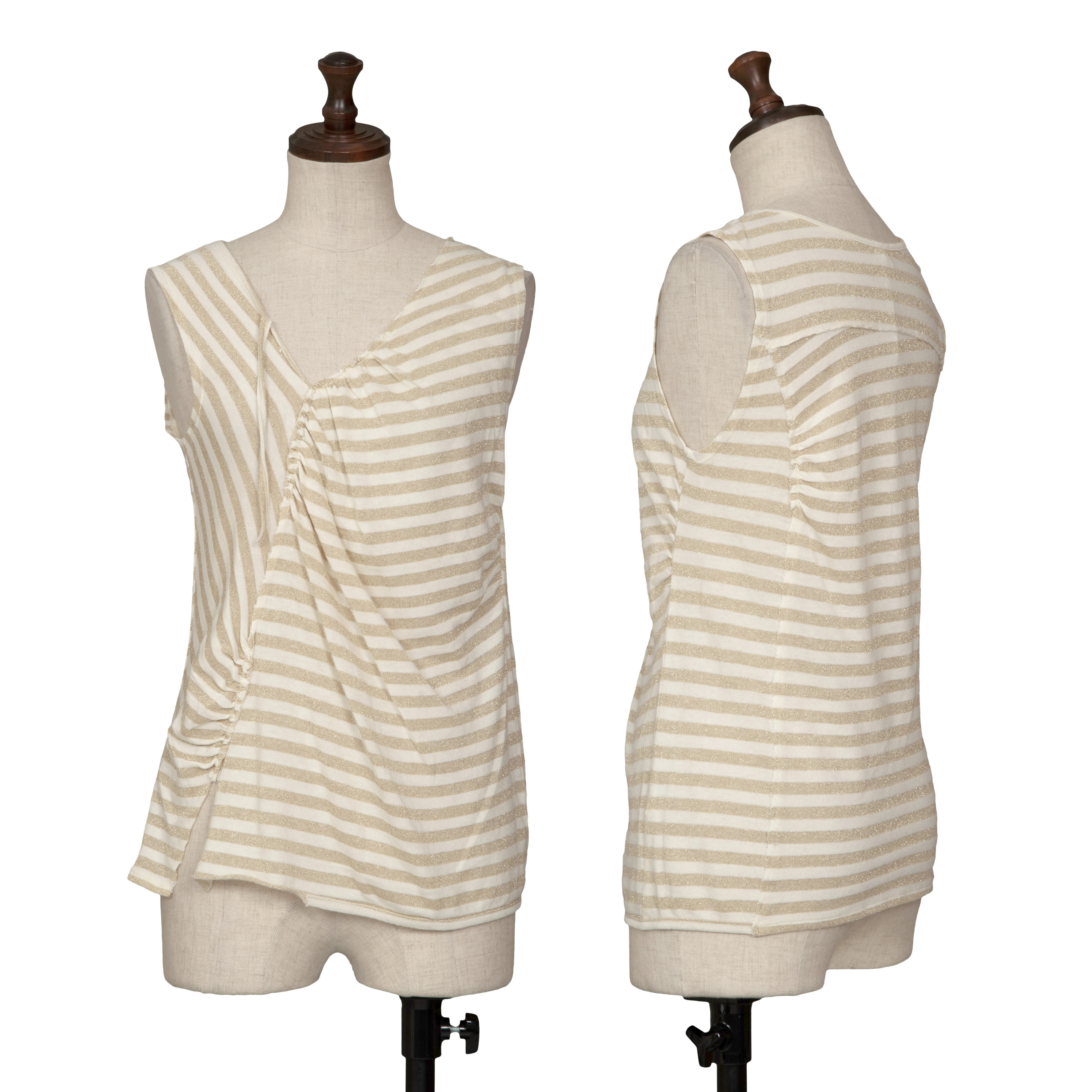 スナオクワハラsunao kuwahara 斜行ギャザーデザイングリッターボーダータンクトップ 白ゴールドM