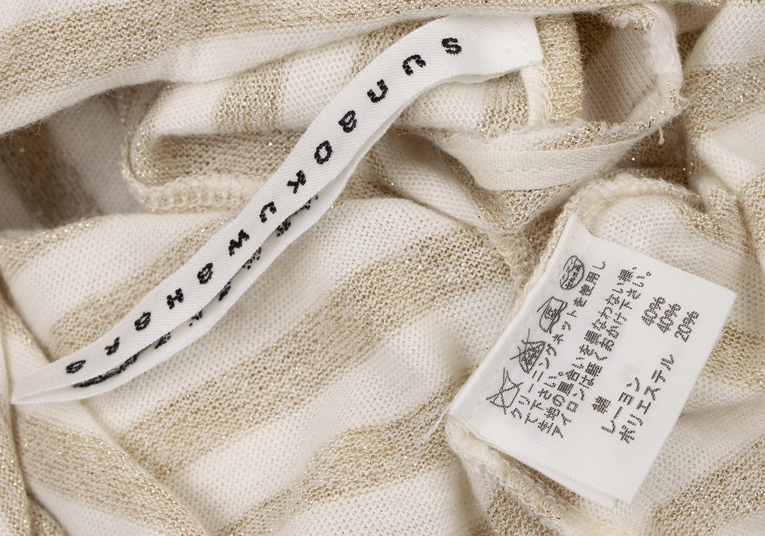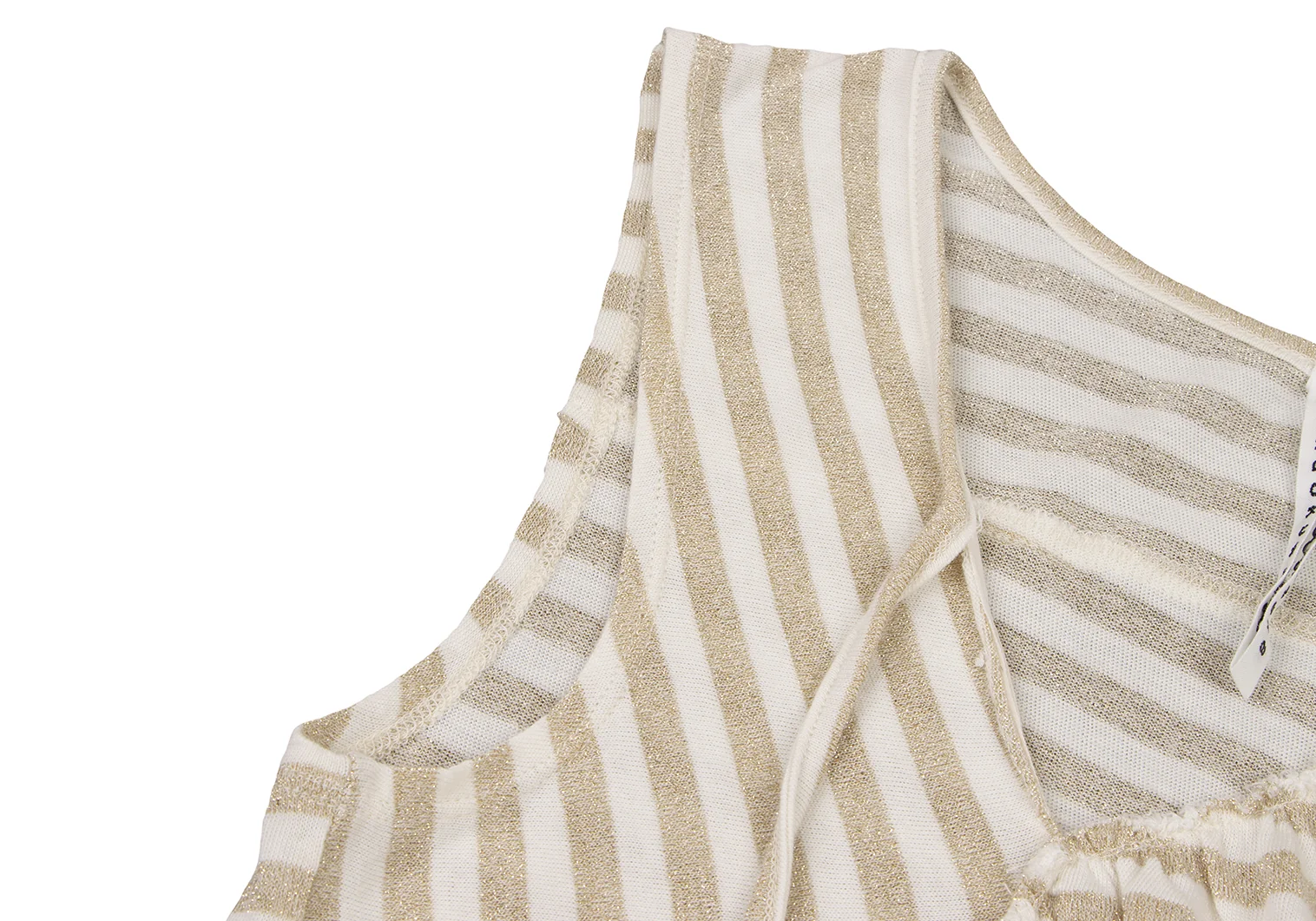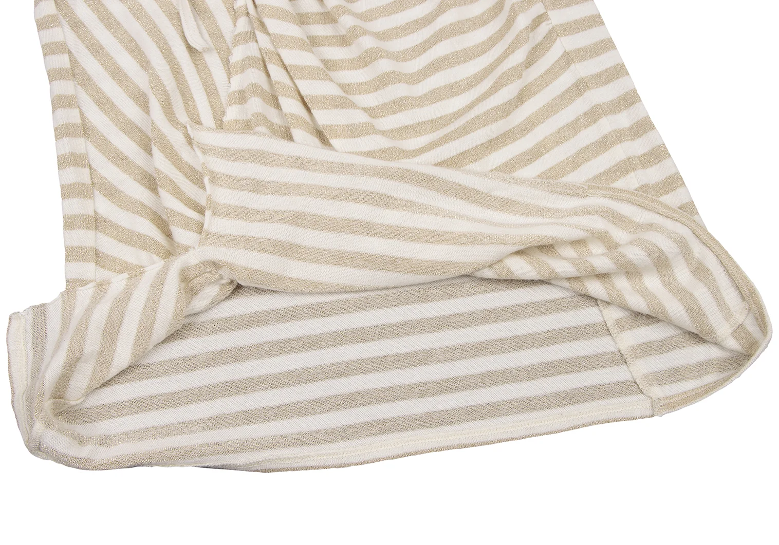 スナオクワハラsunao kuwahara 斜行ギャザーデザイングリッターボーダータンクトップ 白ゴールドM
