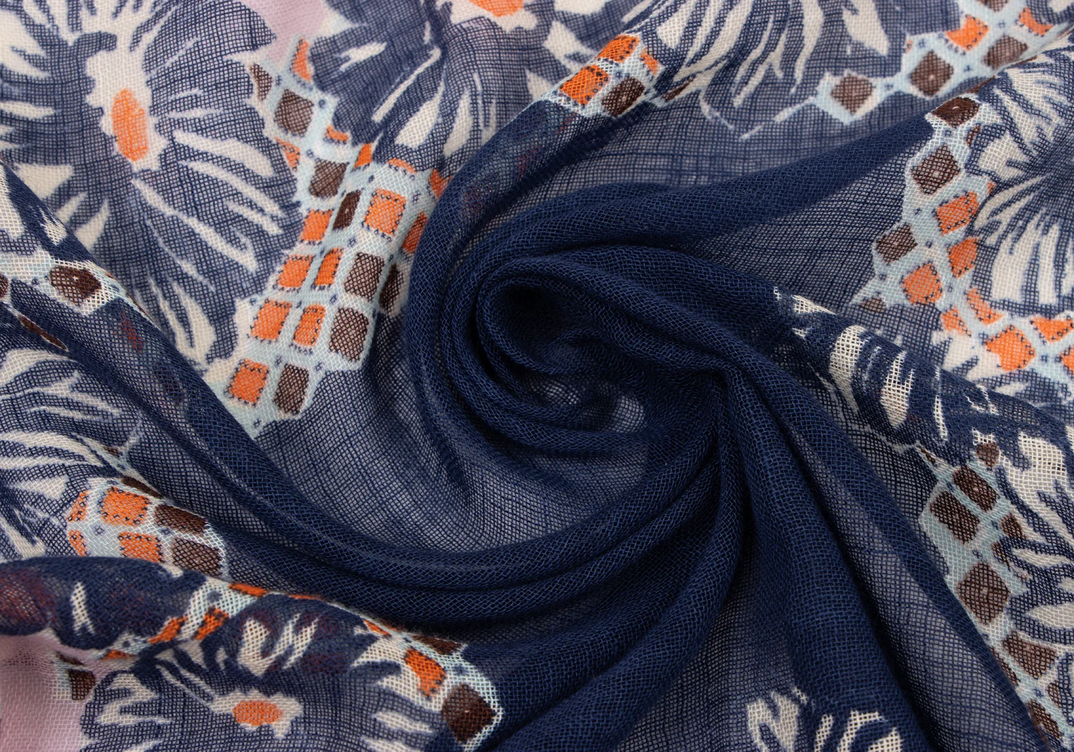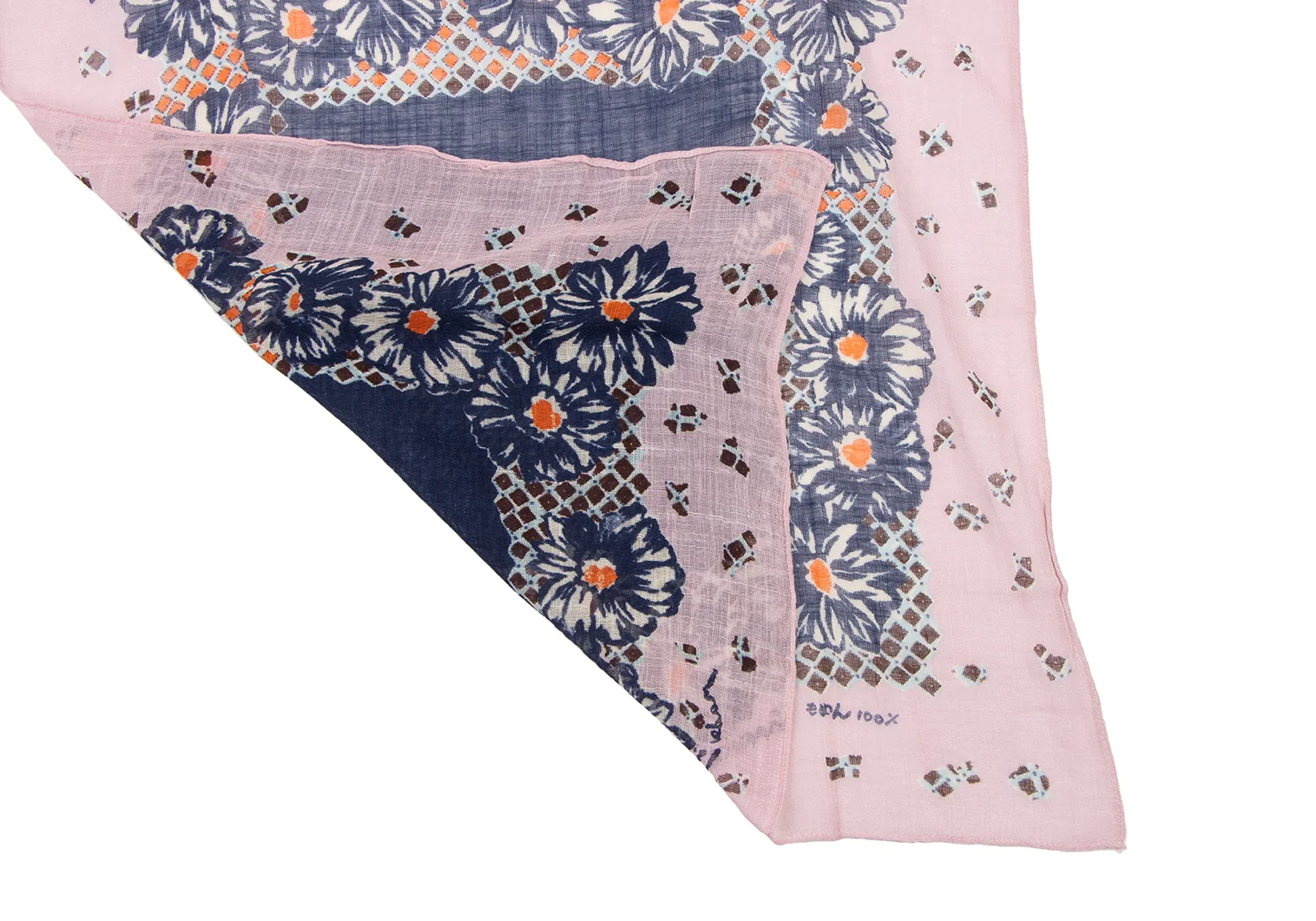 45rpm 45R 染め花柄ハンカチ ピンク紺