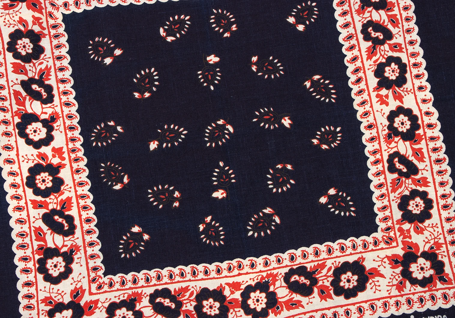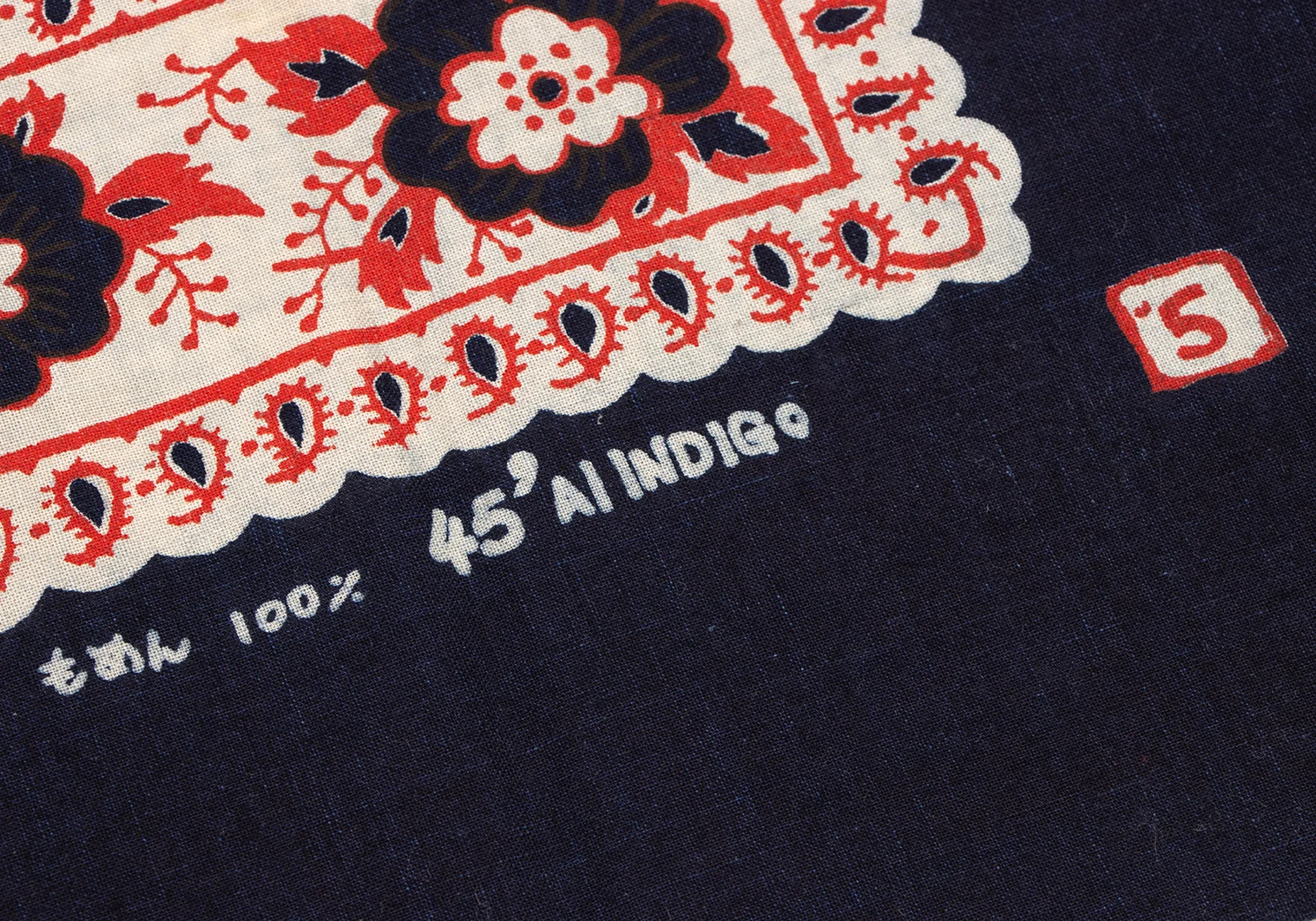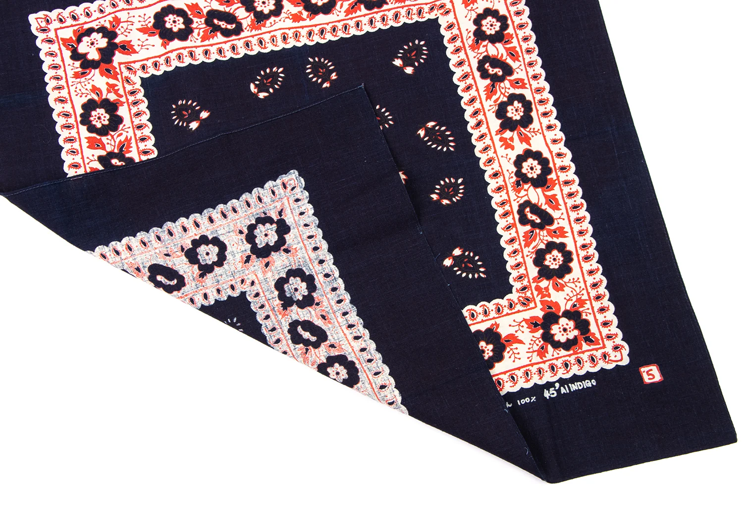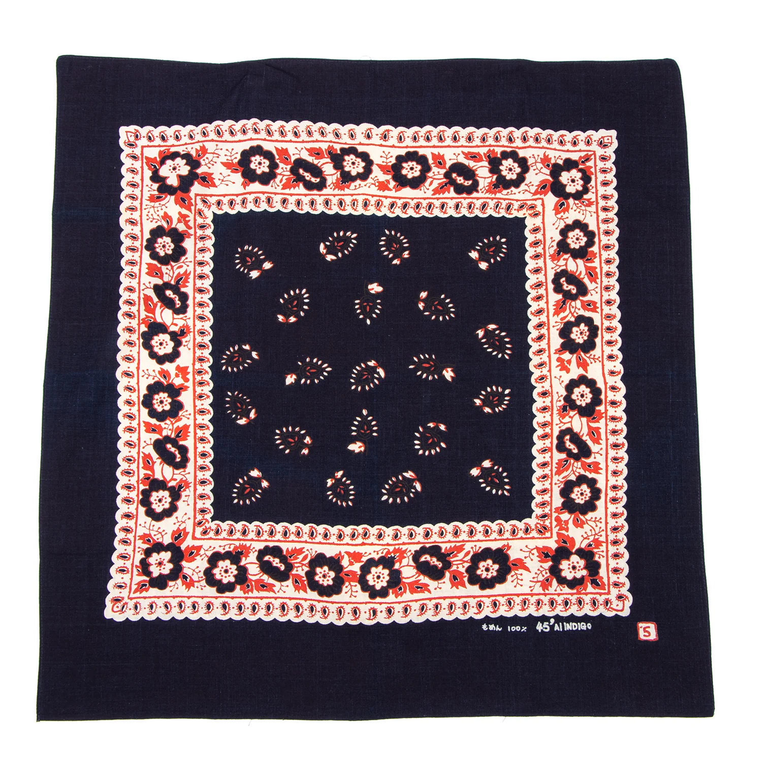 45rpm 45R 藍染花柄ハンカチ 紺赤