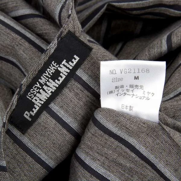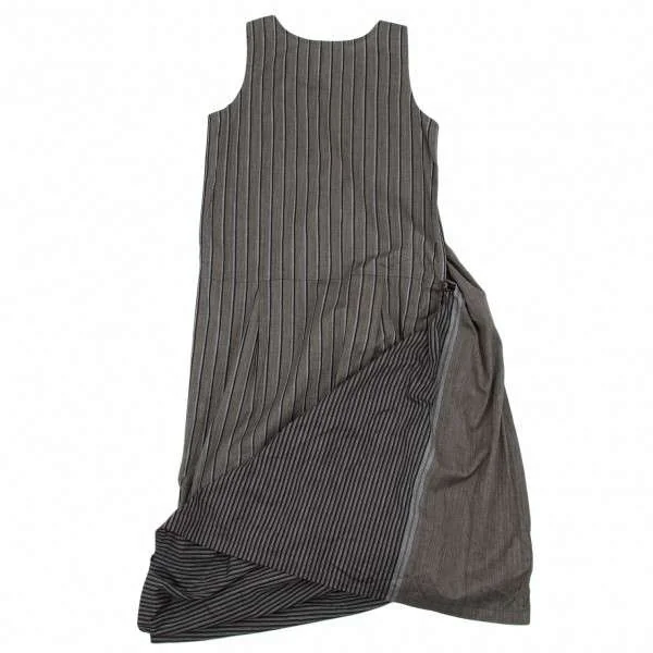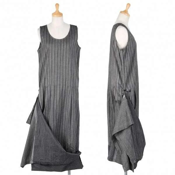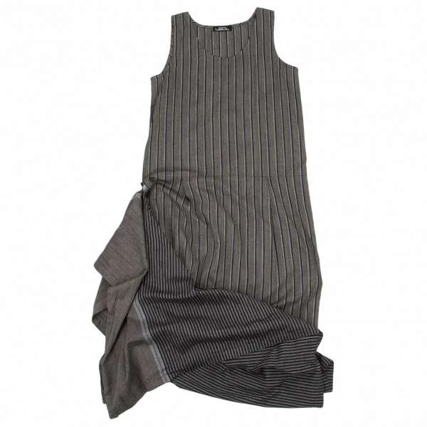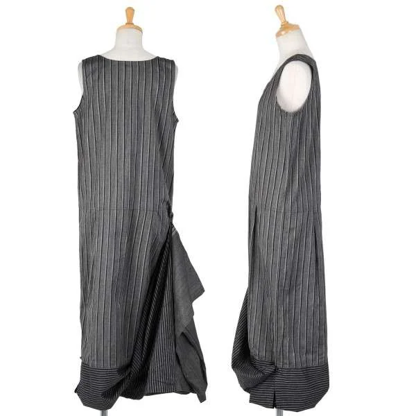 イッセイミヤケ ペルマネンテ ISSEY MIYAKEPERMANENTE ストライプデザインコットンワンピース グレーM
