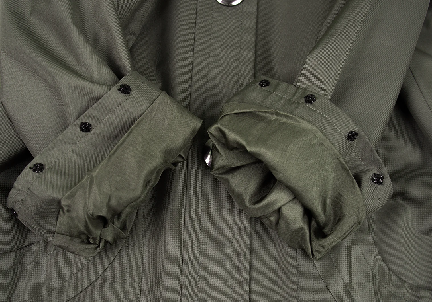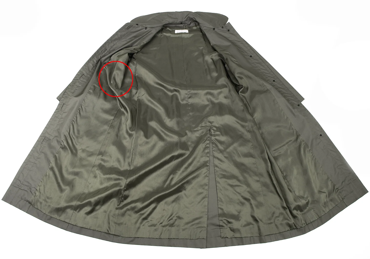 襟・袖先のパーツが欠品しております。裏地に引っ掛けがあります(写真参照)。その他目立ったシミ、汚れ、ほつれ等なくいい状態です。クリーニング済み