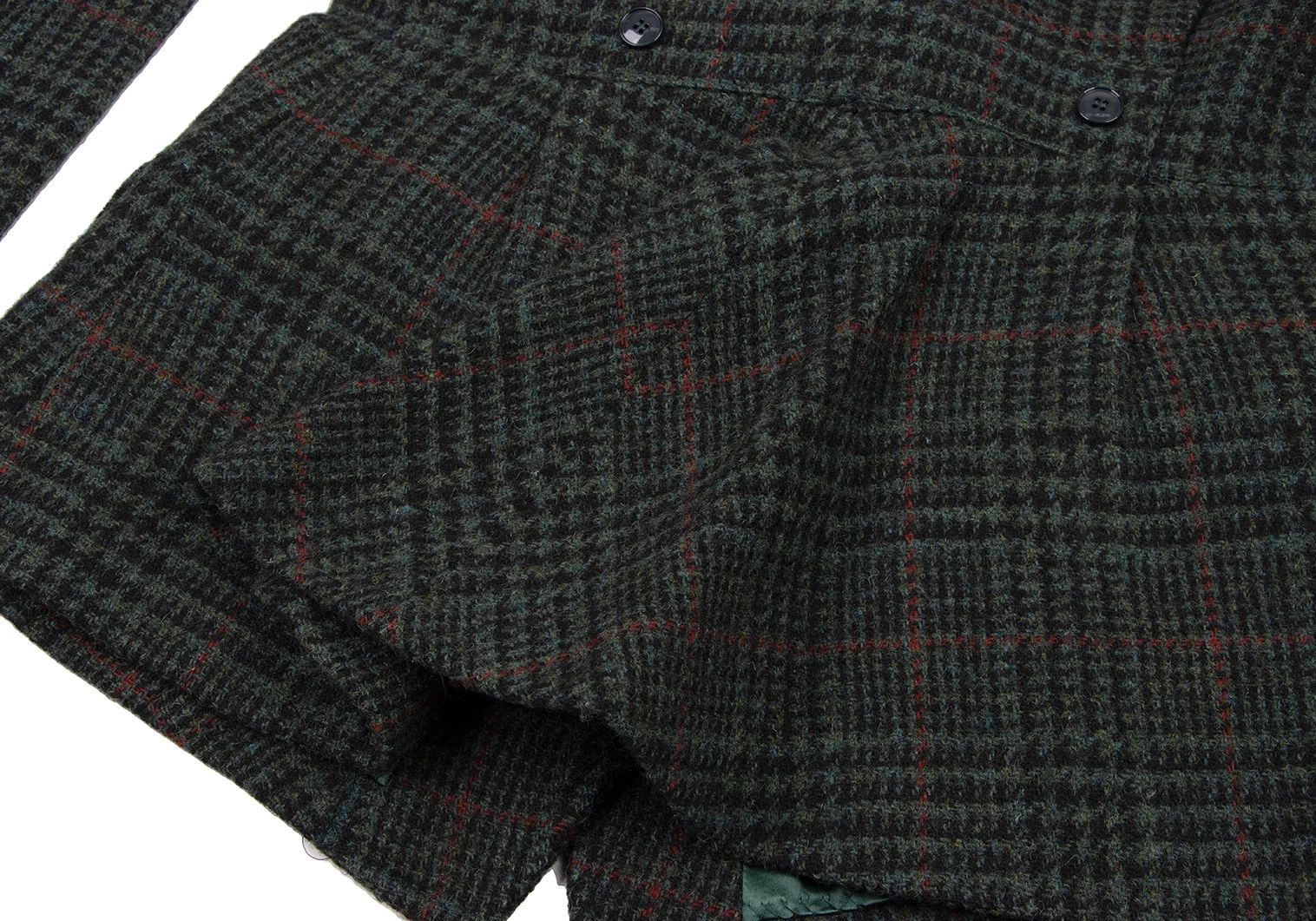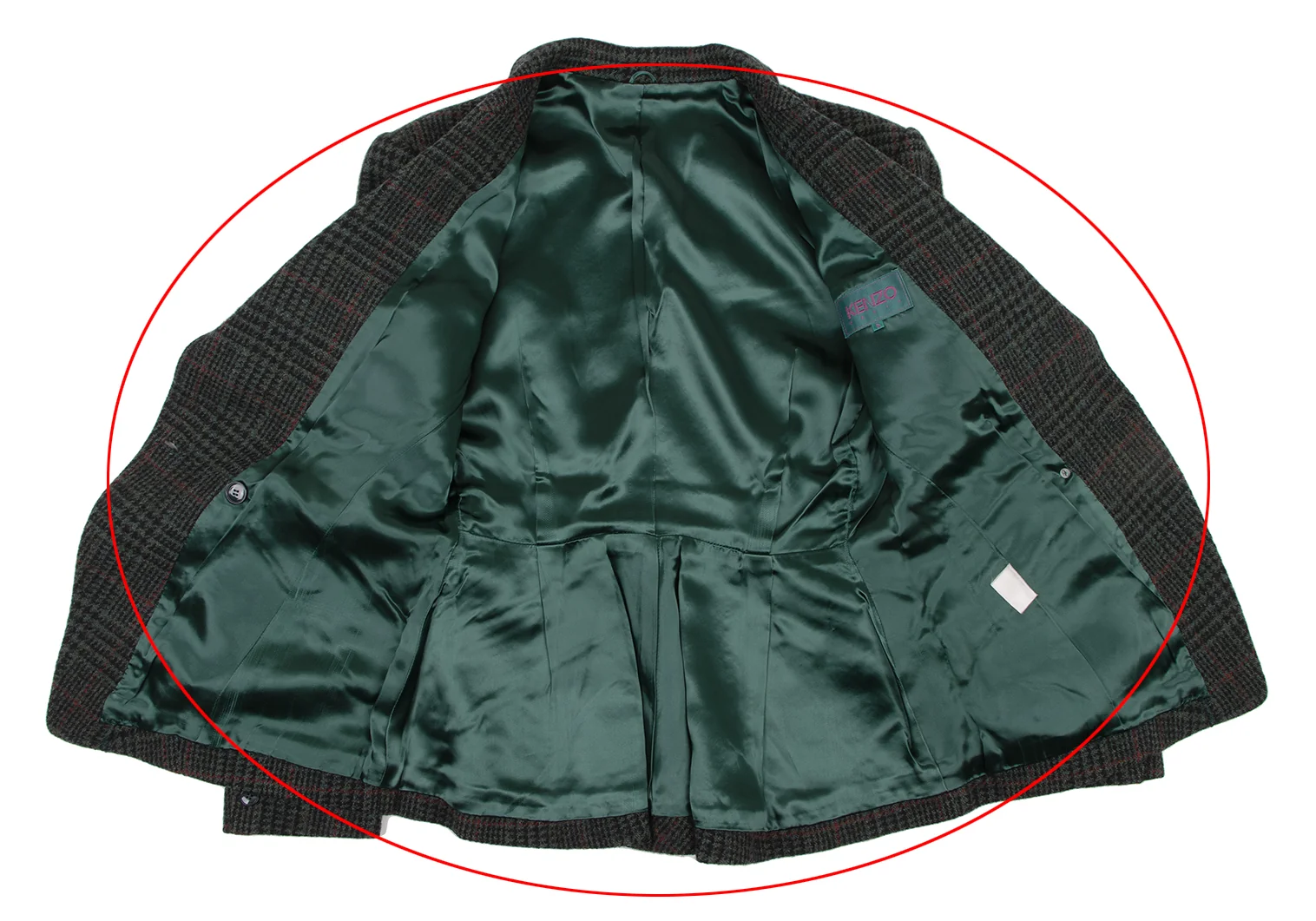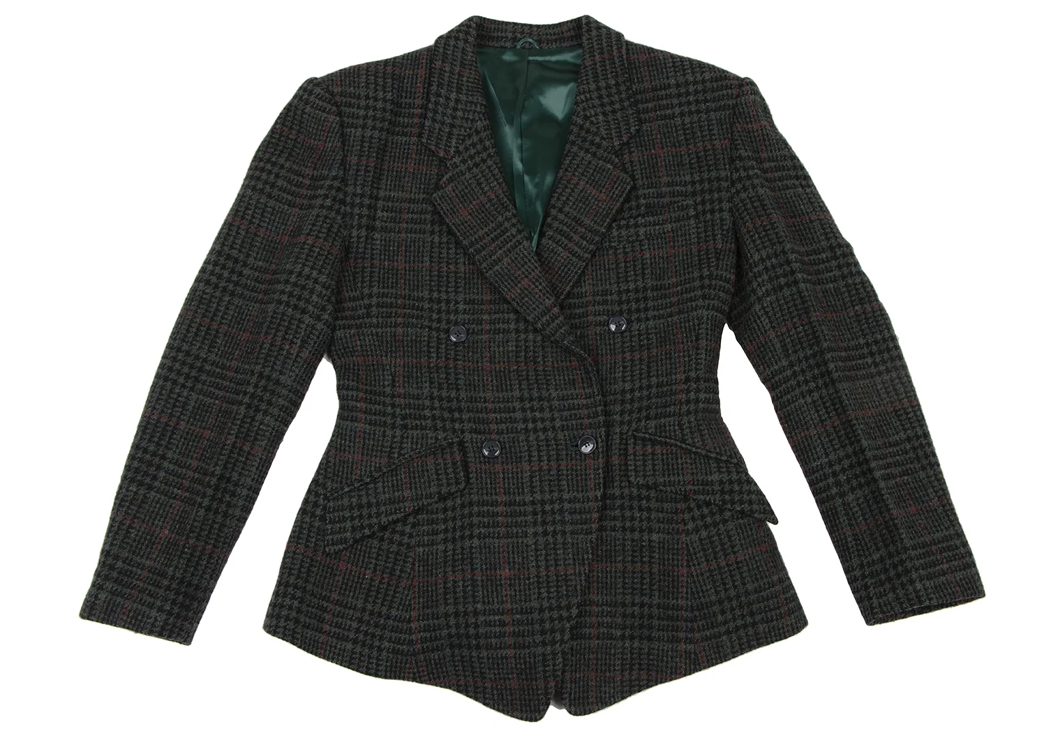 ケンゾーKENZO ウール千鳥格子織りジャケット 緑黒赤S