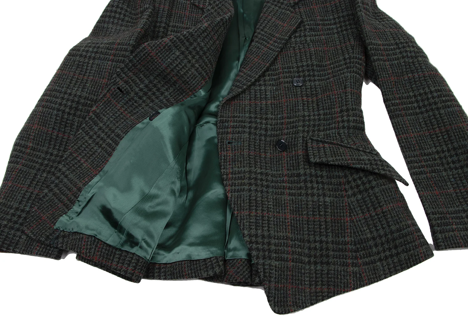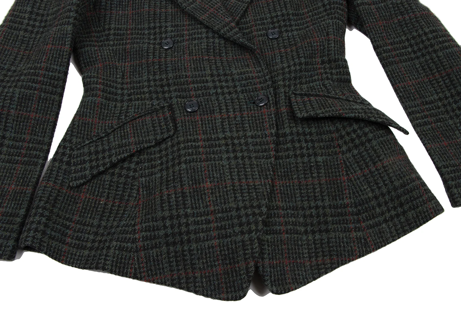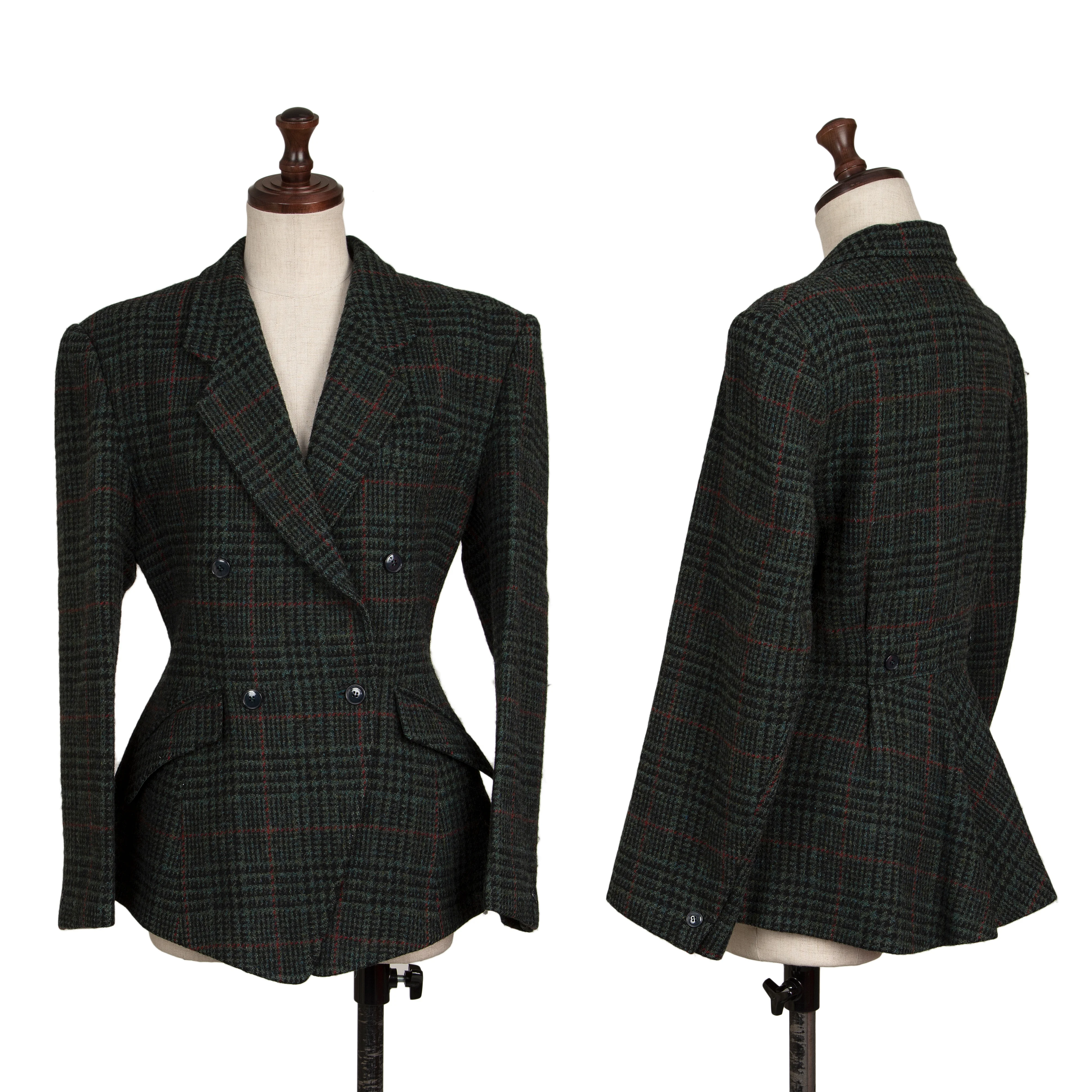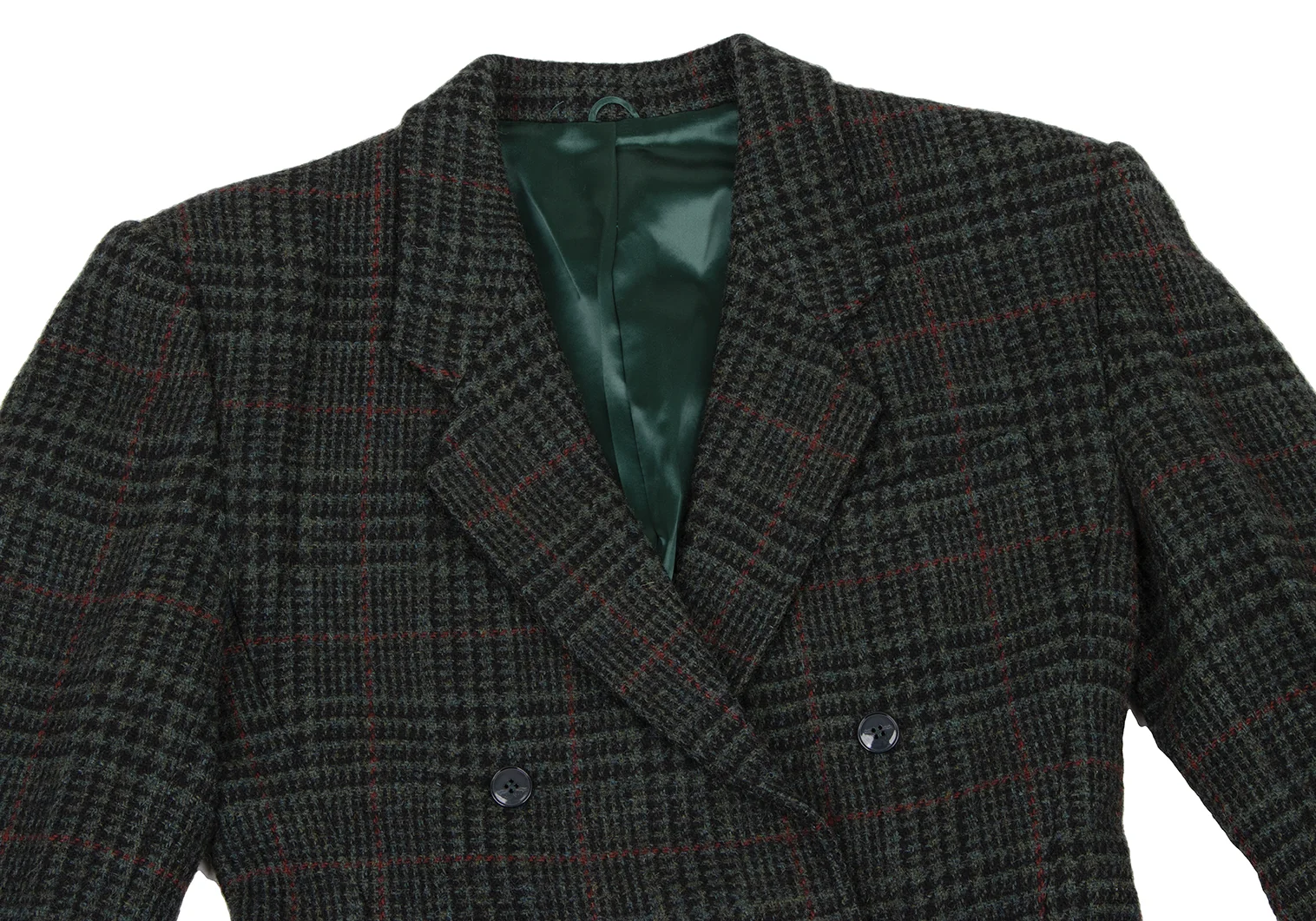 ケンゾーKENZO ウール千鳥格子織りジャケット 緑黒赤S