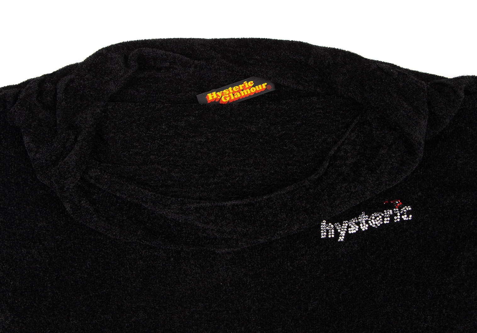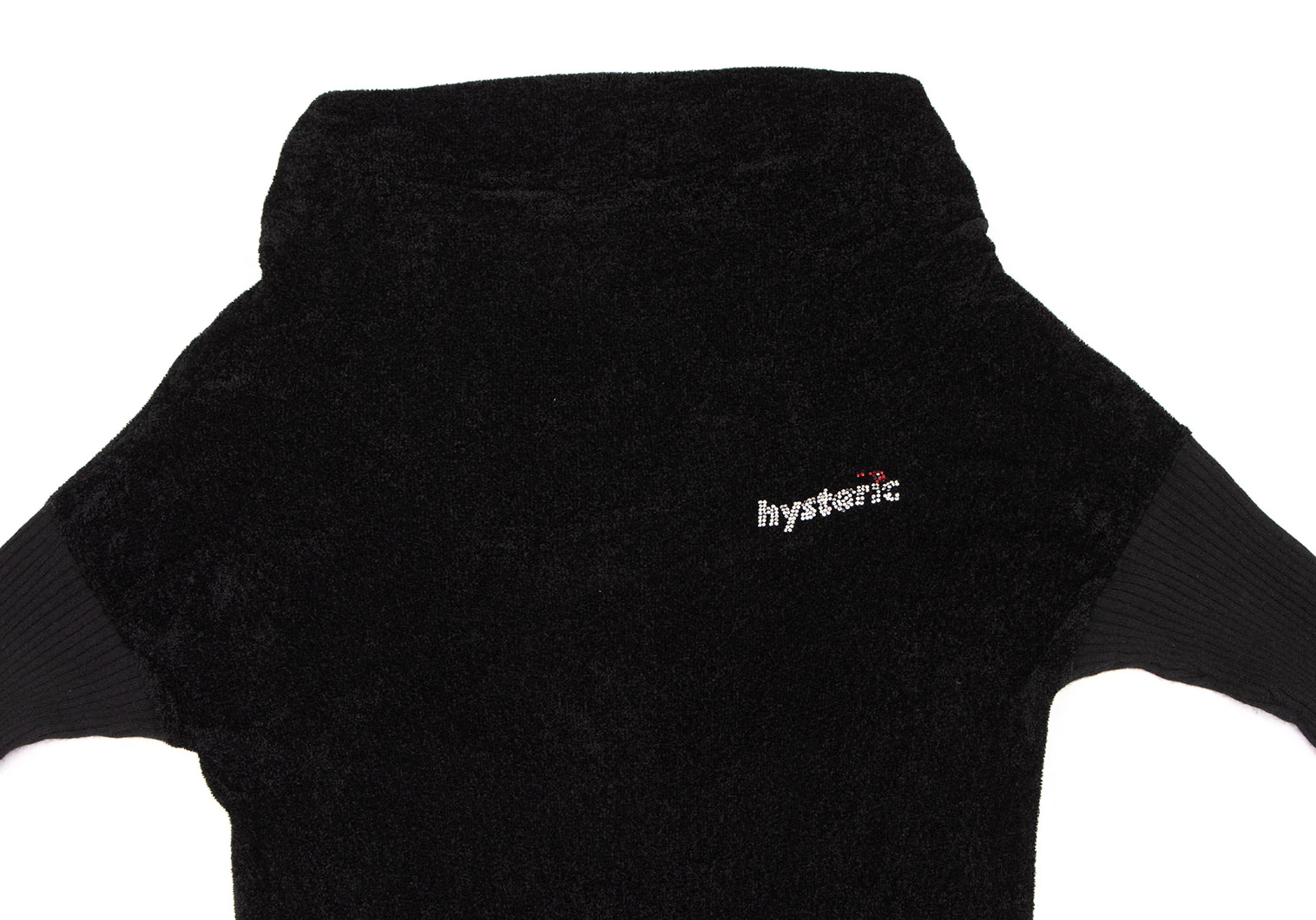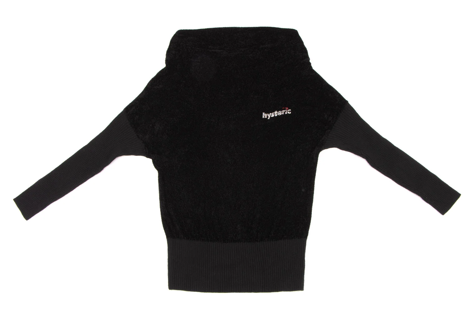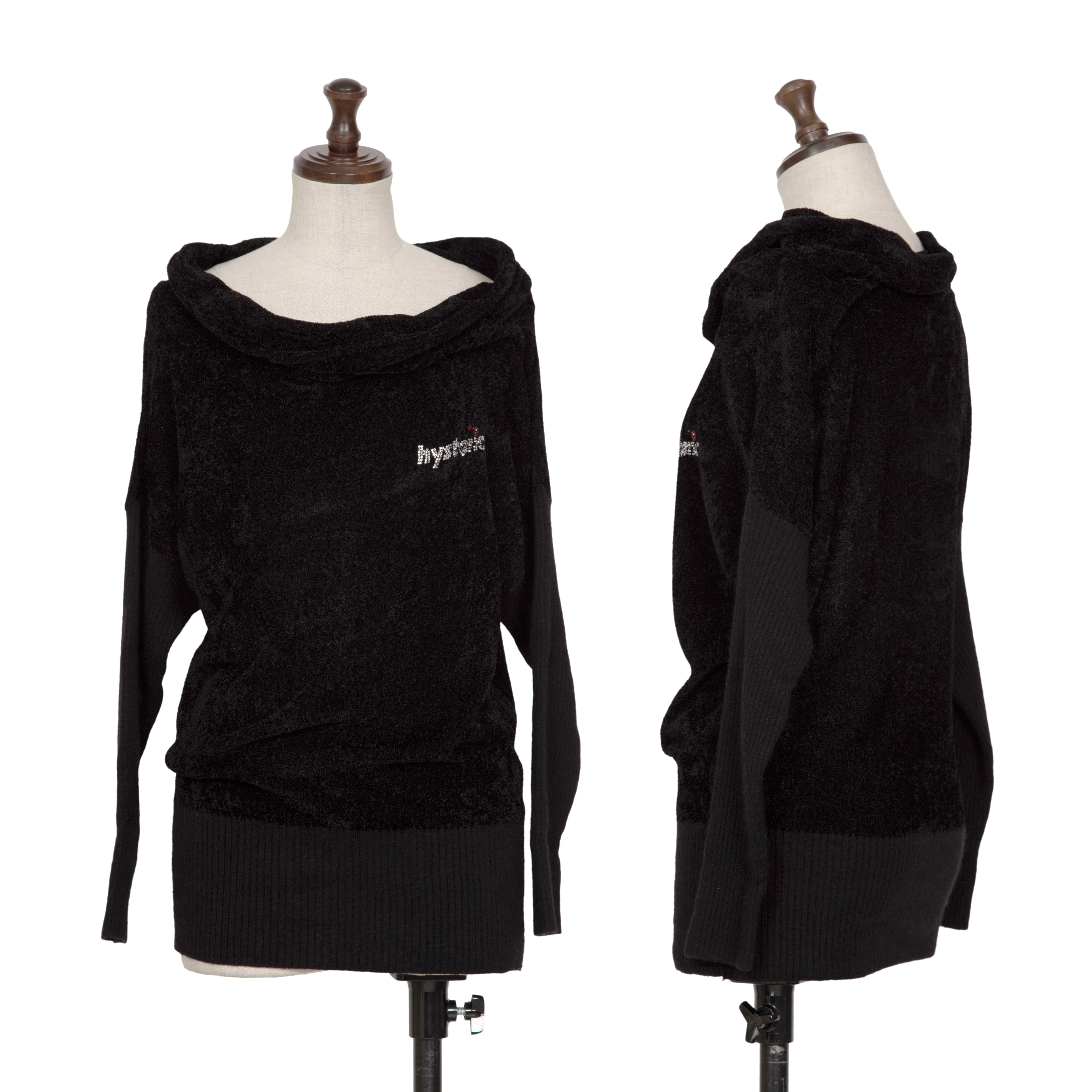 ヒステリックグラマーHYSTERIC GLAMOUR リブ切替ラインストーンパイルニット 黒F