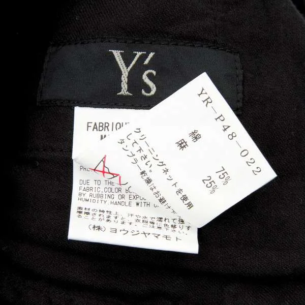 ワイズY’s ヒップ切替クロップドコットンリネンパンツ 黒1