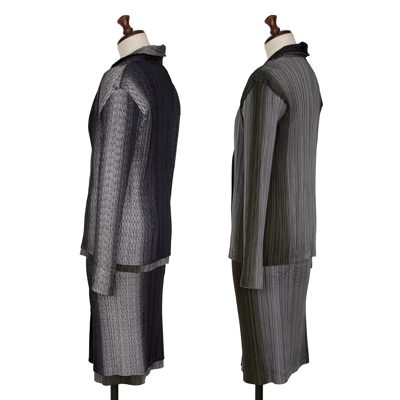 イッセイミヤケ フェットISSEY MIYAKE FETE A.POC INSIDE グラデーションプリーツリバーシブルジャケット 紺黒グレー2