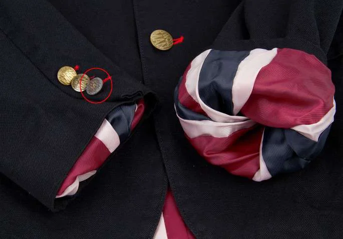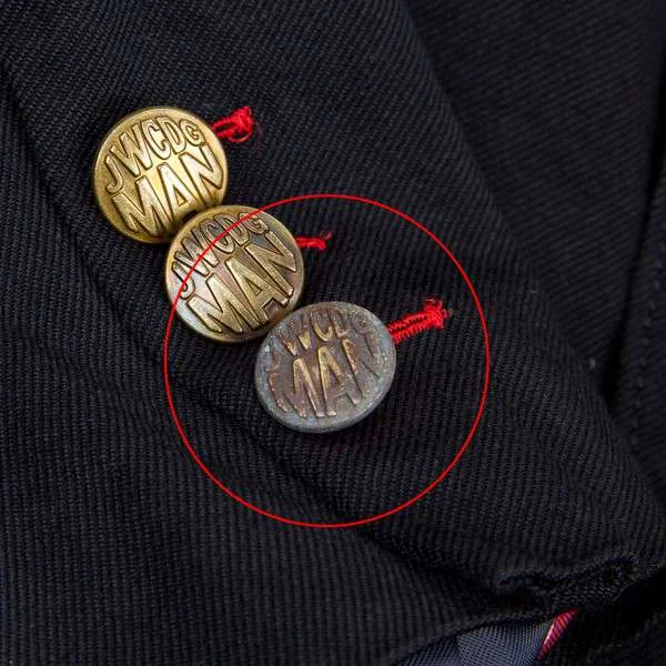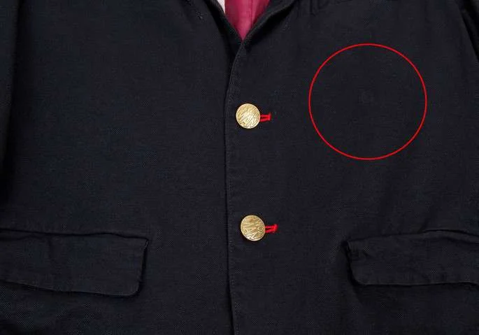 前身頃に目立たない程度の薄汚れ、右袖口のボタン1つにサビがあります(写真参照)それ以外は綺麗な状態です。クリーニング済み