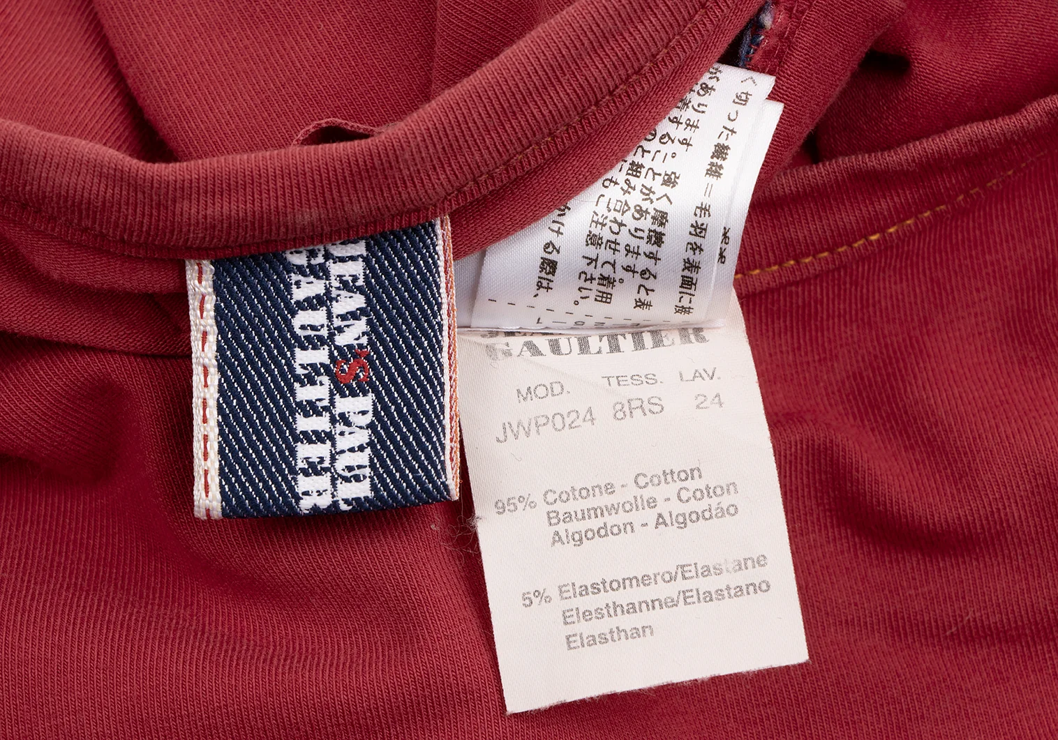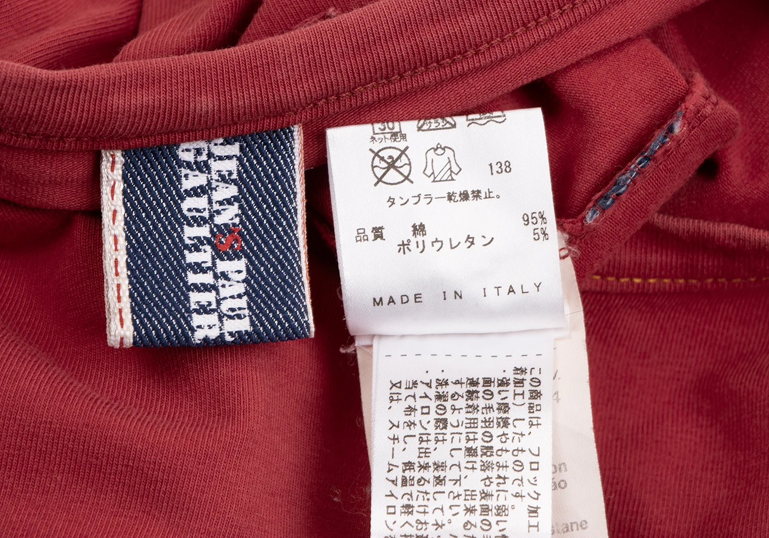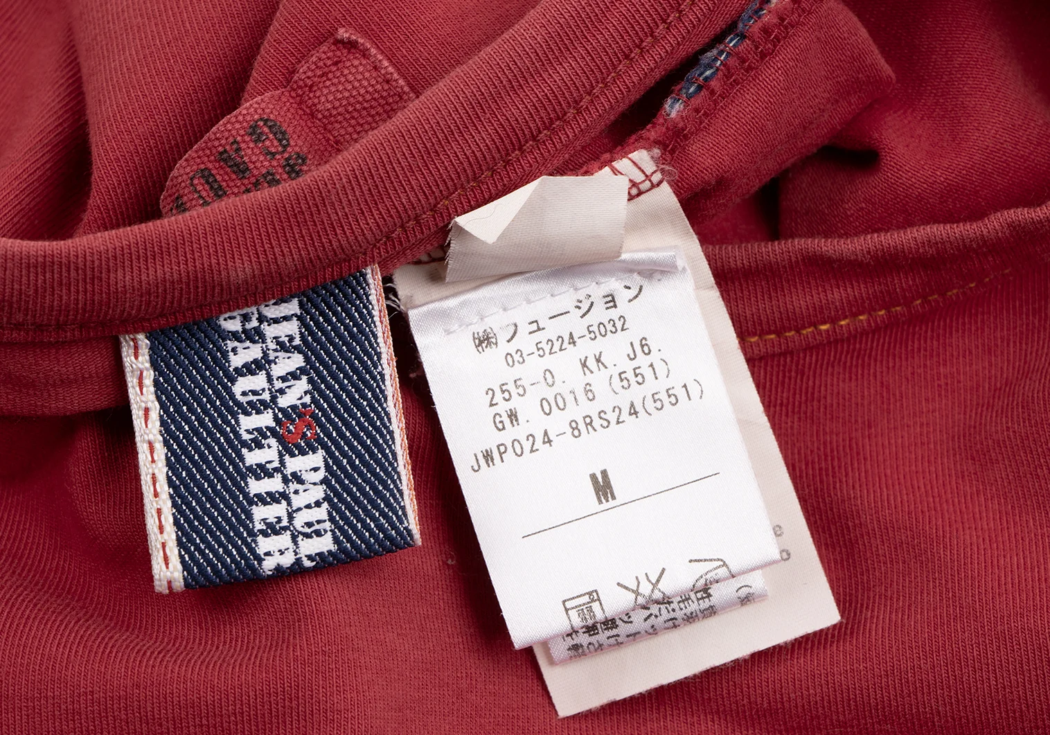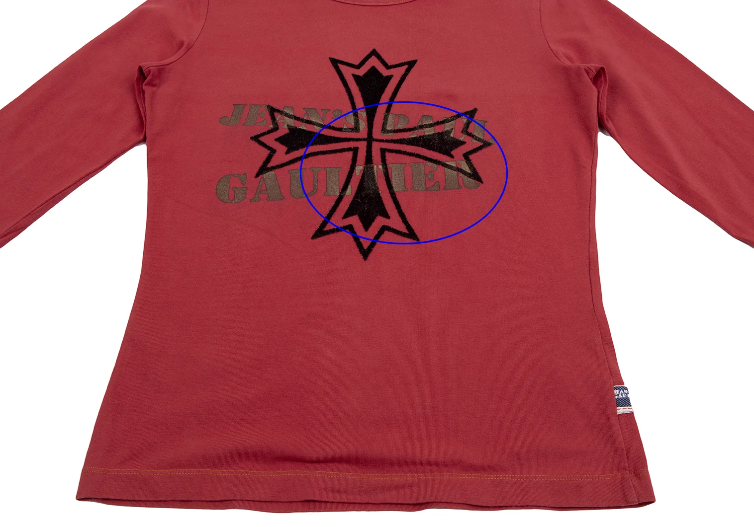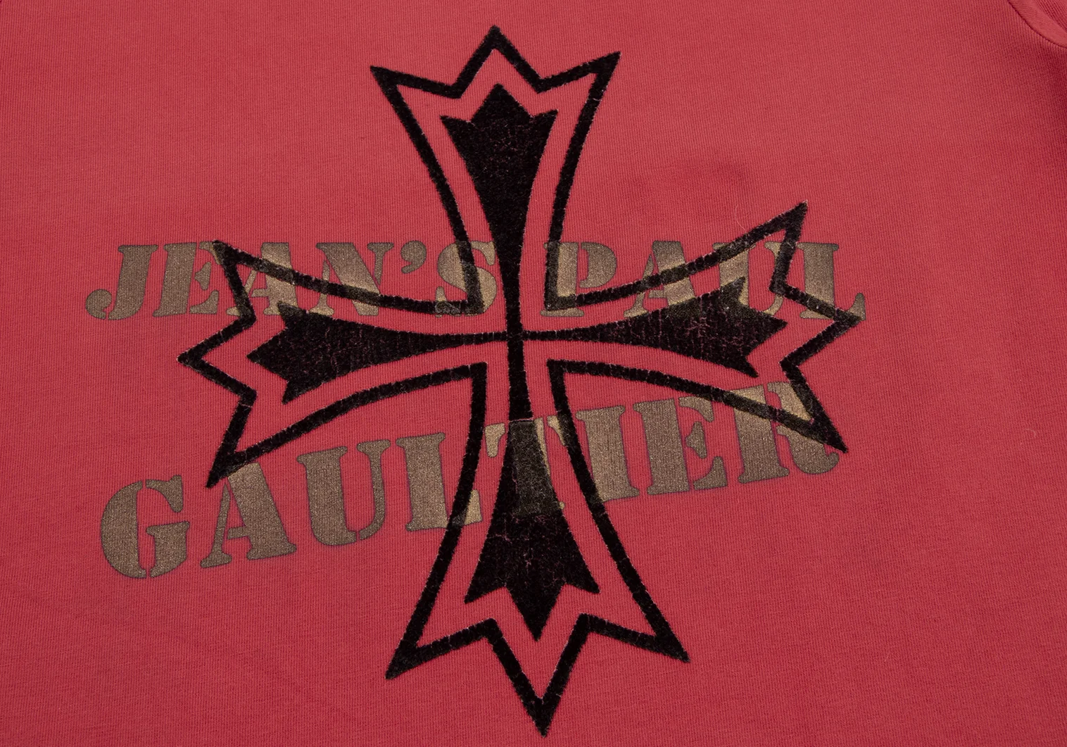 ジーンズポールゴルチエJean's Paul GAULTIER フロッキープリントメタリックロゴカットソー 赤M
