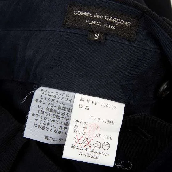 コムデギャルソン オム プリュスCOMME des GARCONS HOMME PLUS 2タック裾デザインポリパンツ 紺S