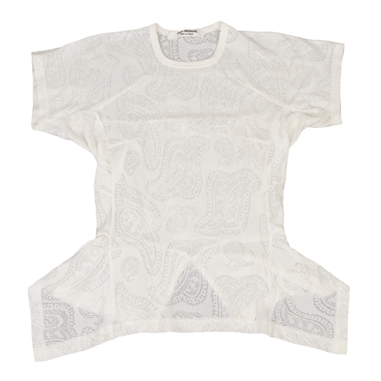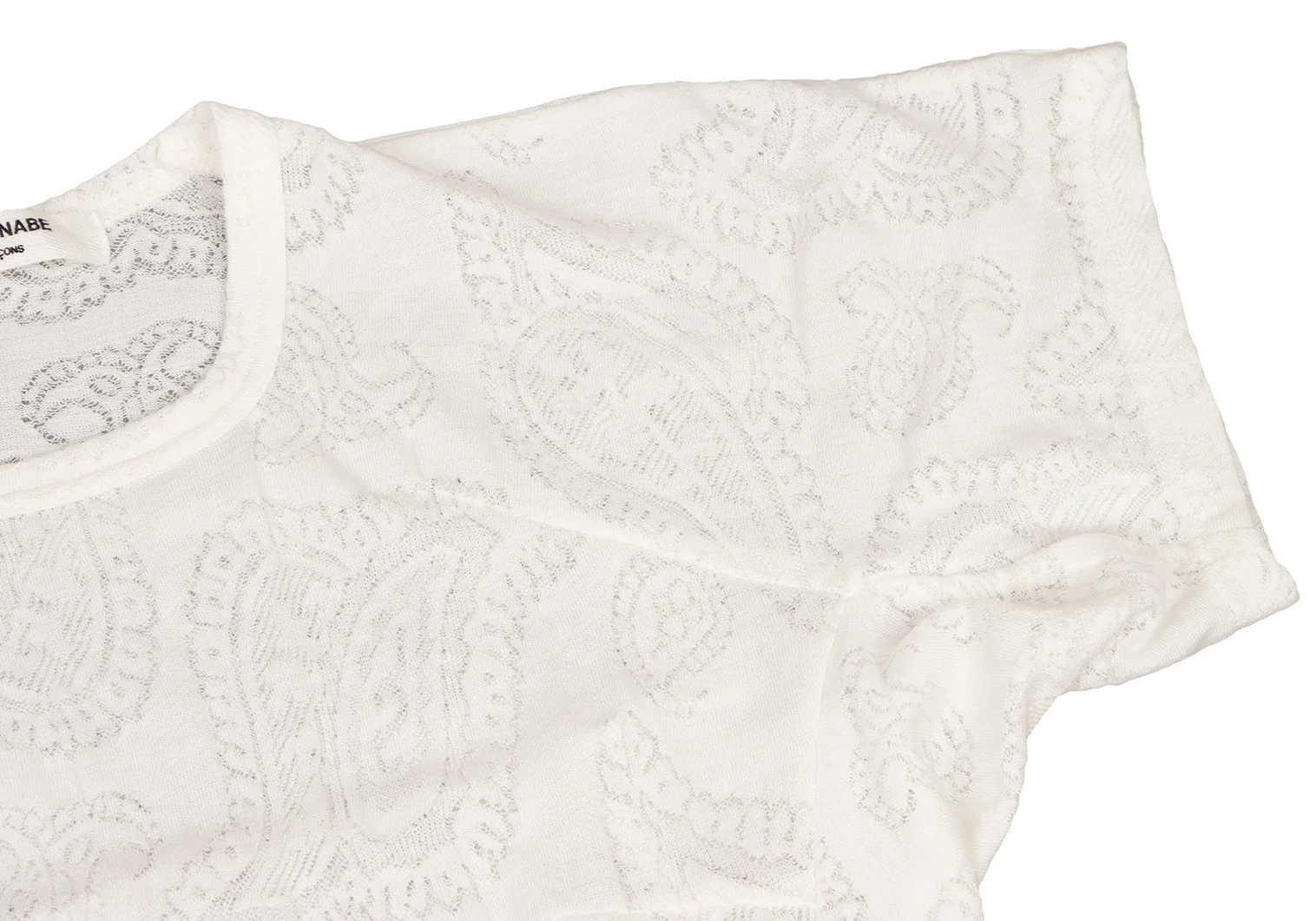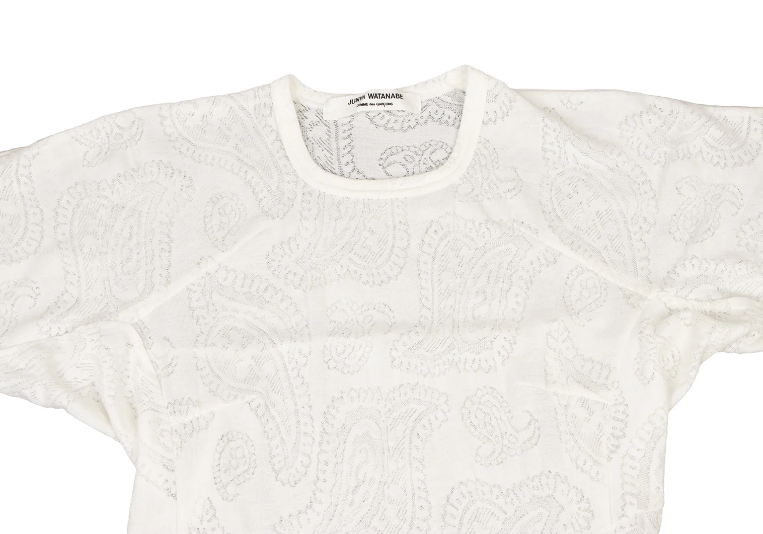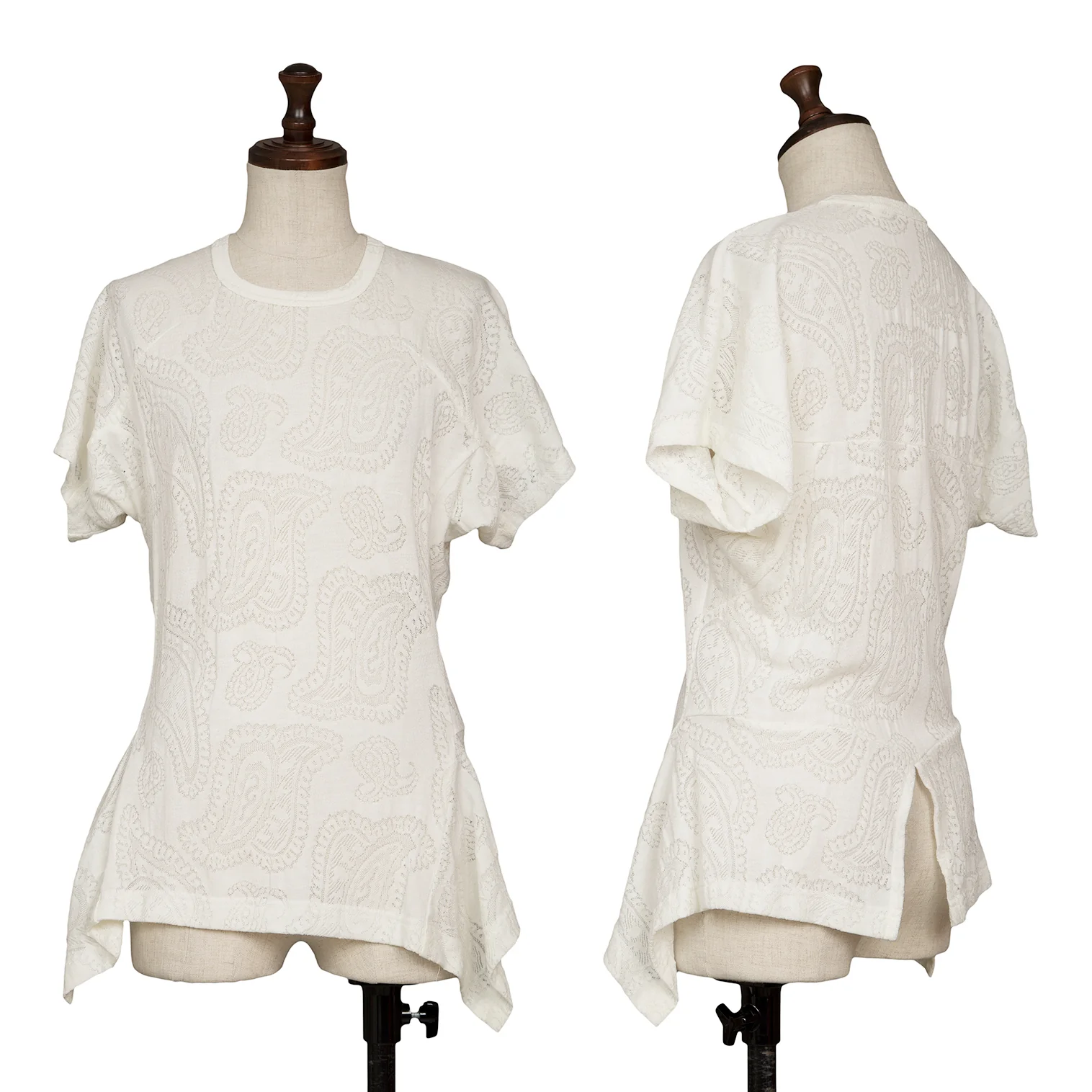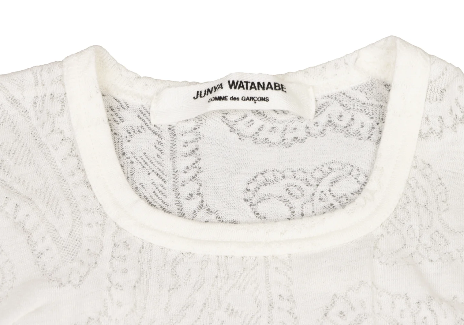 ジュンヤワタナベ コムデギャルソンJUNYA WATANABE COMME des GARCONS ペイズリーメッシュ裾フレア半袖トップス 白S位